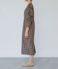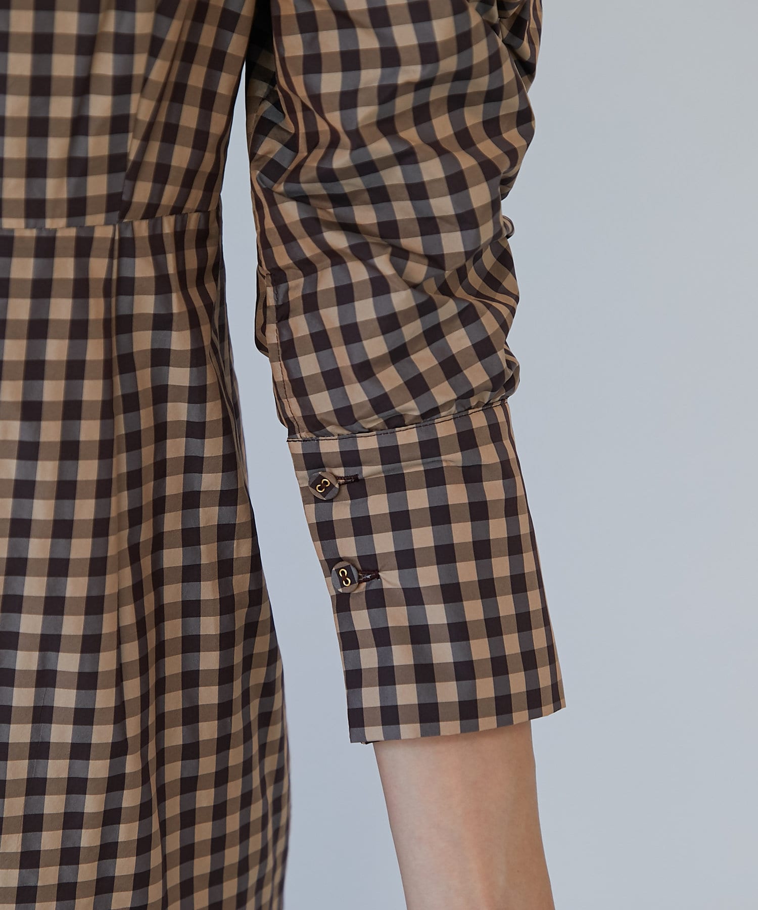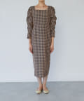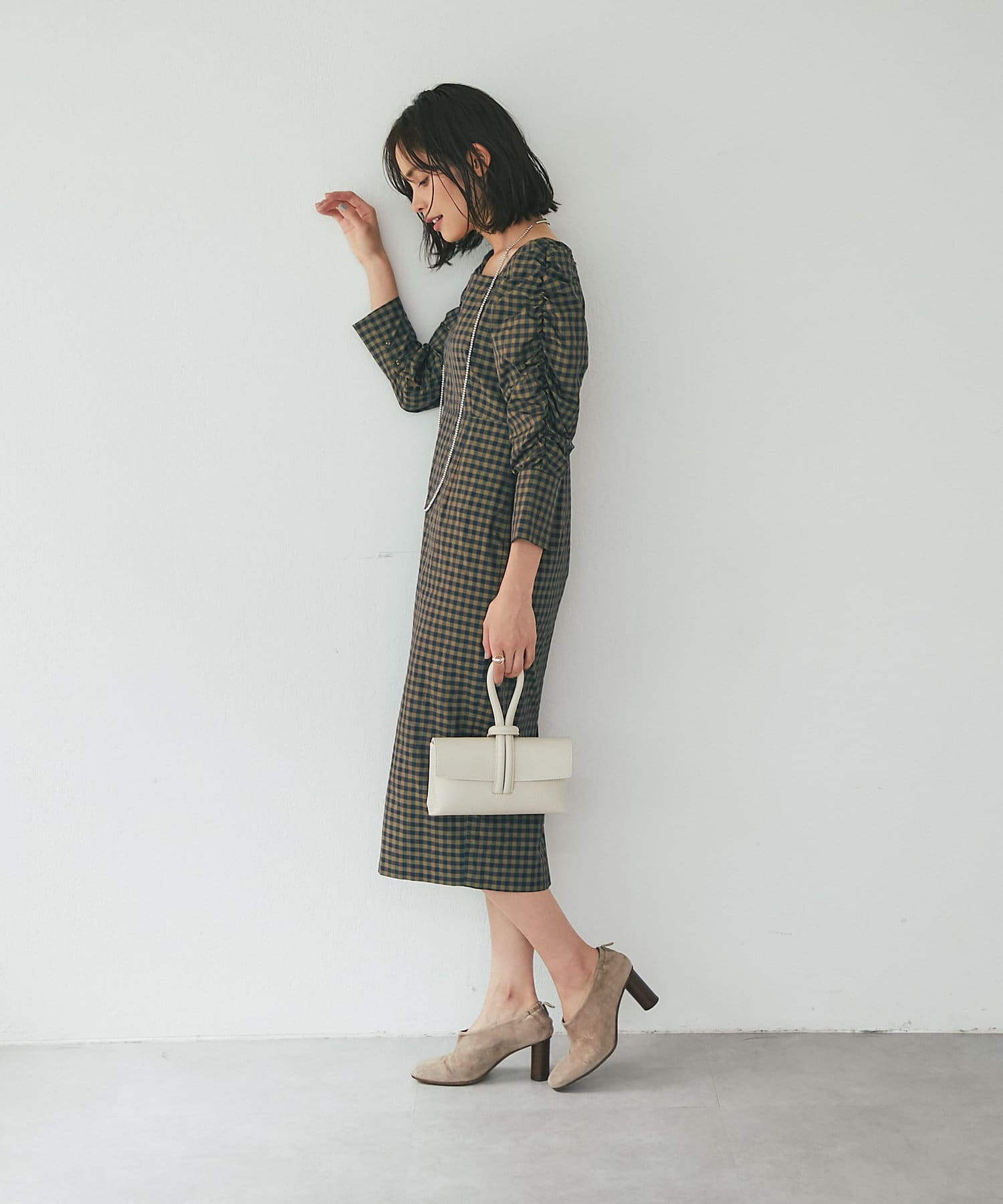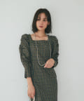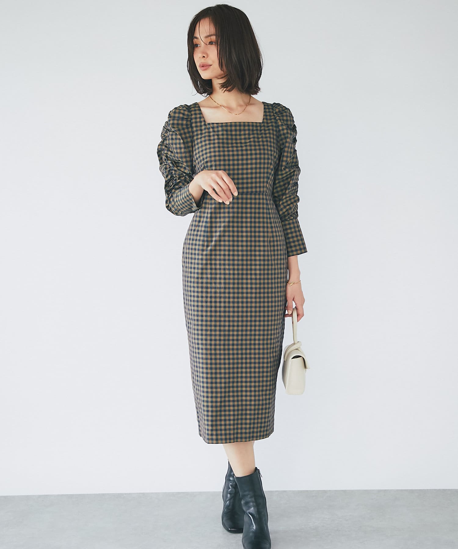 【大人の色使いでシックに決まる】ギンガムチェックパワショルワンピース