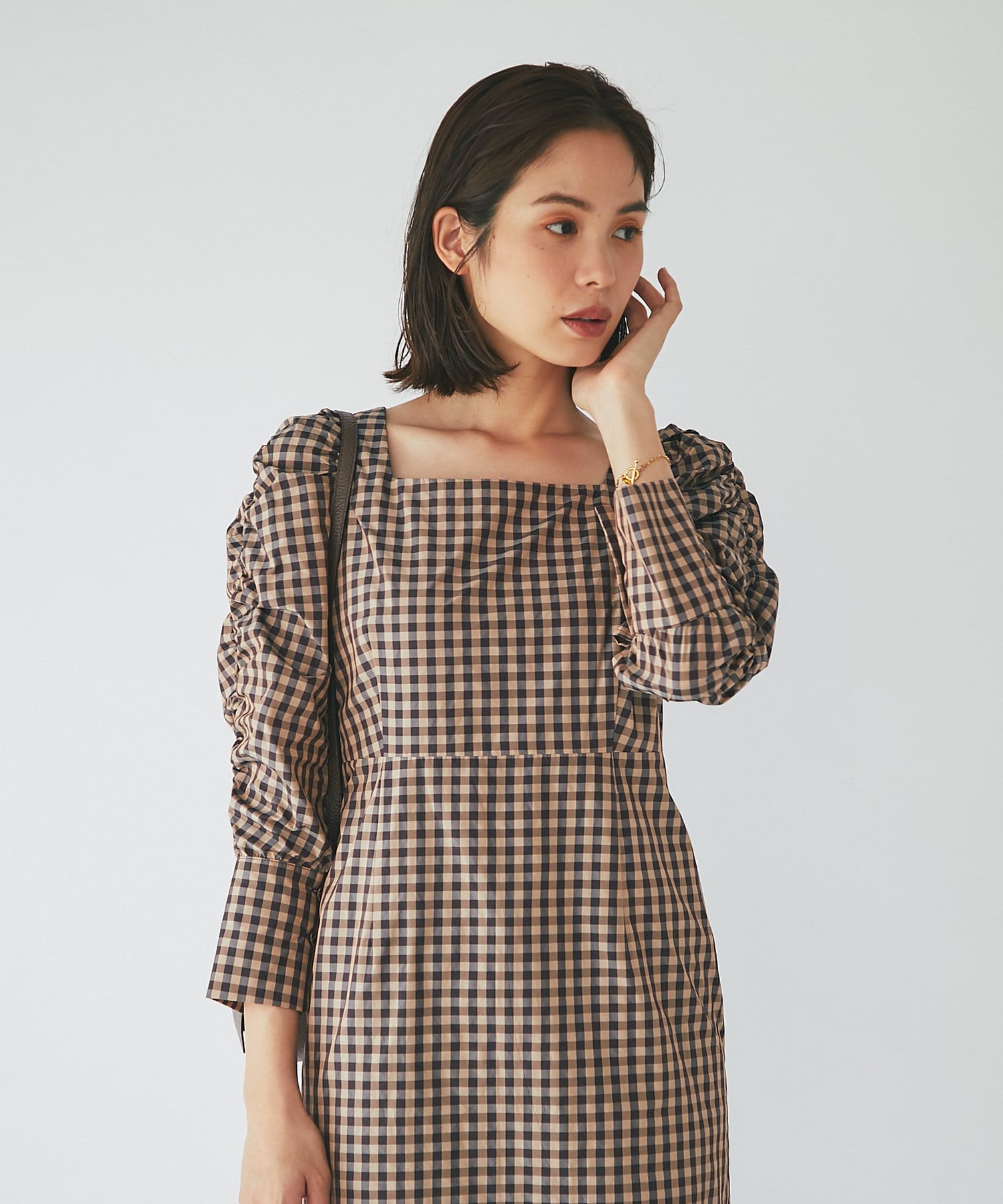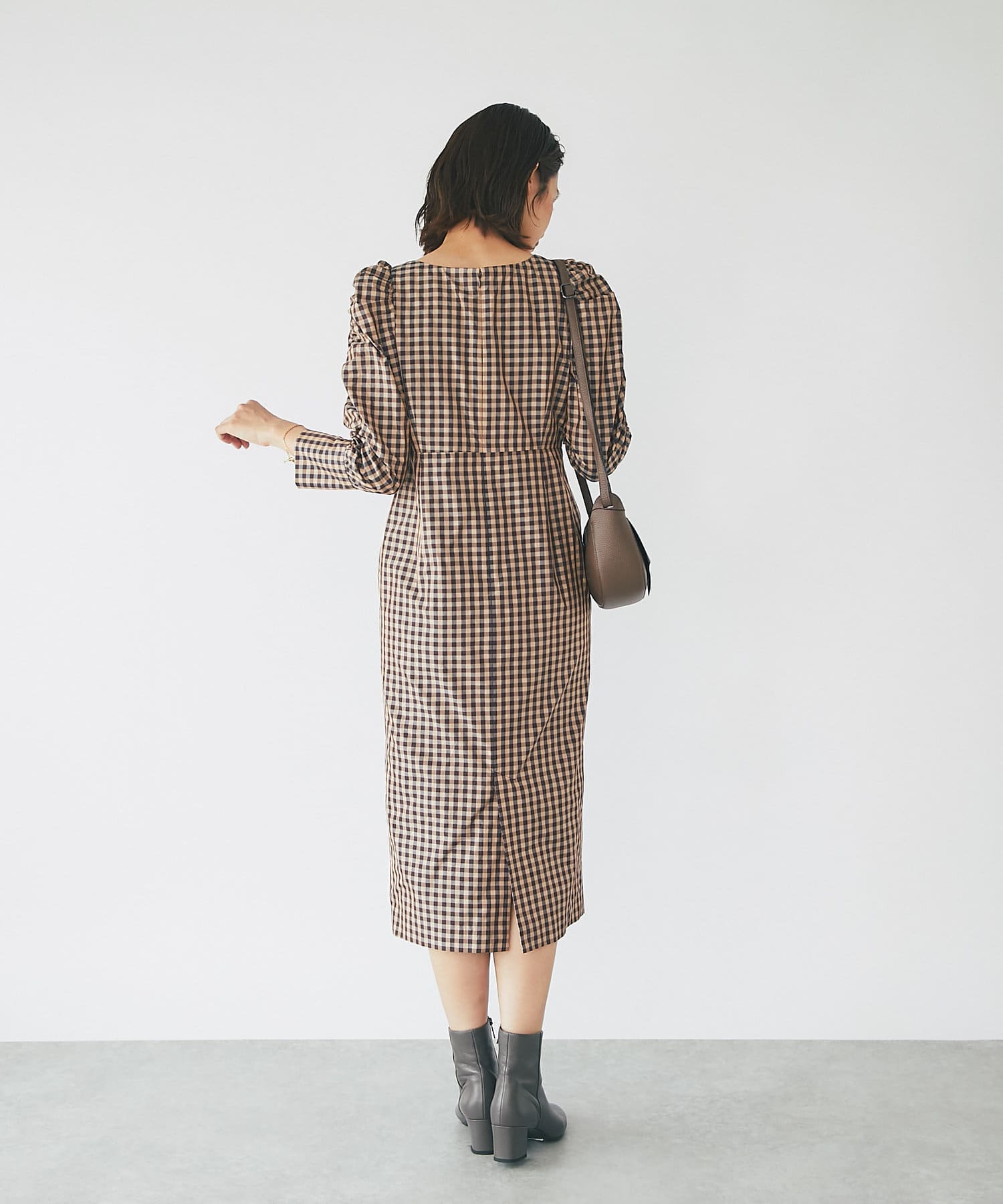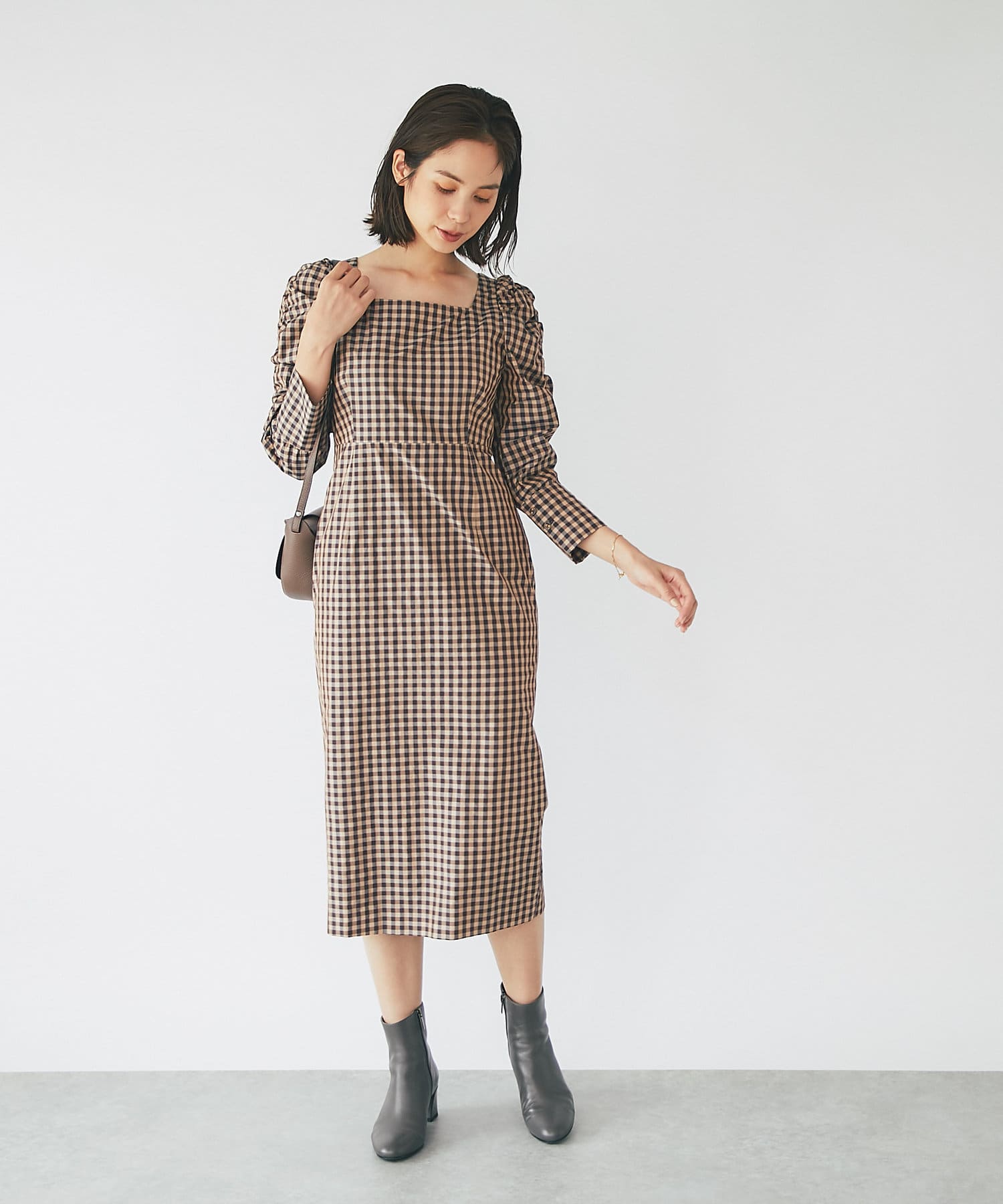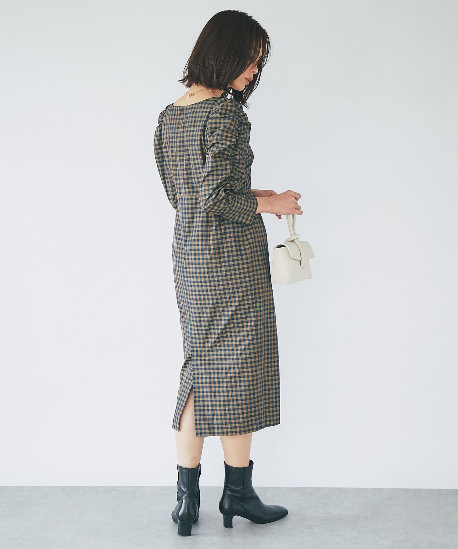 可愛いギンガムチェックをシックに着られるパワショルワンピース