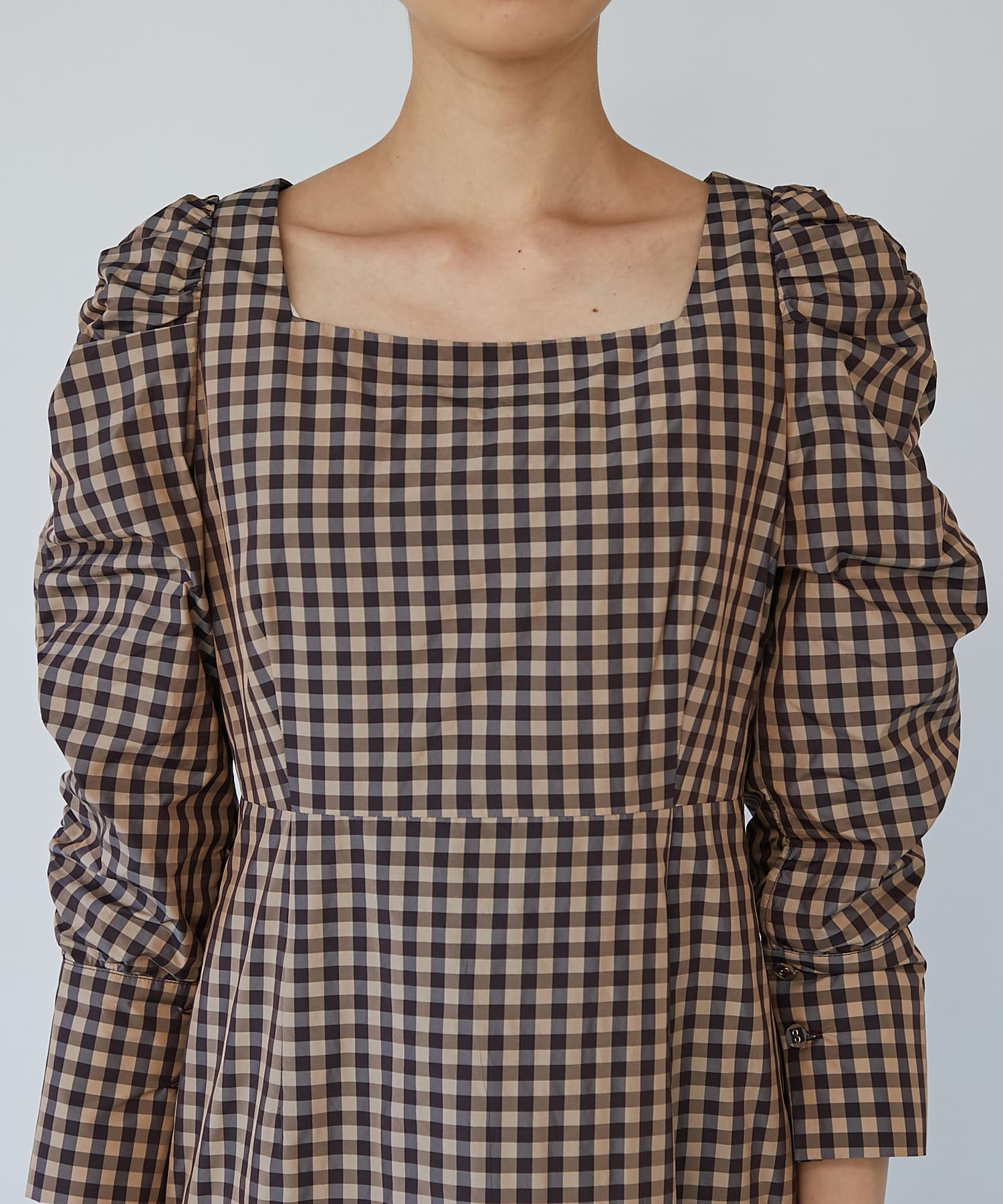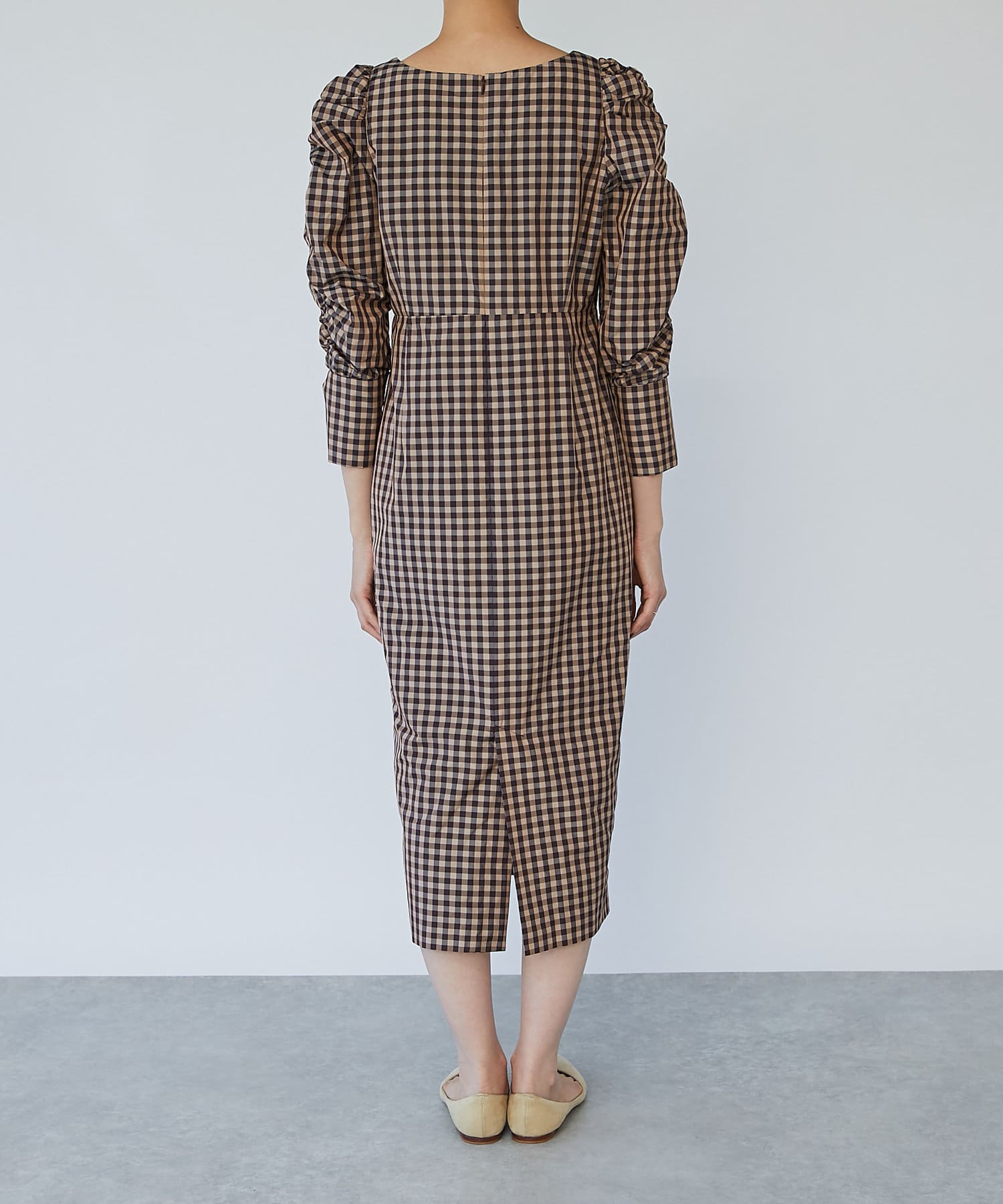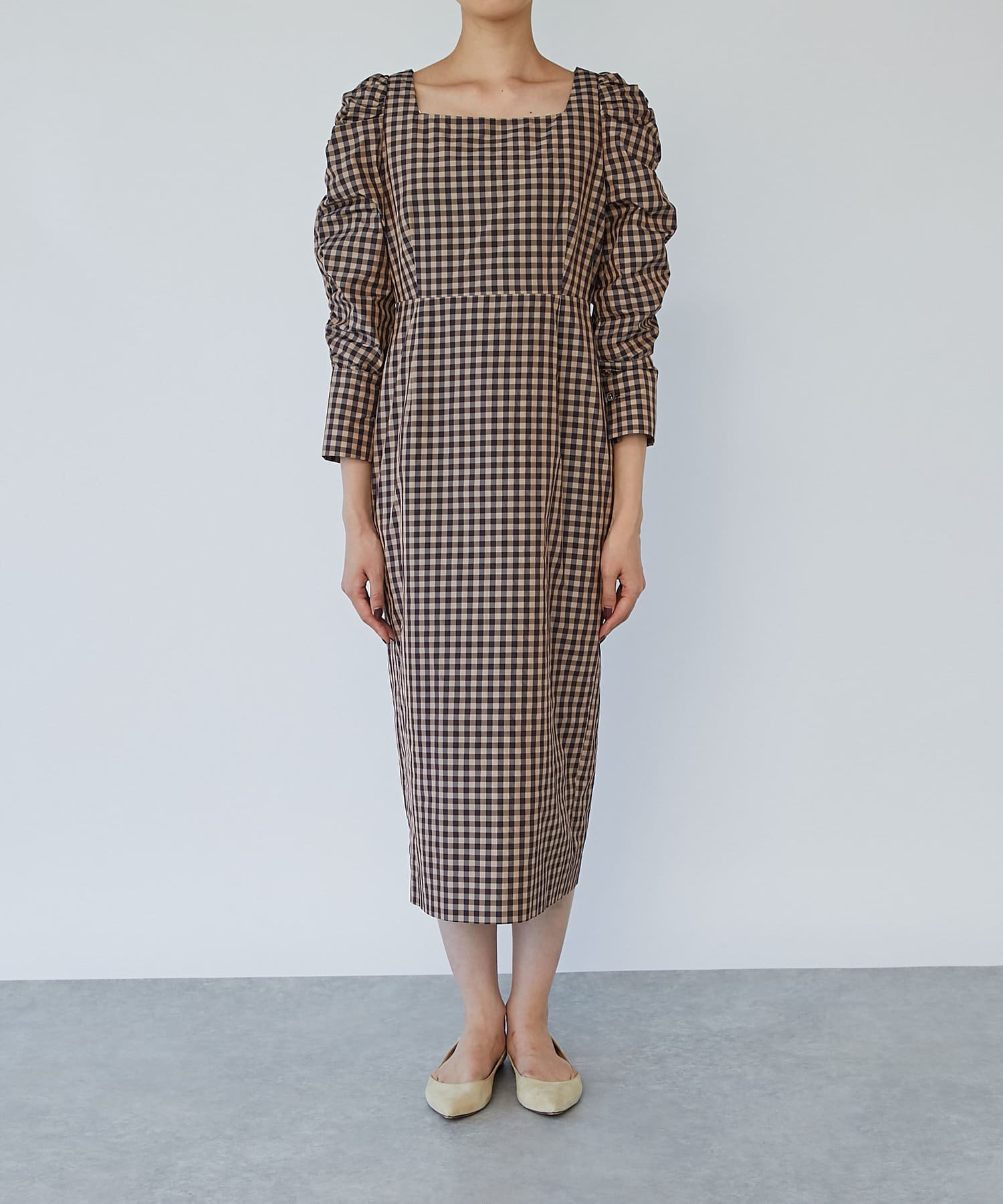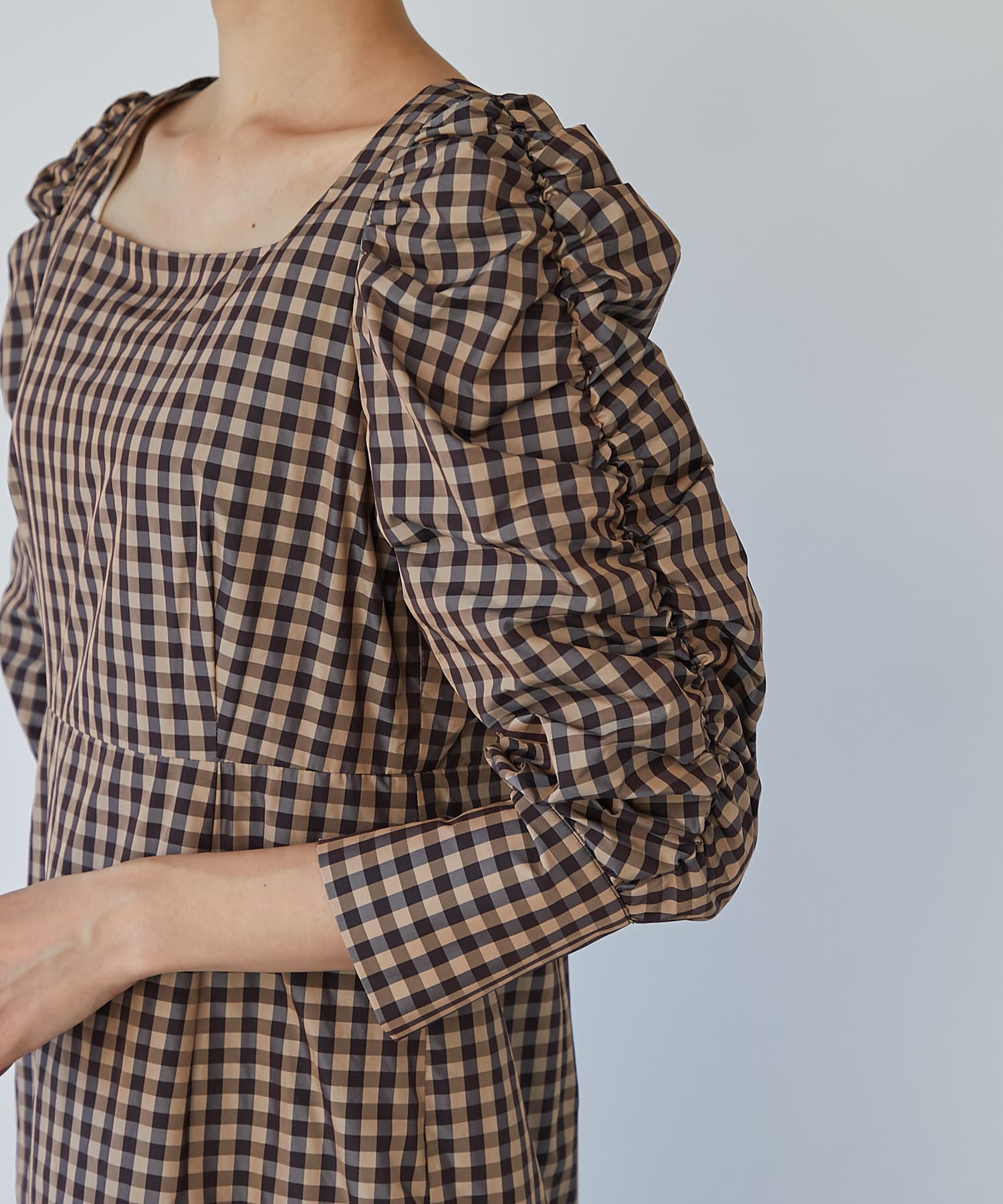 可愛いギンガムチェックをシックに着られるパワショルワンピース