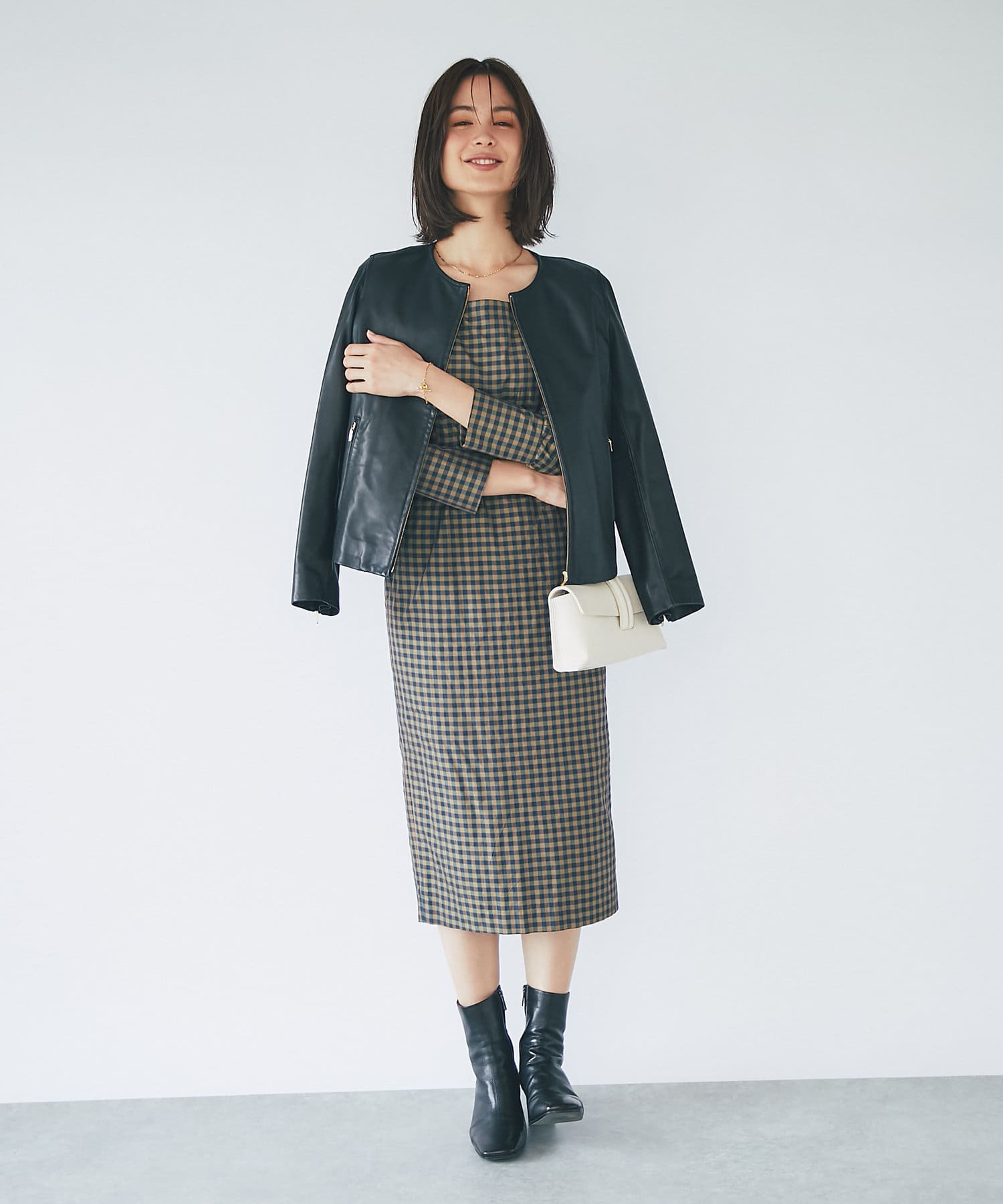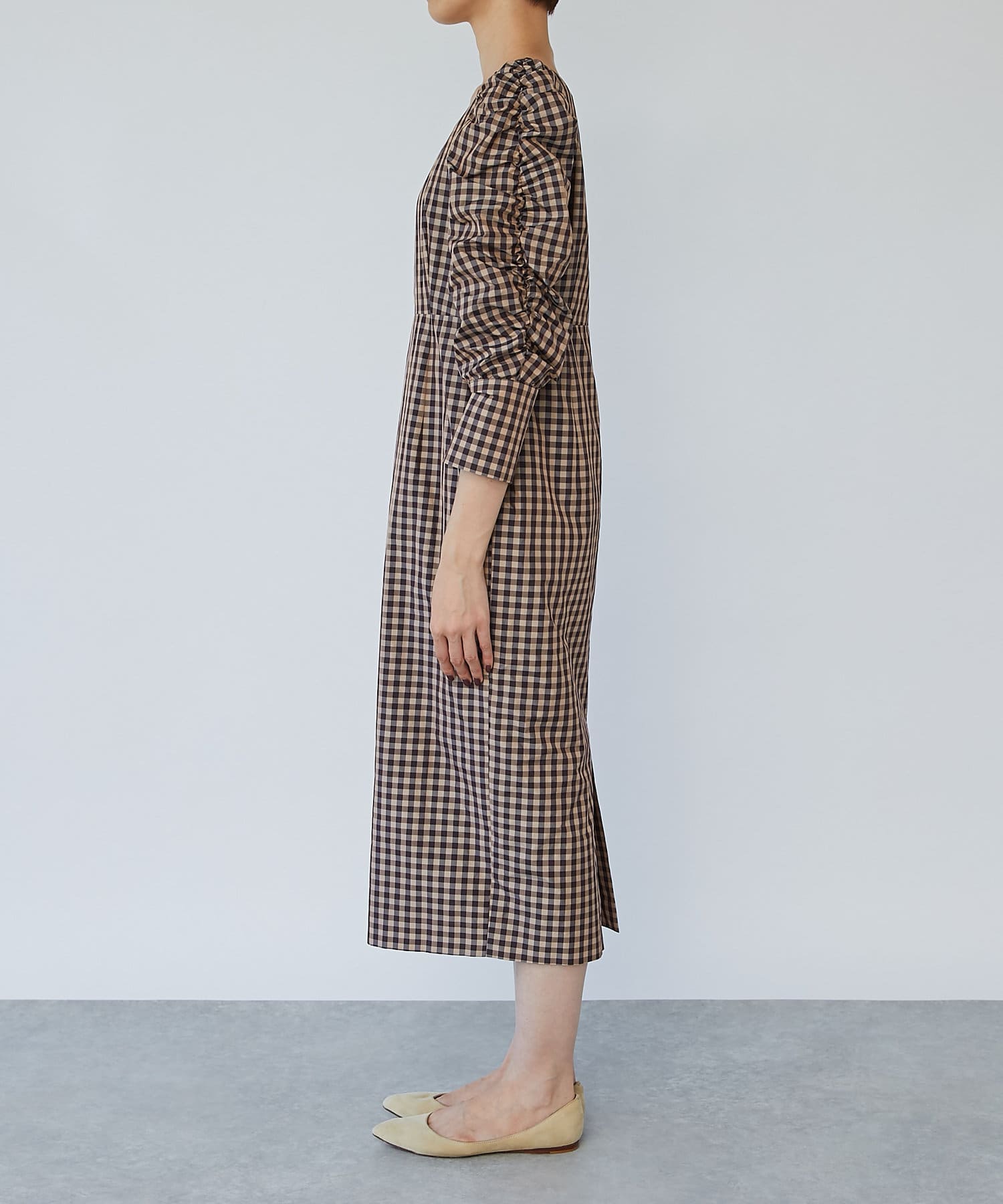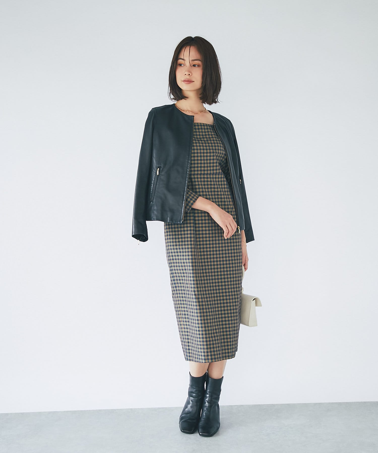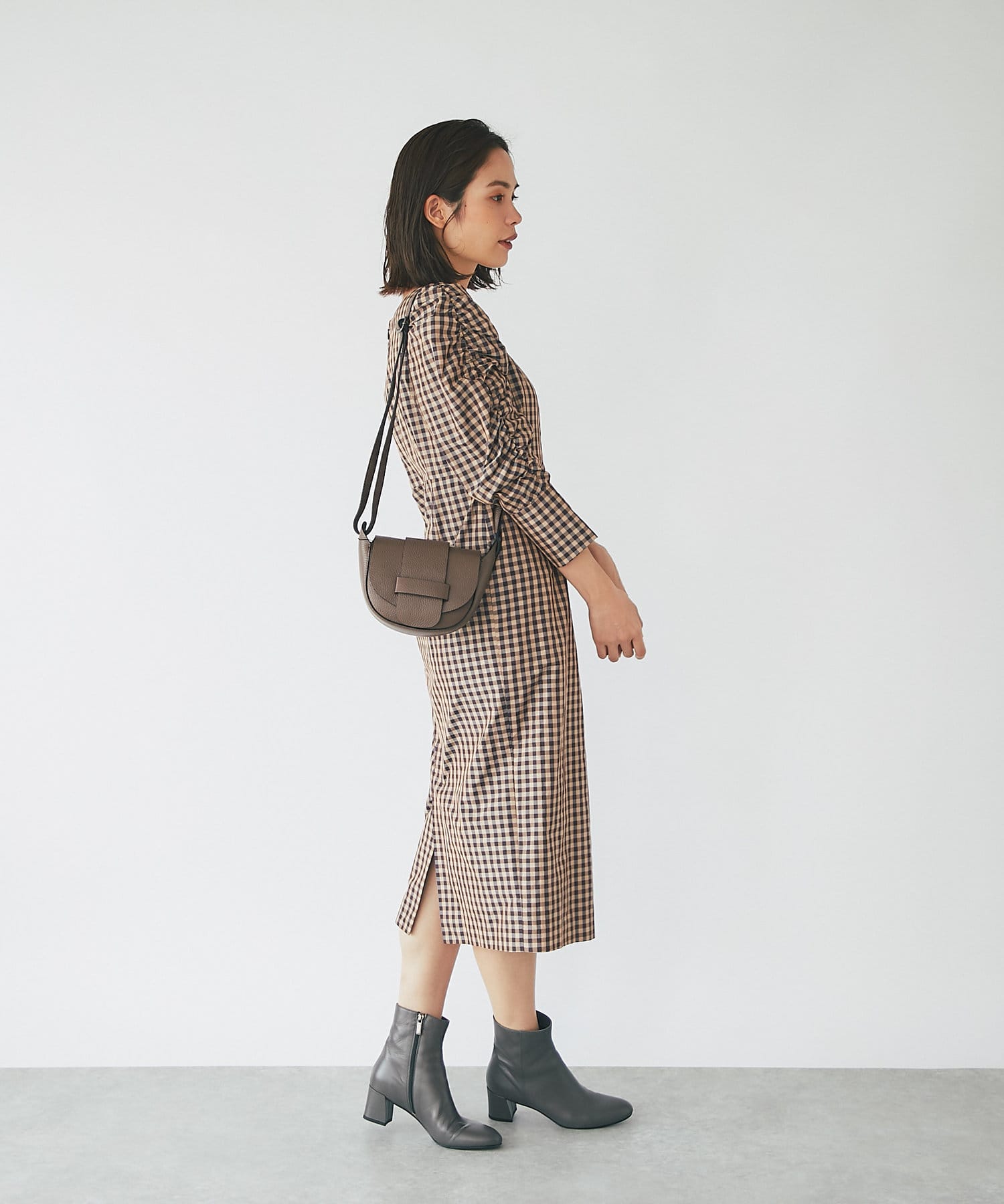 可愛いギンガムチェックをシックに着られるパワショルワンピース
