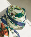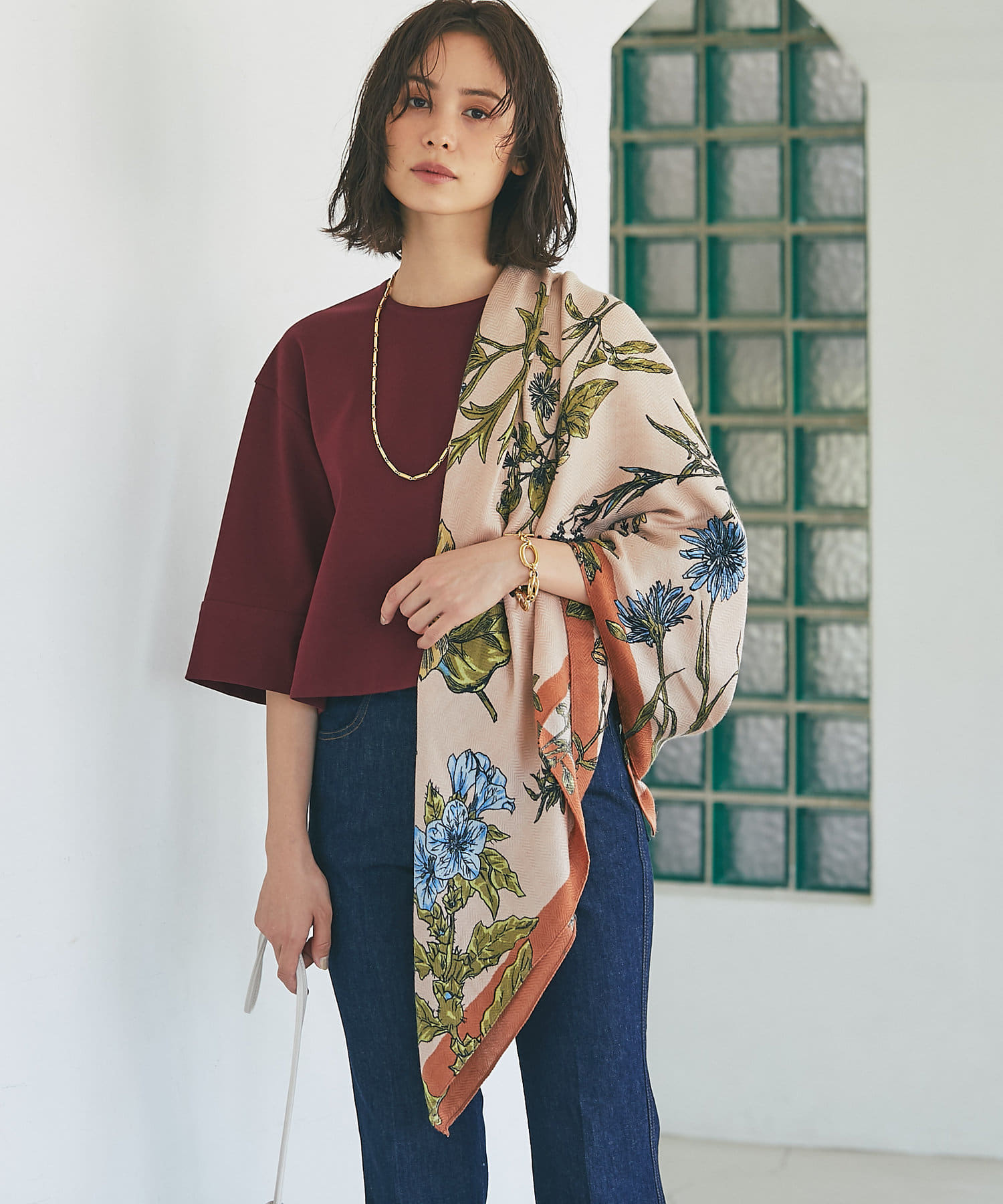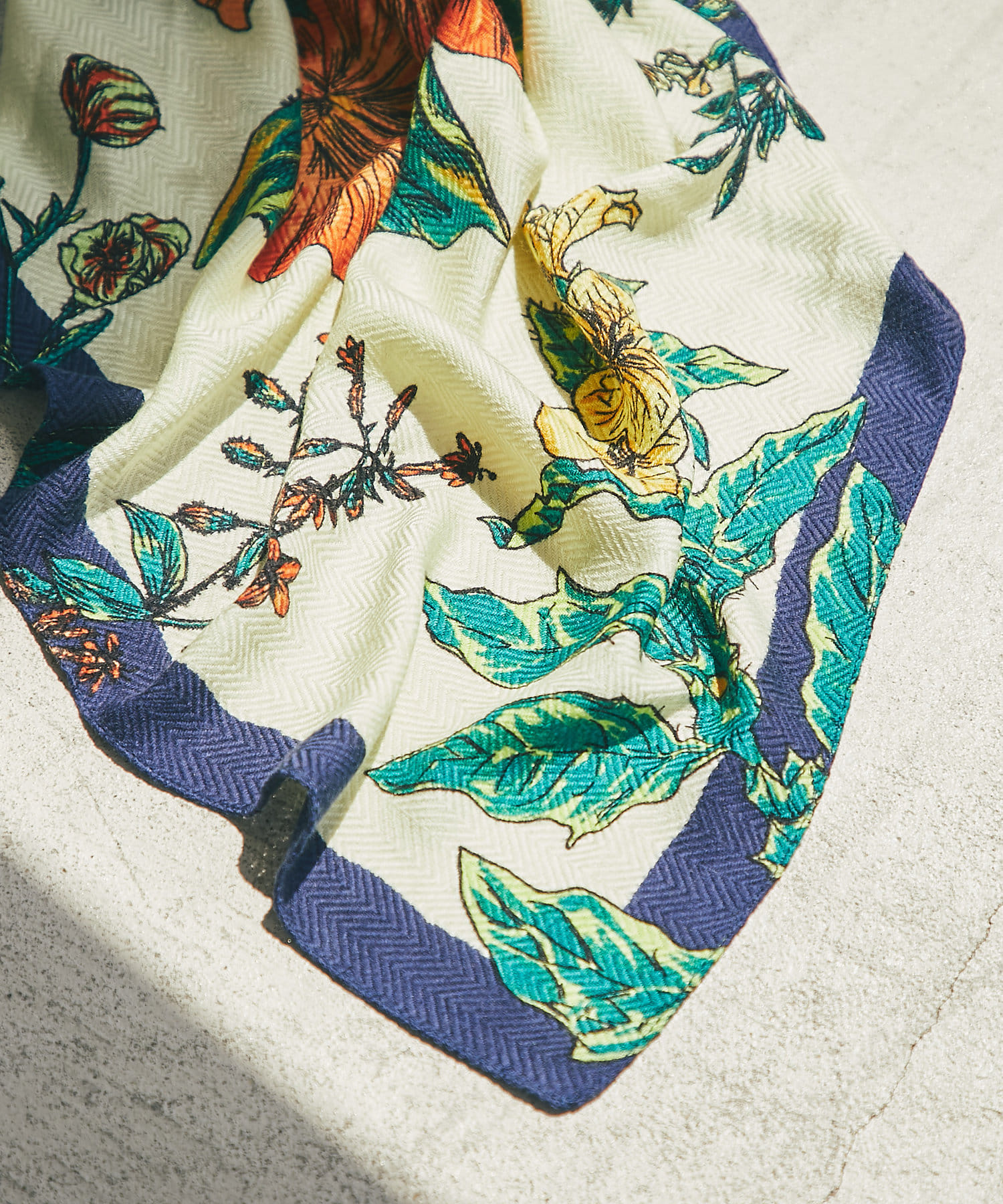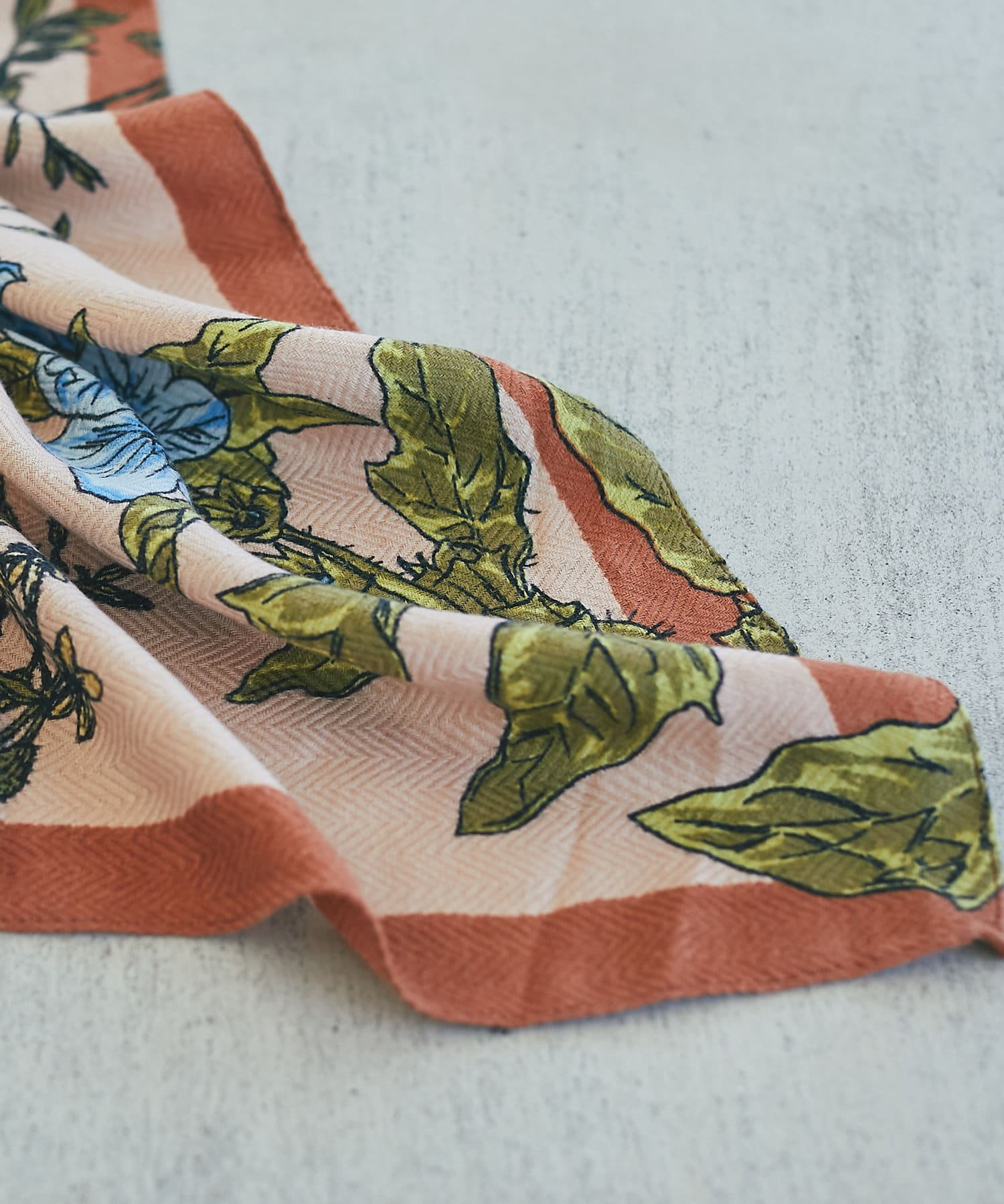 女性らしい優しい印象のマニプリのフラワー柄のスカーフ。