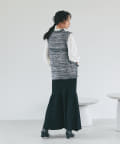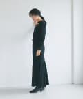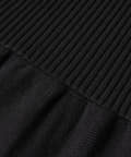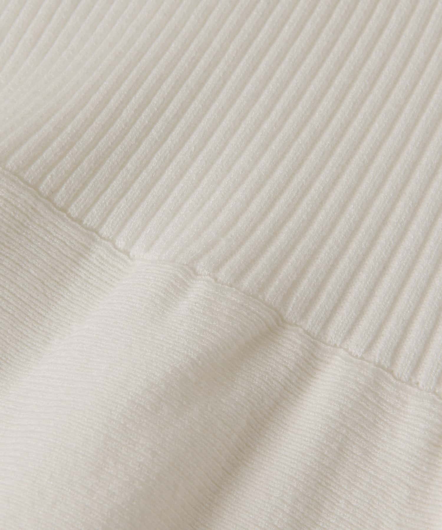 上部分はリブ編みですっきりとさせ裾のフレアー部分は適度なハリをもたせるために総針で編地を変えてシルエットを出しています。