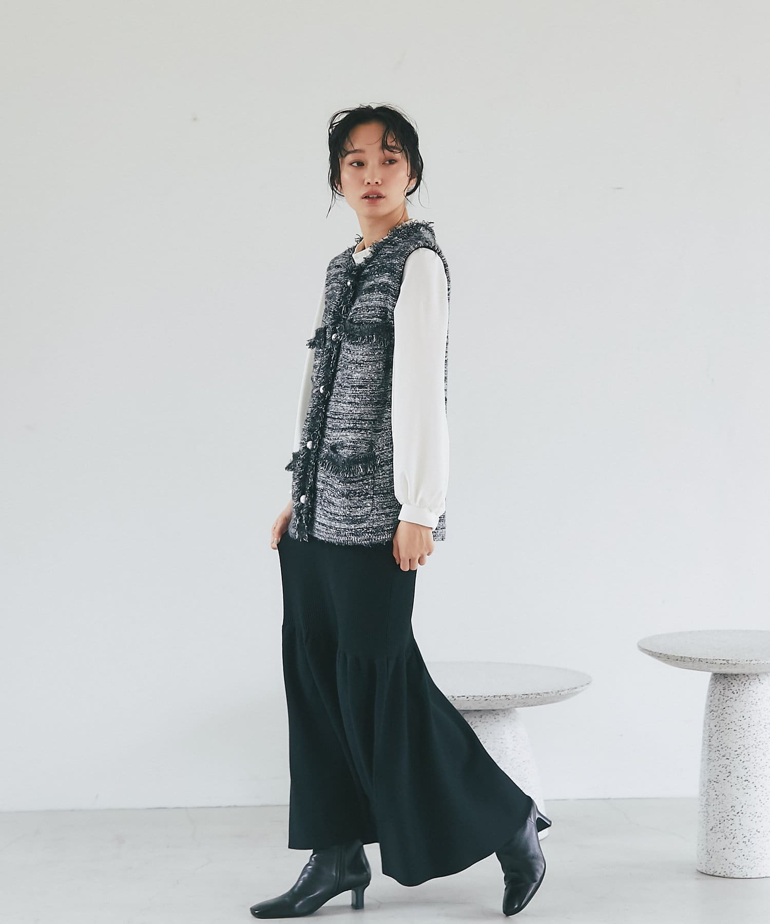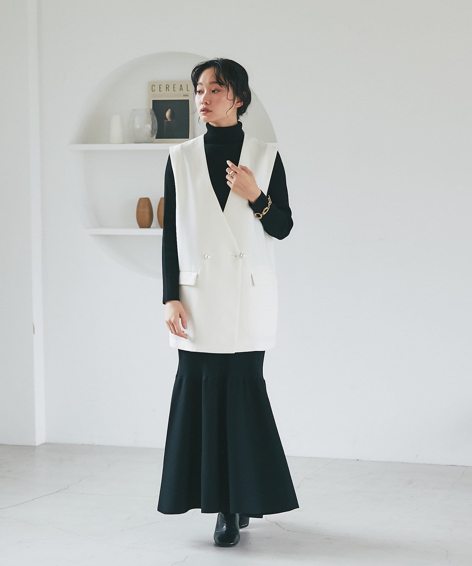 #マーメイドスカート #オンスタイル #オフィスカジュアル #ウエストゴム #デイリーユース #ロング丈 #無地 #セットアップ