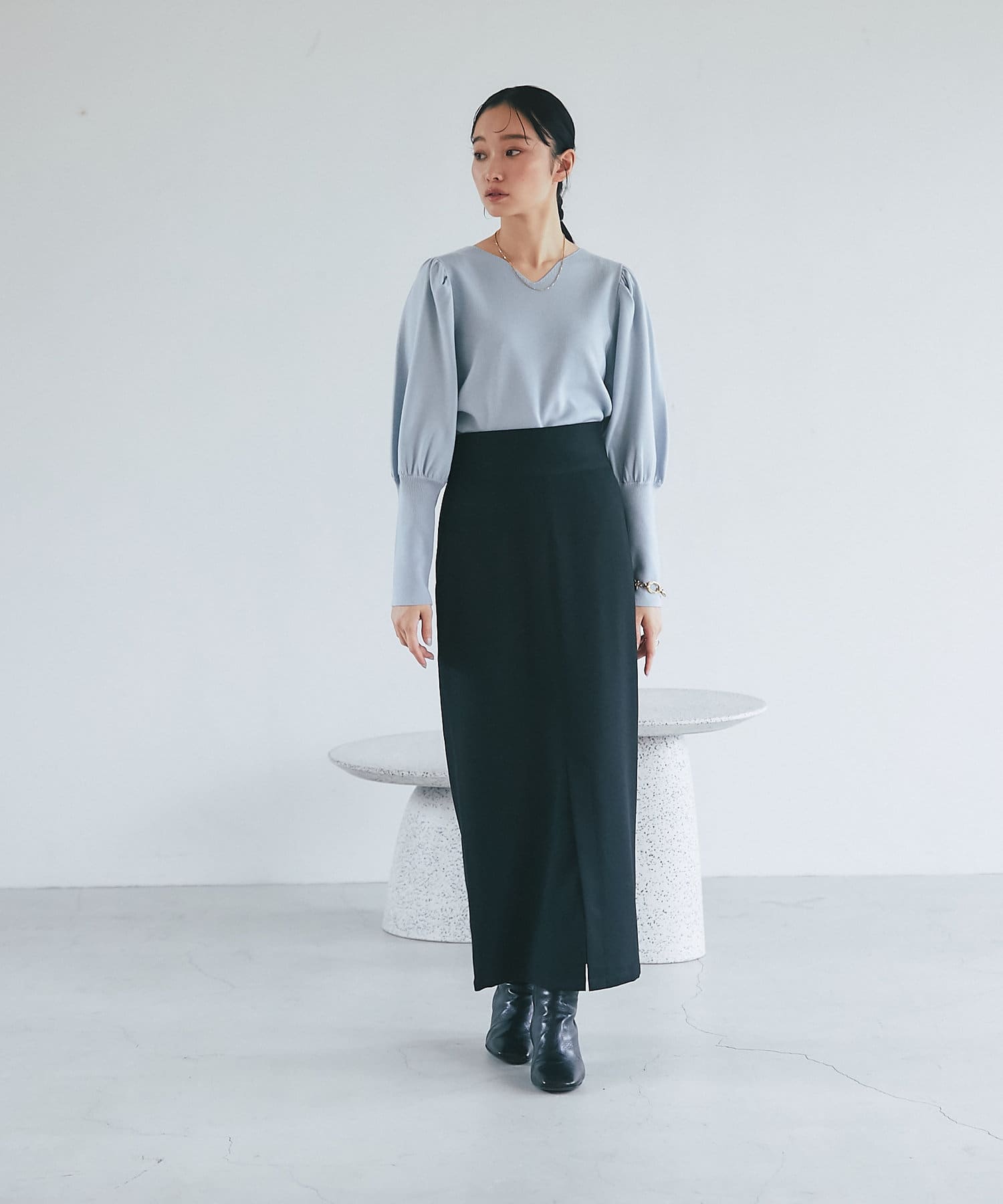 #大人カジュアル #きれいめカジュアル #上品カジュアル #ナロースカート #ロングスカート #マキシスカート #Iライン #華奢見え #オフィスカジュアル