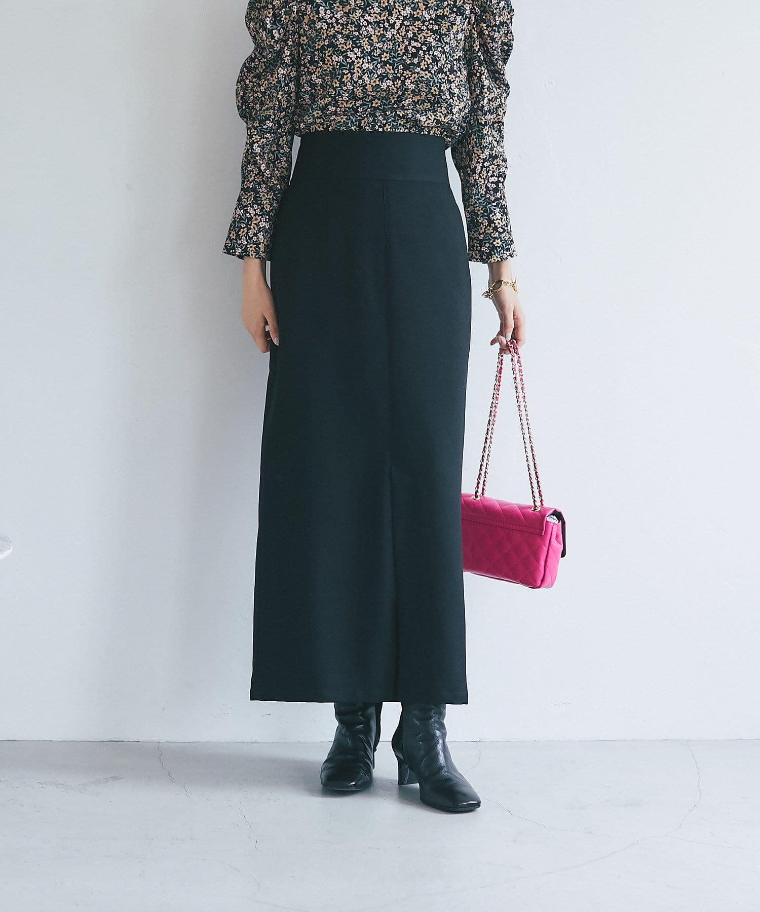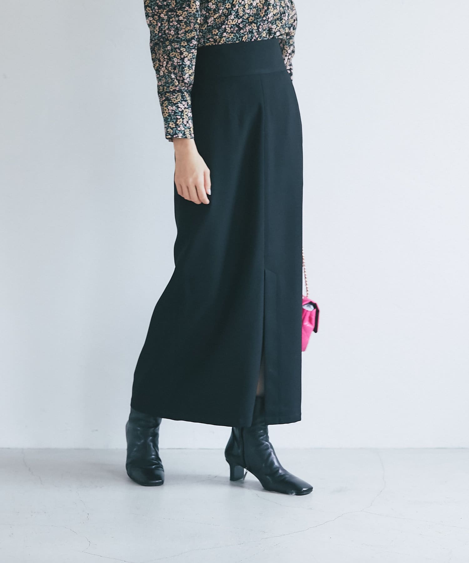 【Iラインシルエットですっきり見え】ドライストレッチナローマキシスカート