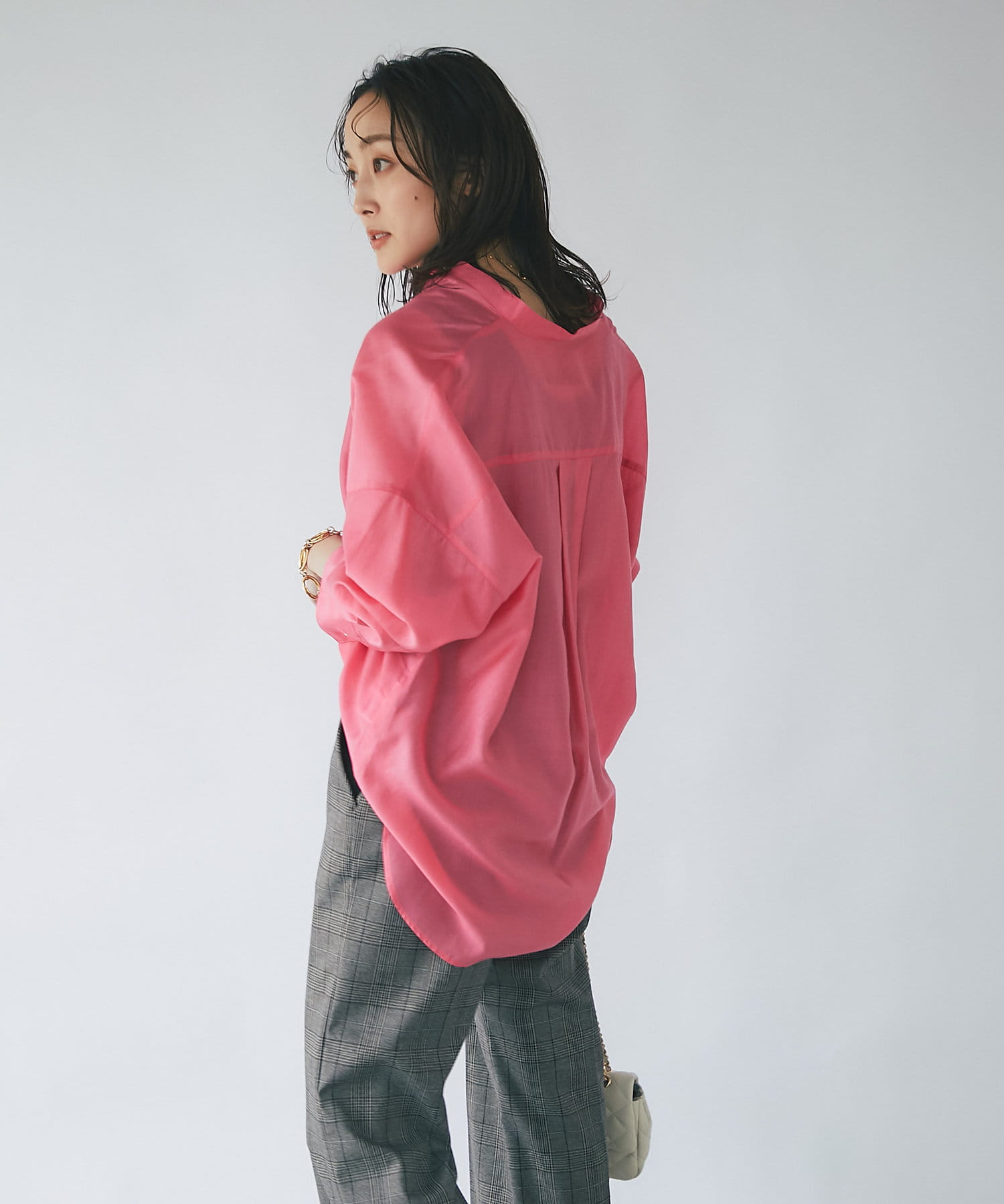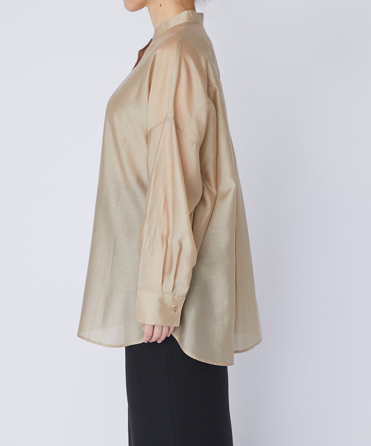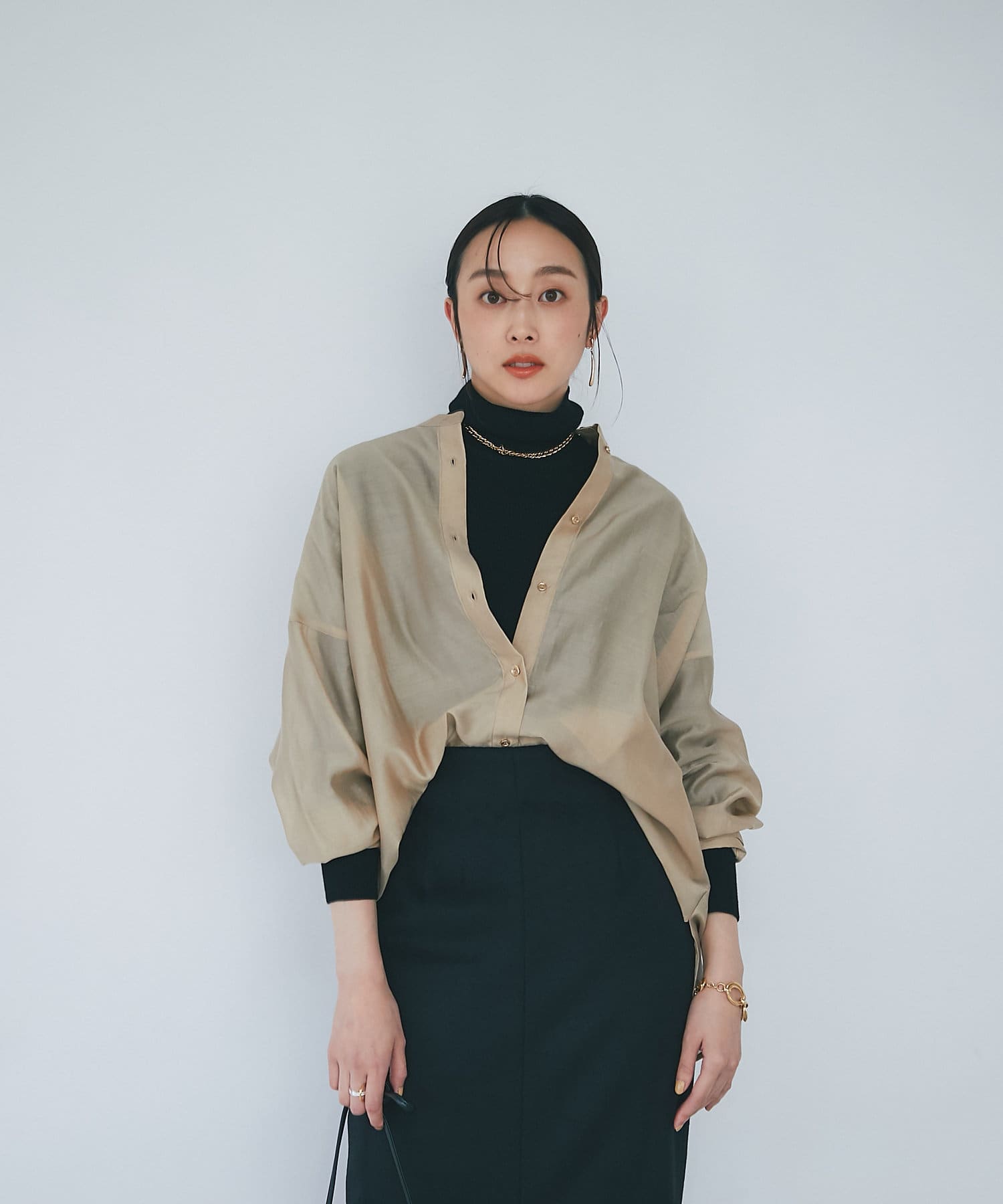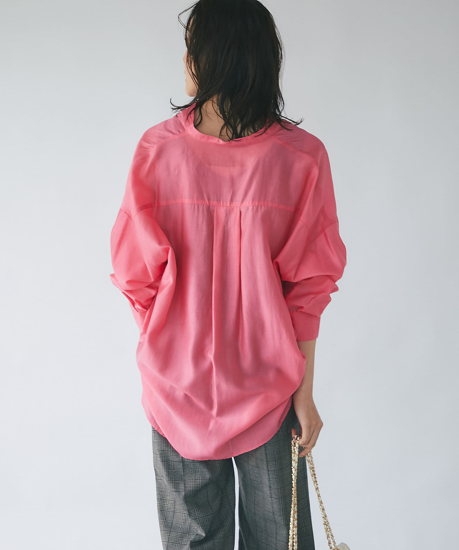 【旬な着こなしに欠かせない・手洗い可】シアーバンドカラーシャツ
