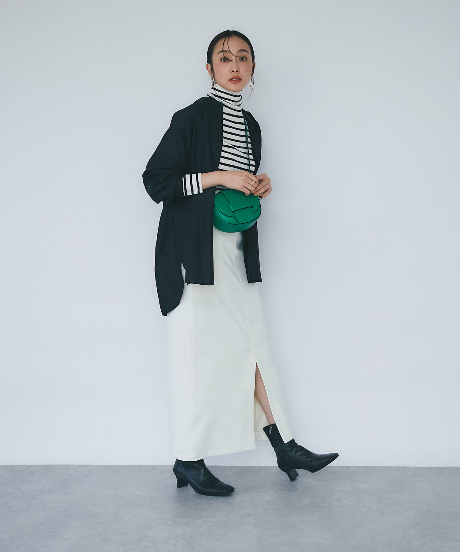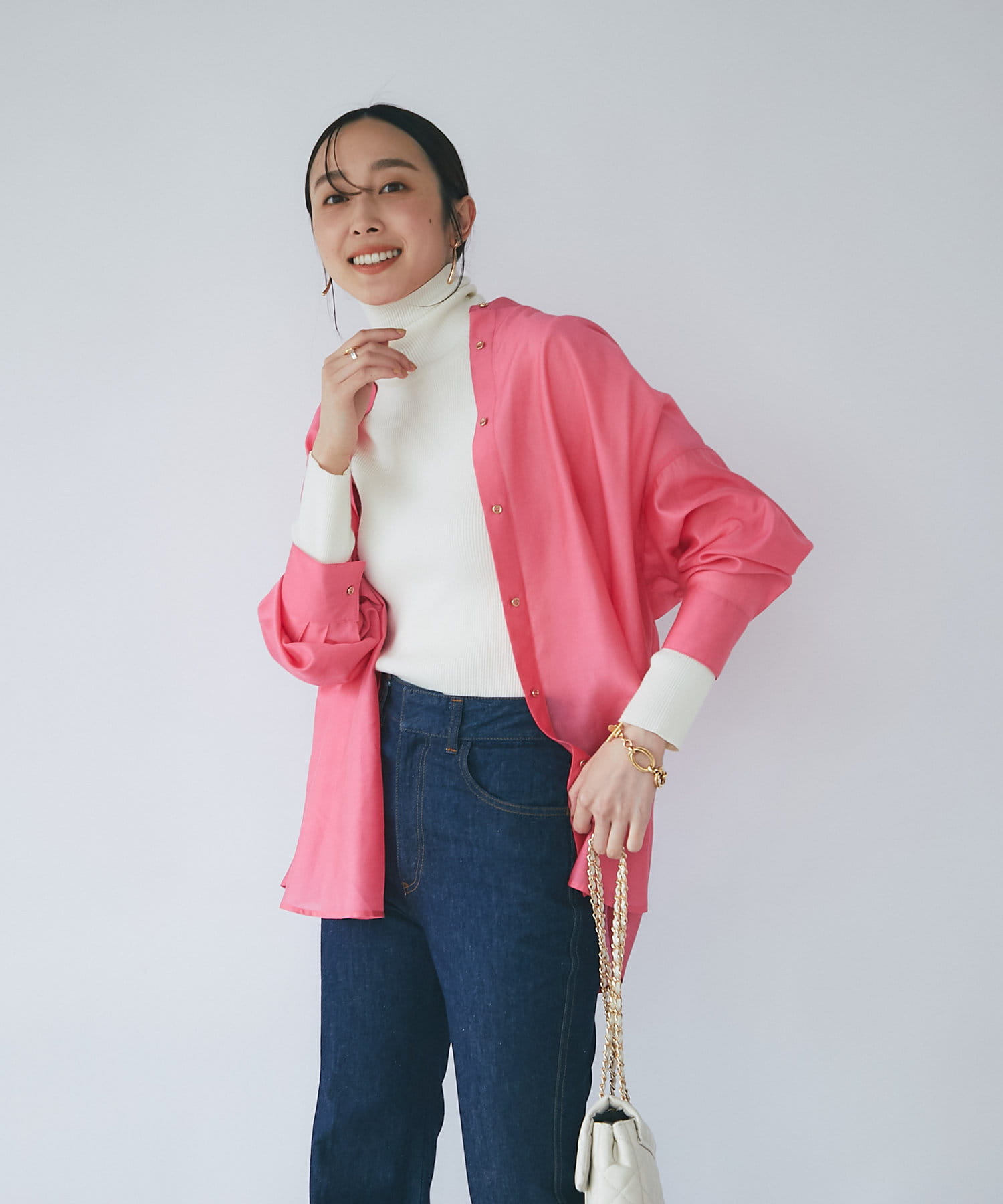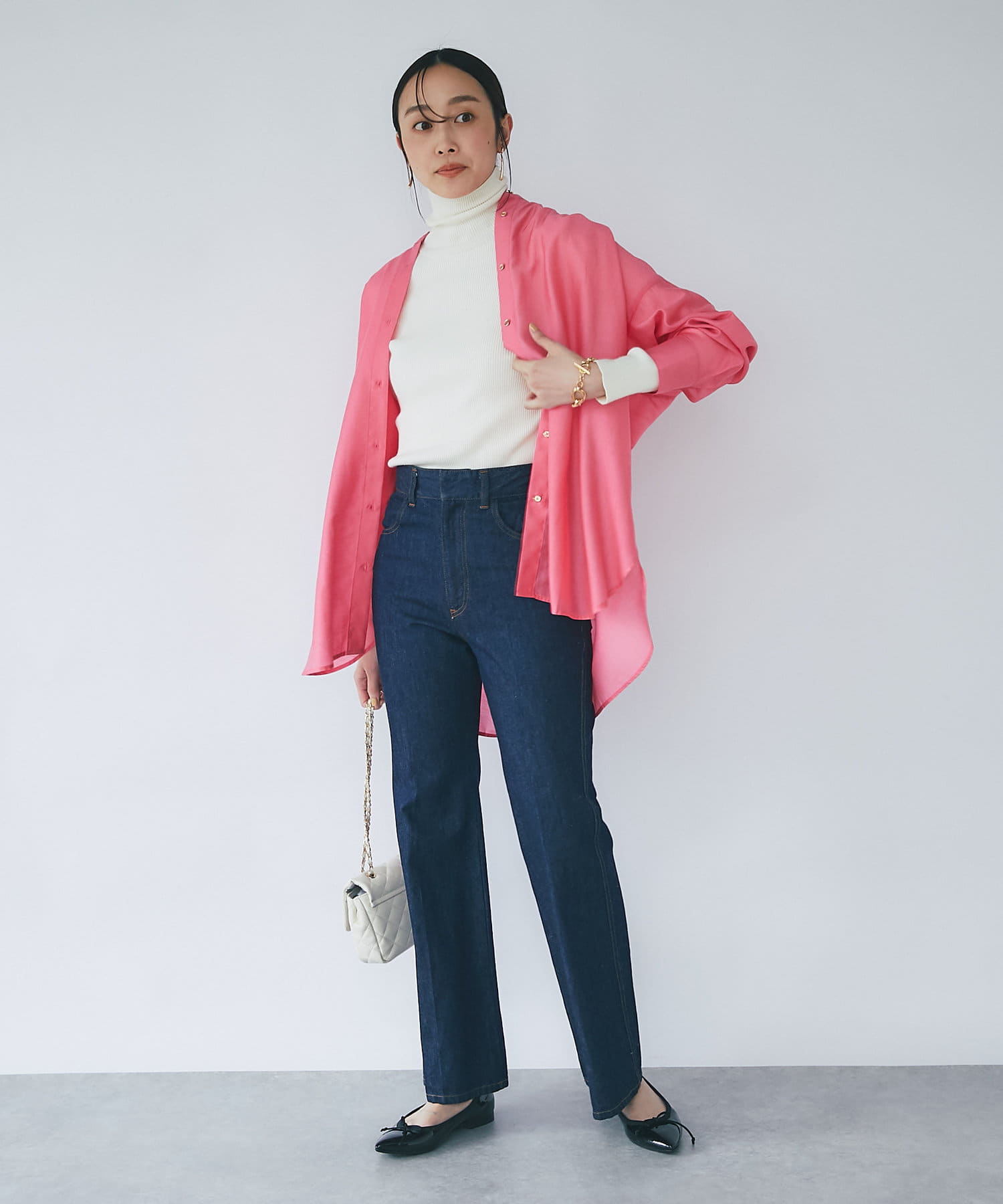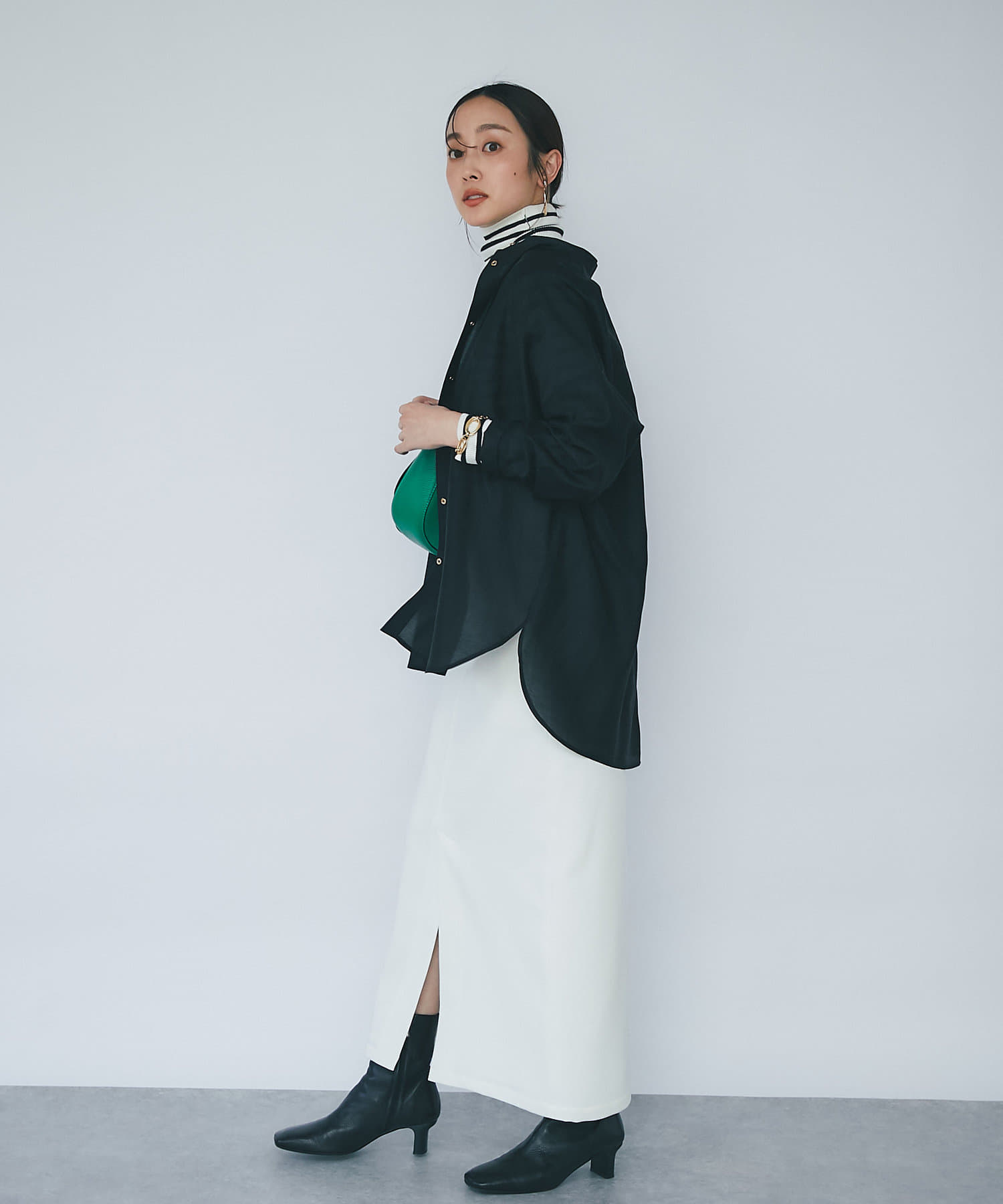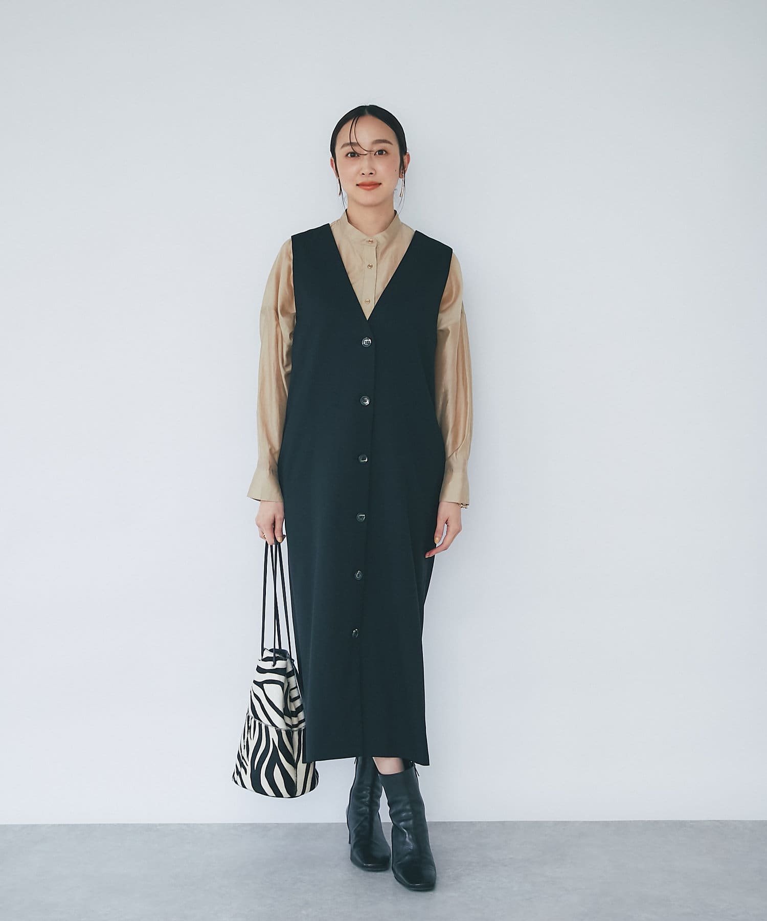 サイズニットとのインナー合わせで裾を出した着こなしやワンピースのインナー使いにもおすすめです。