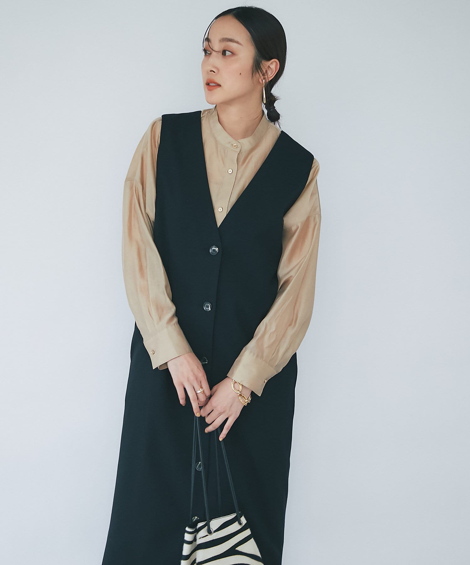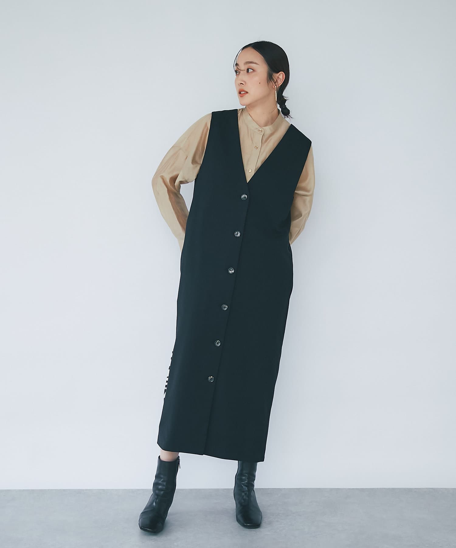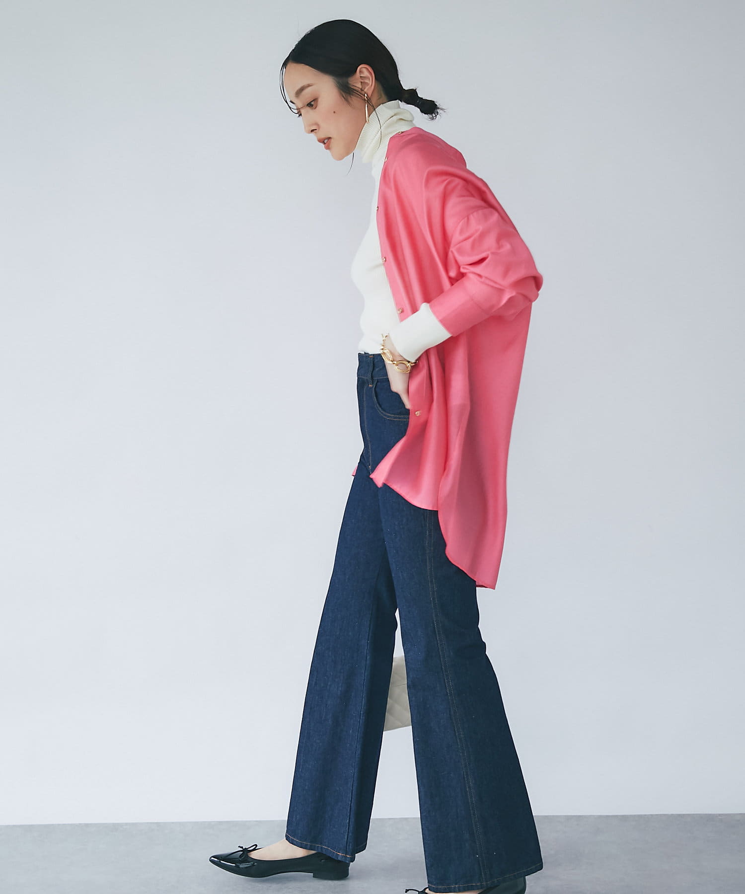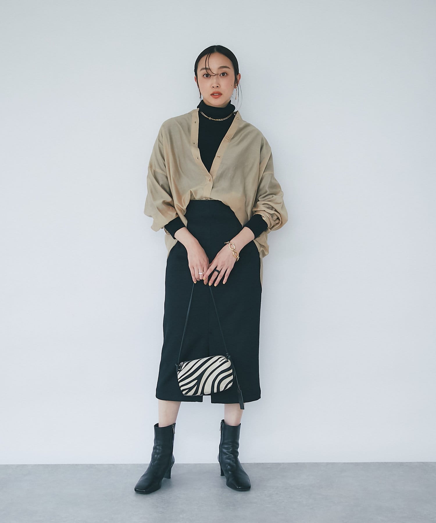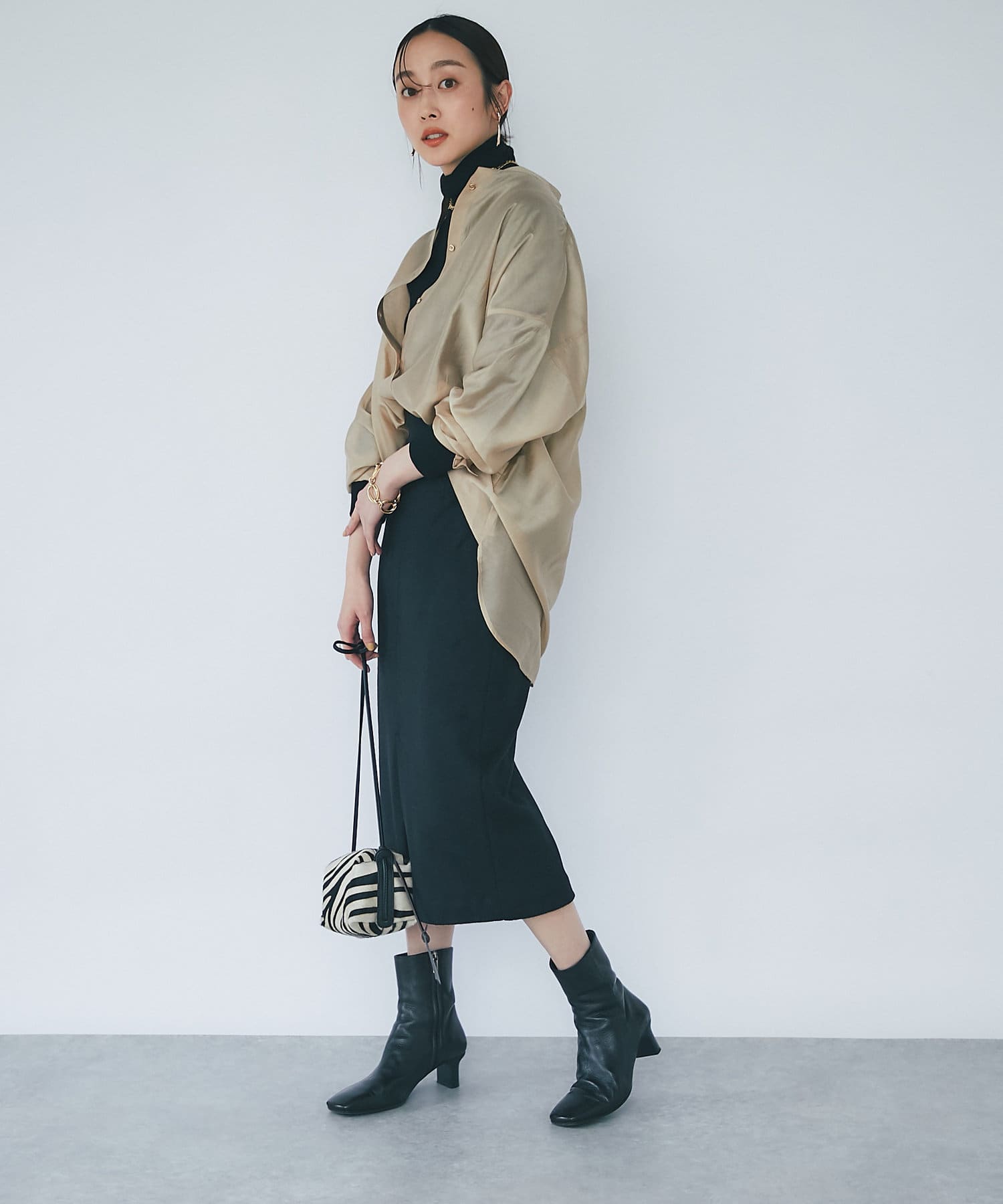 サイズニットとのインナー合わせで裾を出した着こなしやワンピースのインナー使いにもおすすめです。
