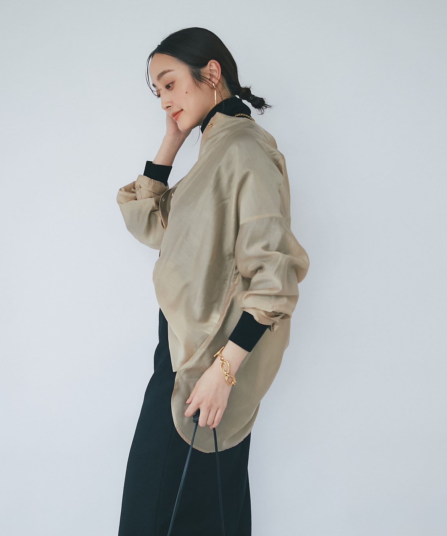 シアー素材で程よい透け感が大人っぽく、この1枚でトレンド感があり旬な着こなしが叶います