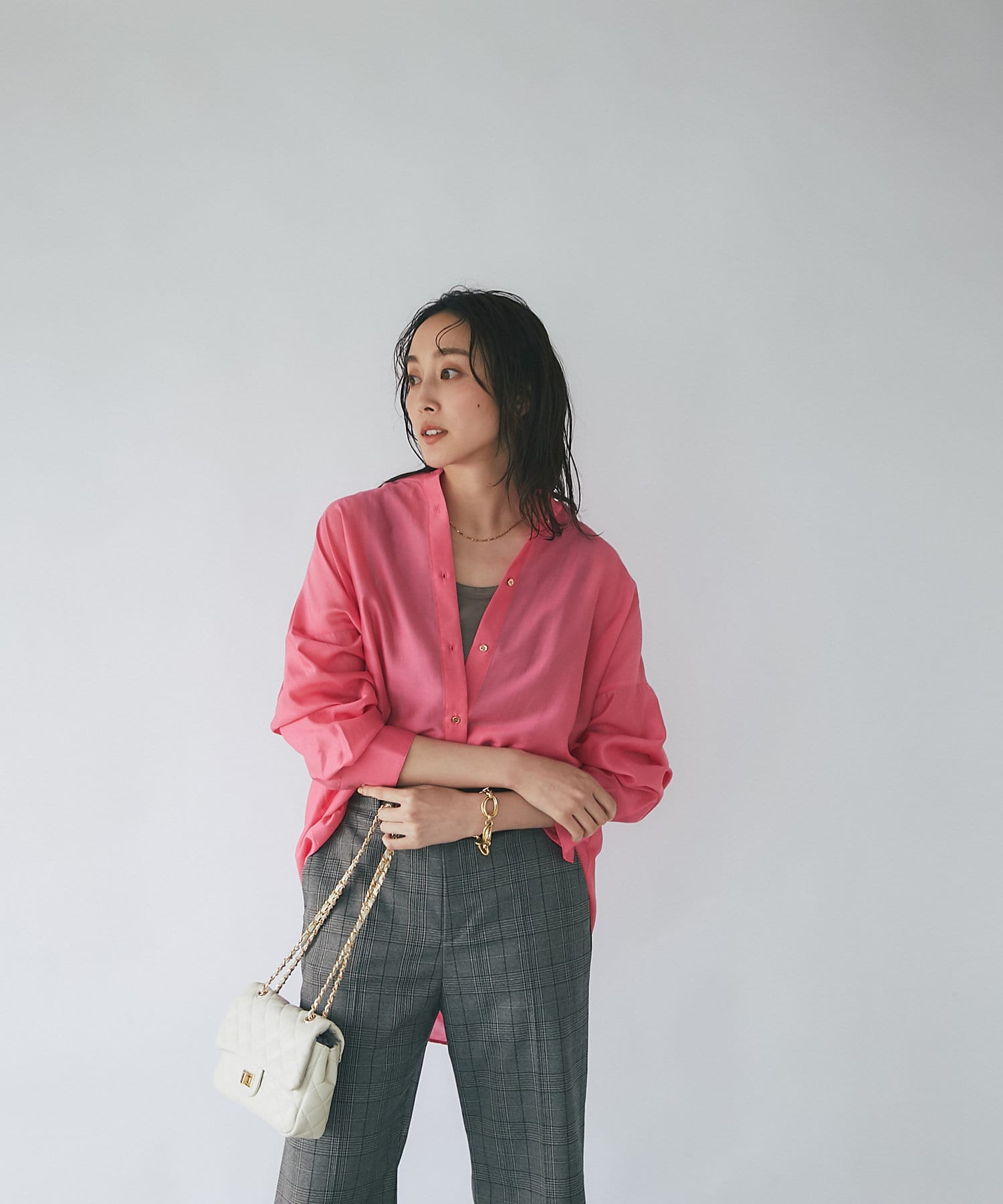 #バンドカラー #スタンドネック #ナローネック #オーバーサイズ #オーバーシャツ #デイリーユース #無地 #ベーシックカラー #カラーアイテム