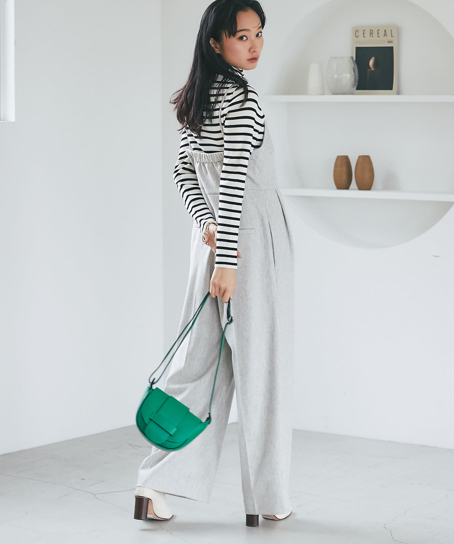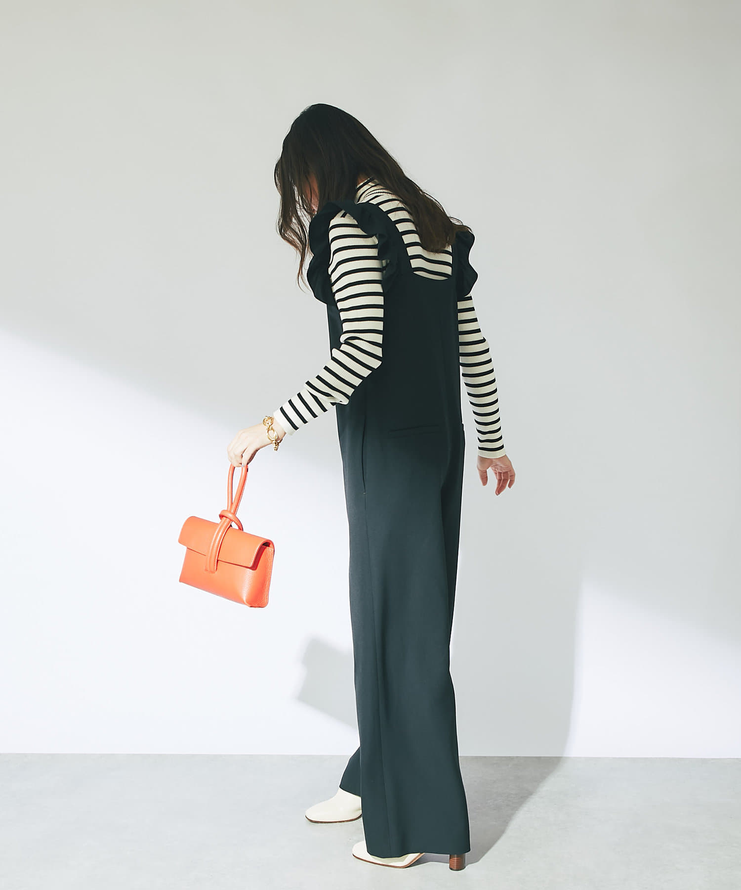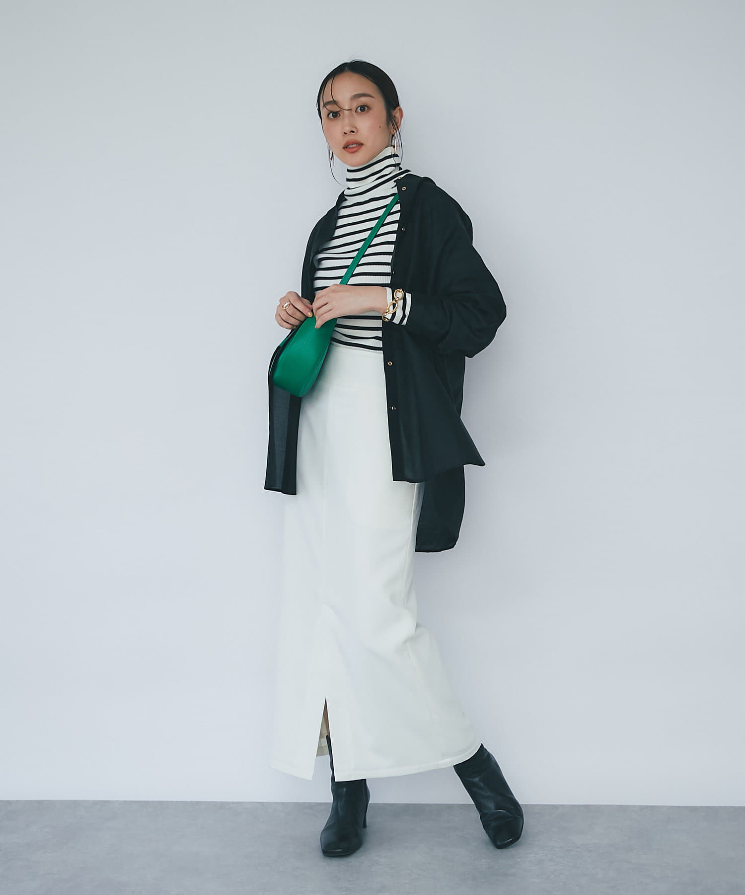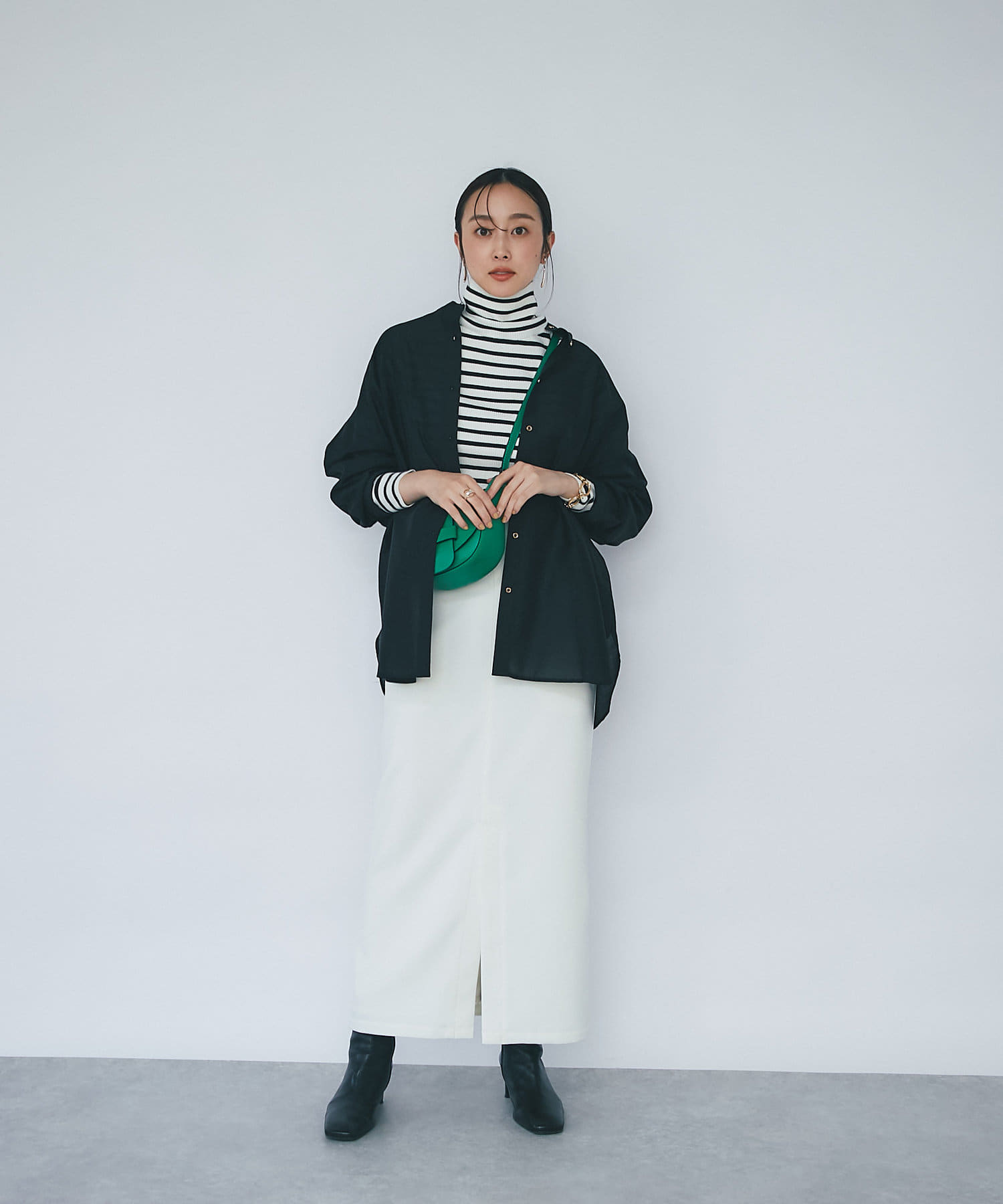 コンパクトなサイズ感なのでボトムはボリュームがあるものにして、対比で華奢見えするシルエットを作ったり、様々な着こなしができます。
