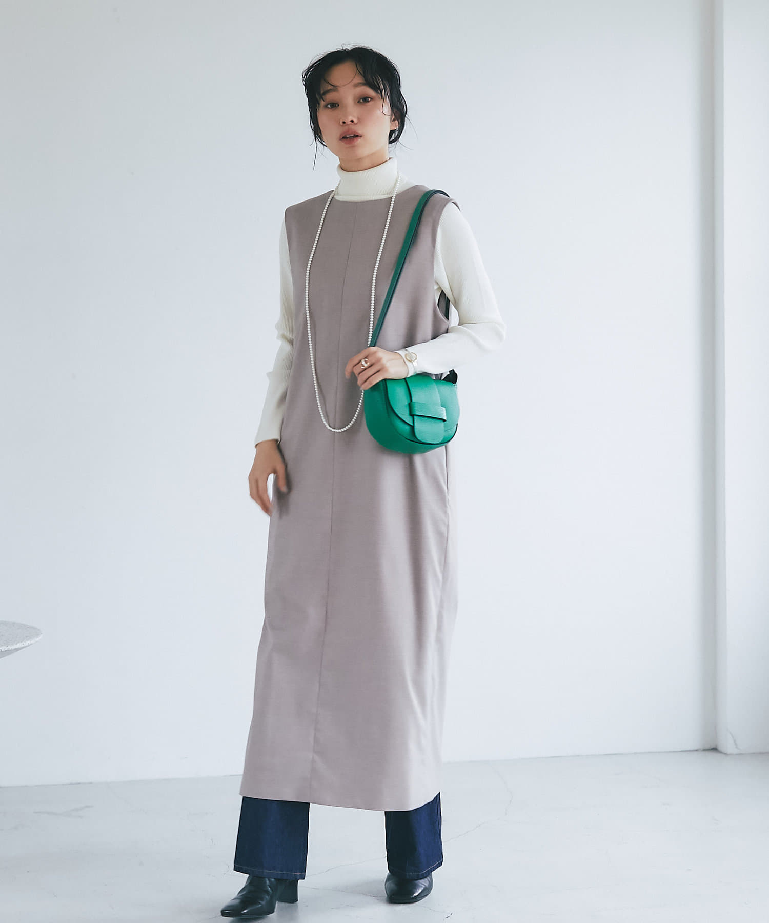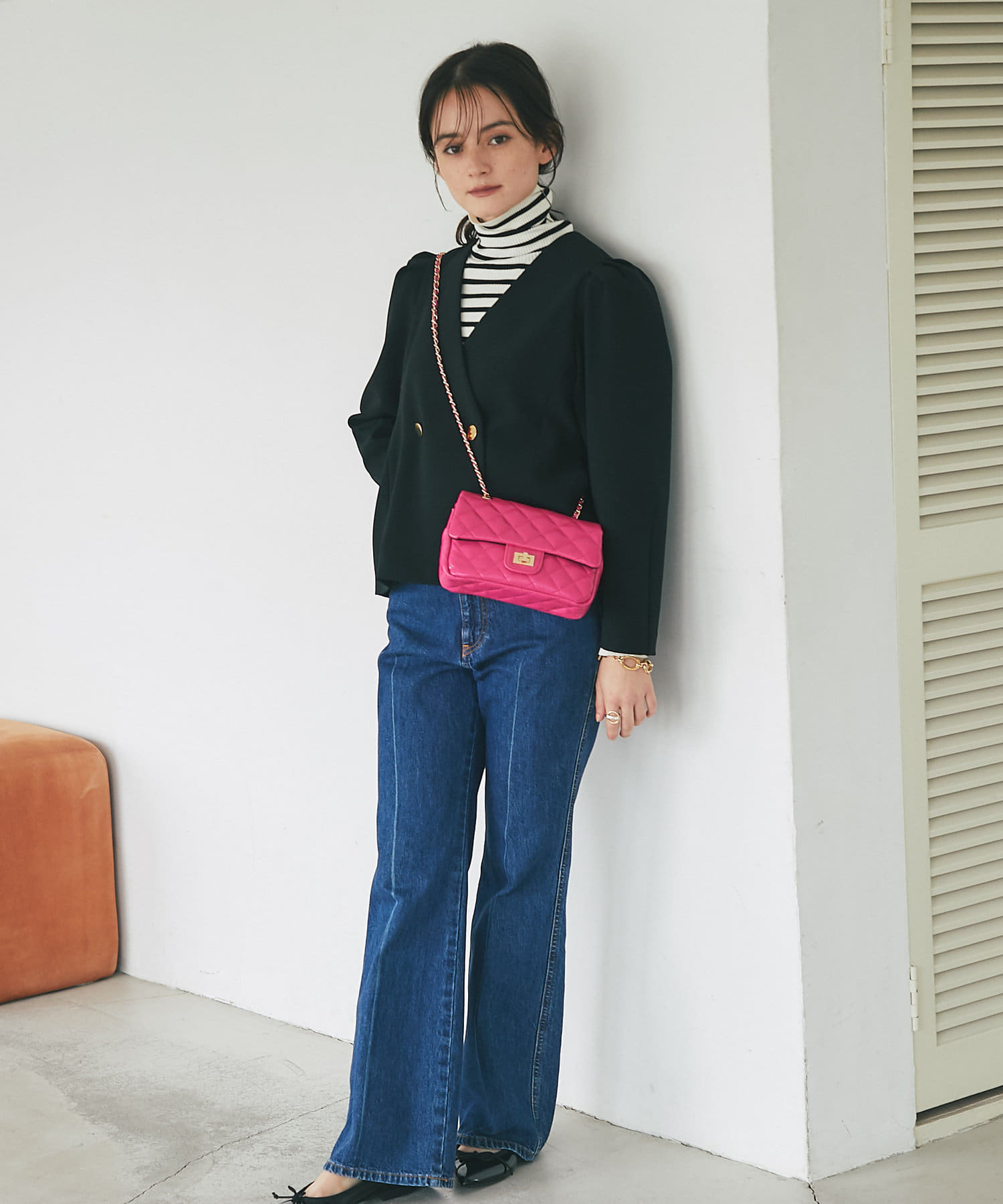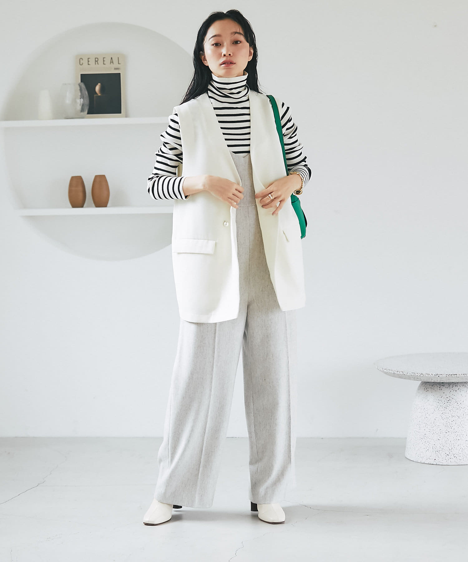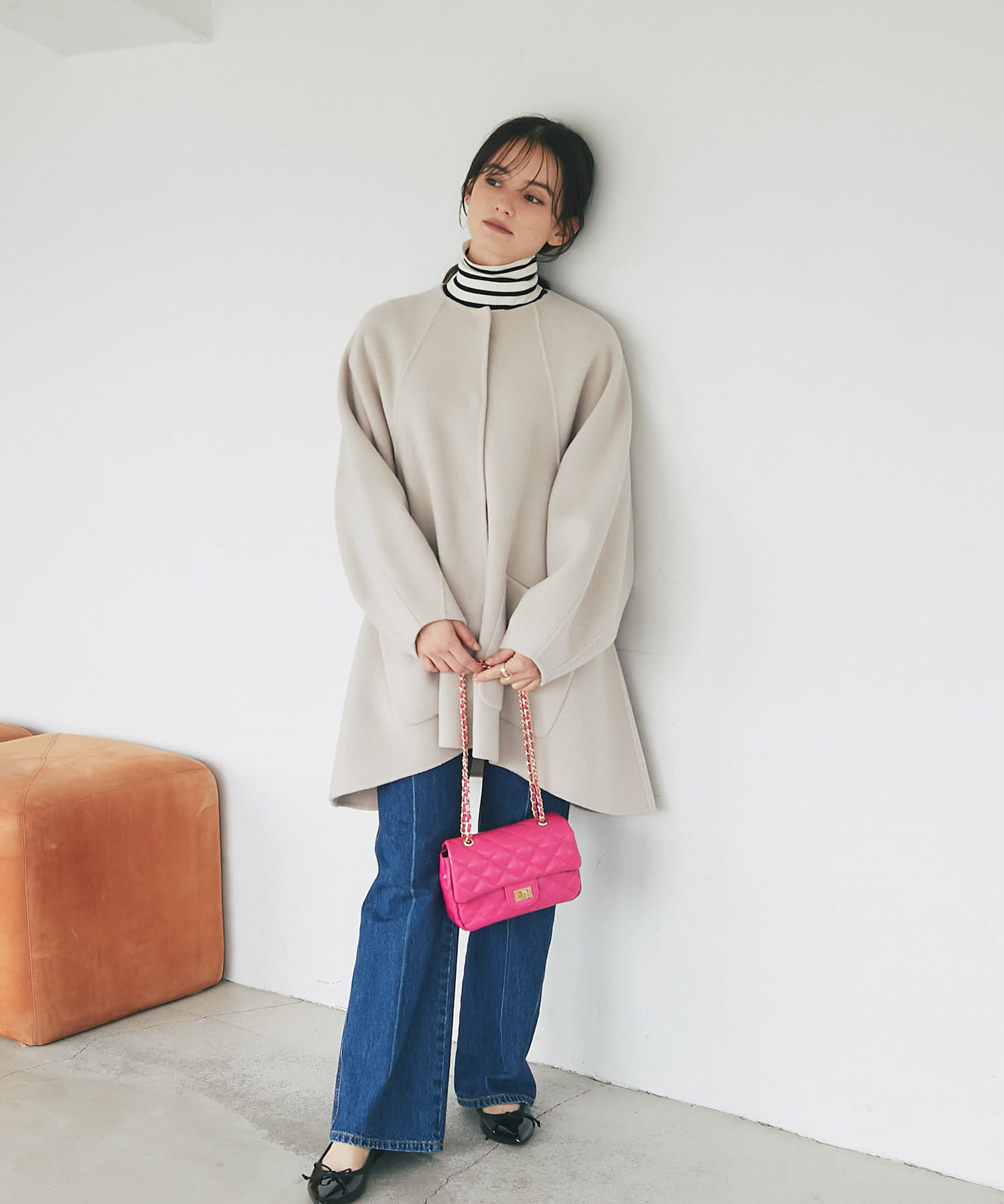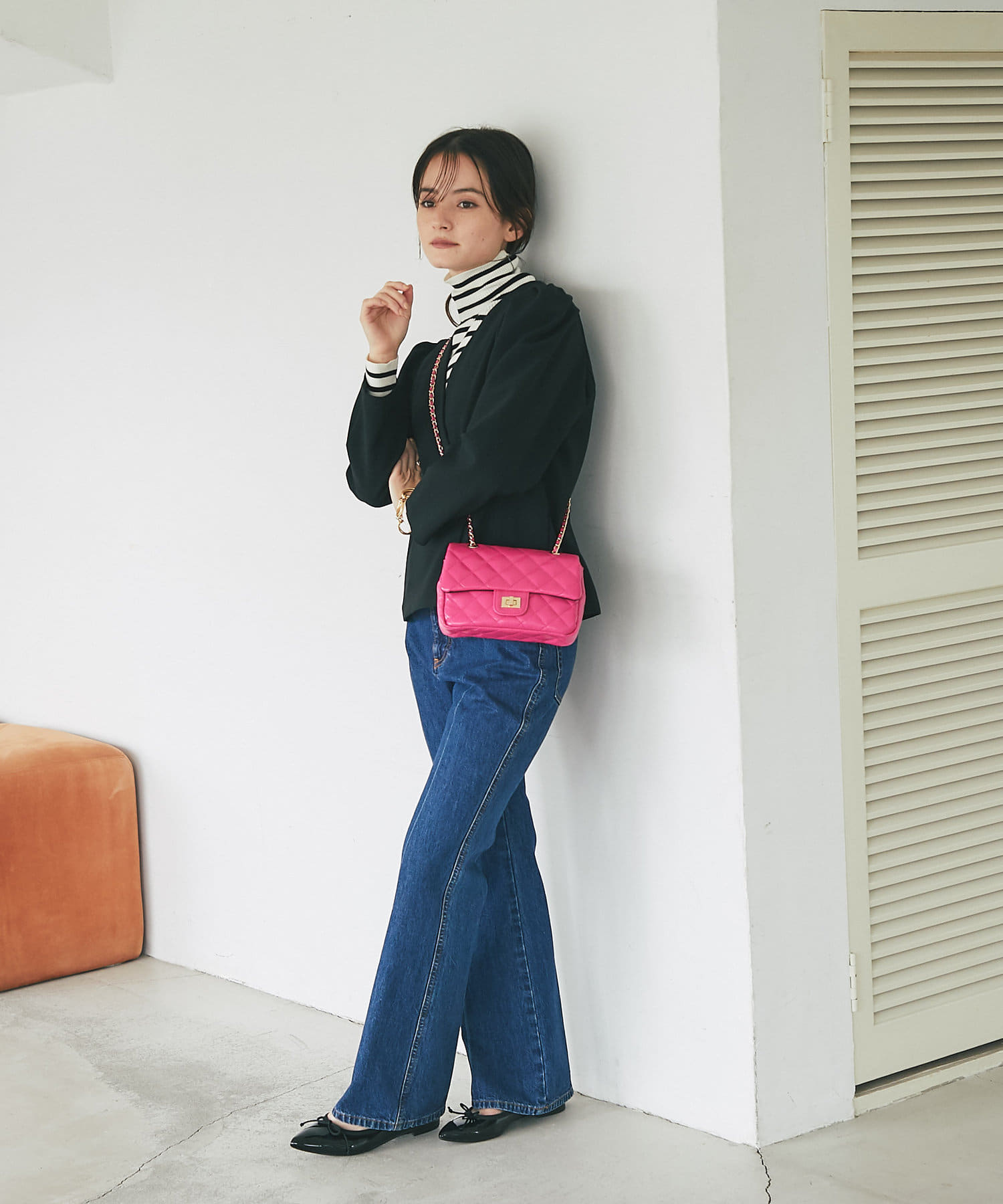 コンパクトなサイズ感なのでボトムはボリュームがあるものにして、対比で華奢見えするシルエットを作ったり、様々な着こなしができます。