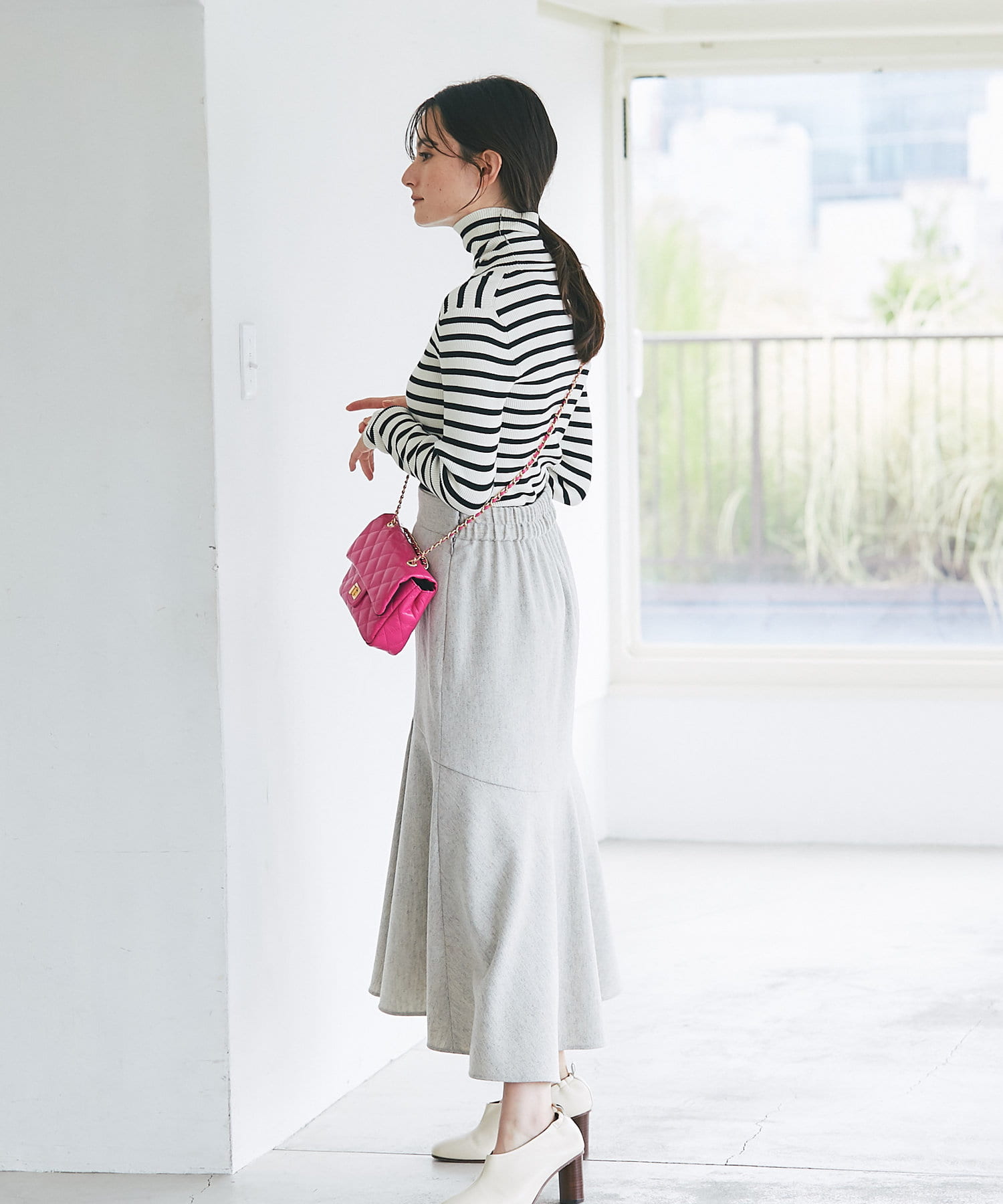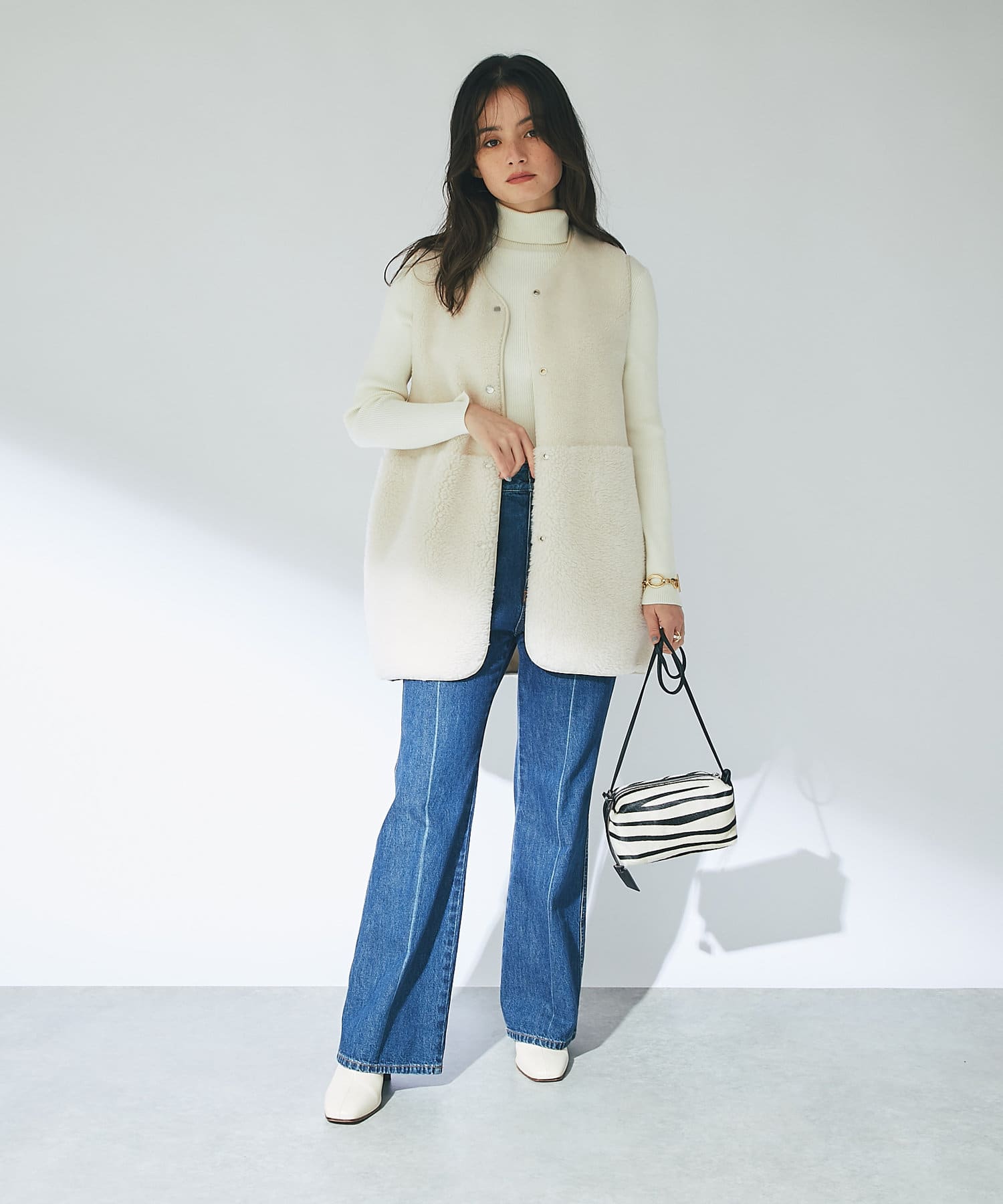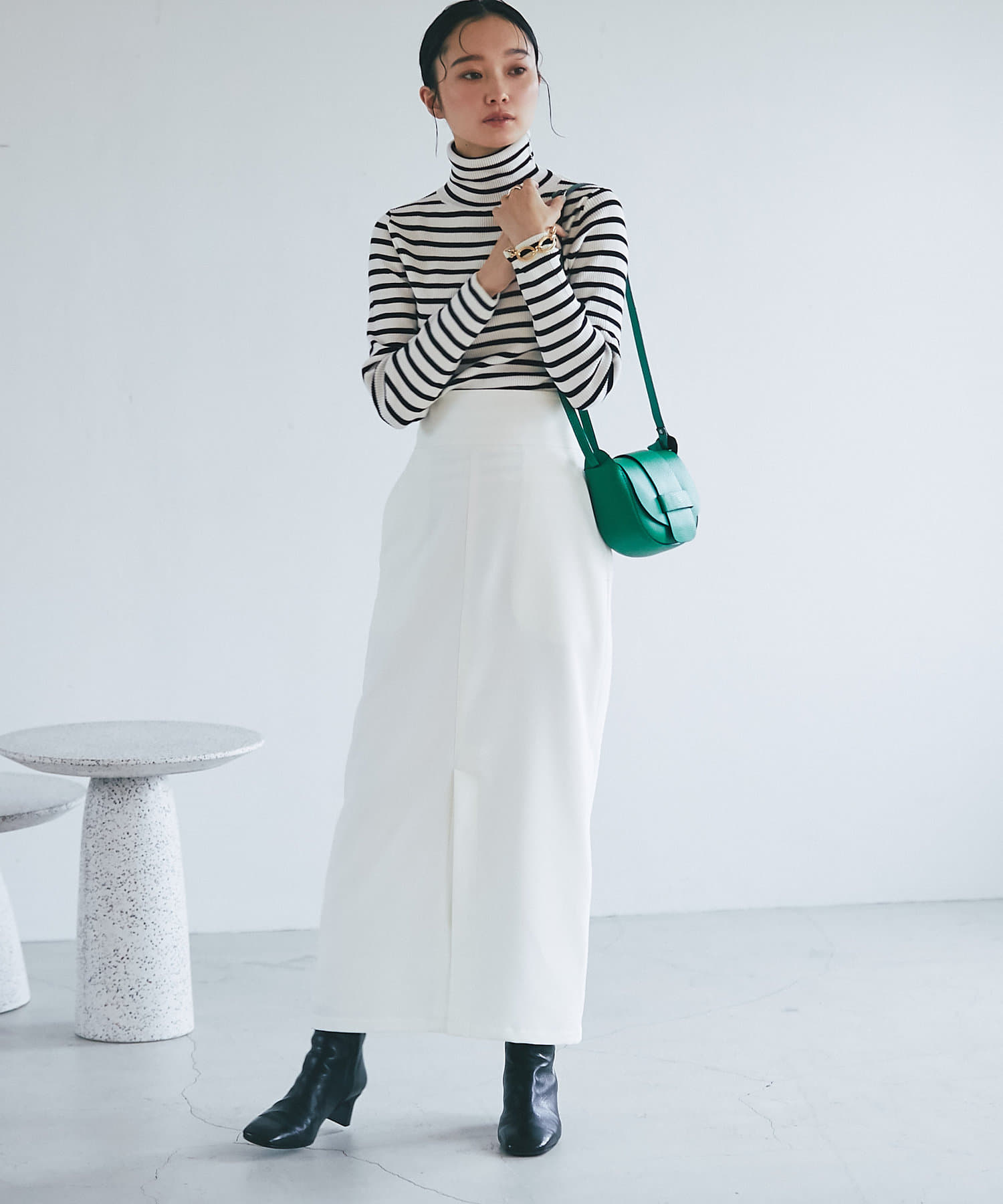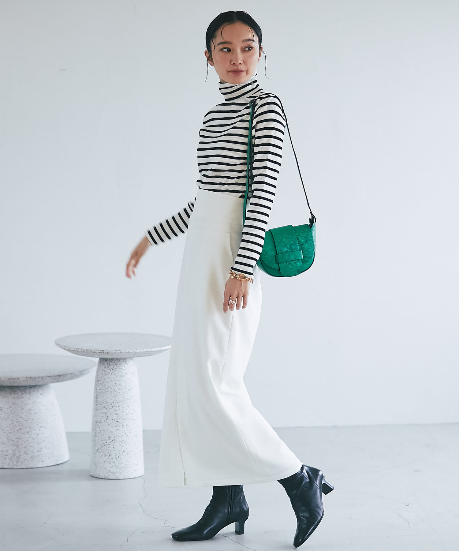 コンパクトなサイズ感なのでボトムはボリュームがあるものにして、対比で華奢見えするシルエットを作ったり、様々な着こなしができます。