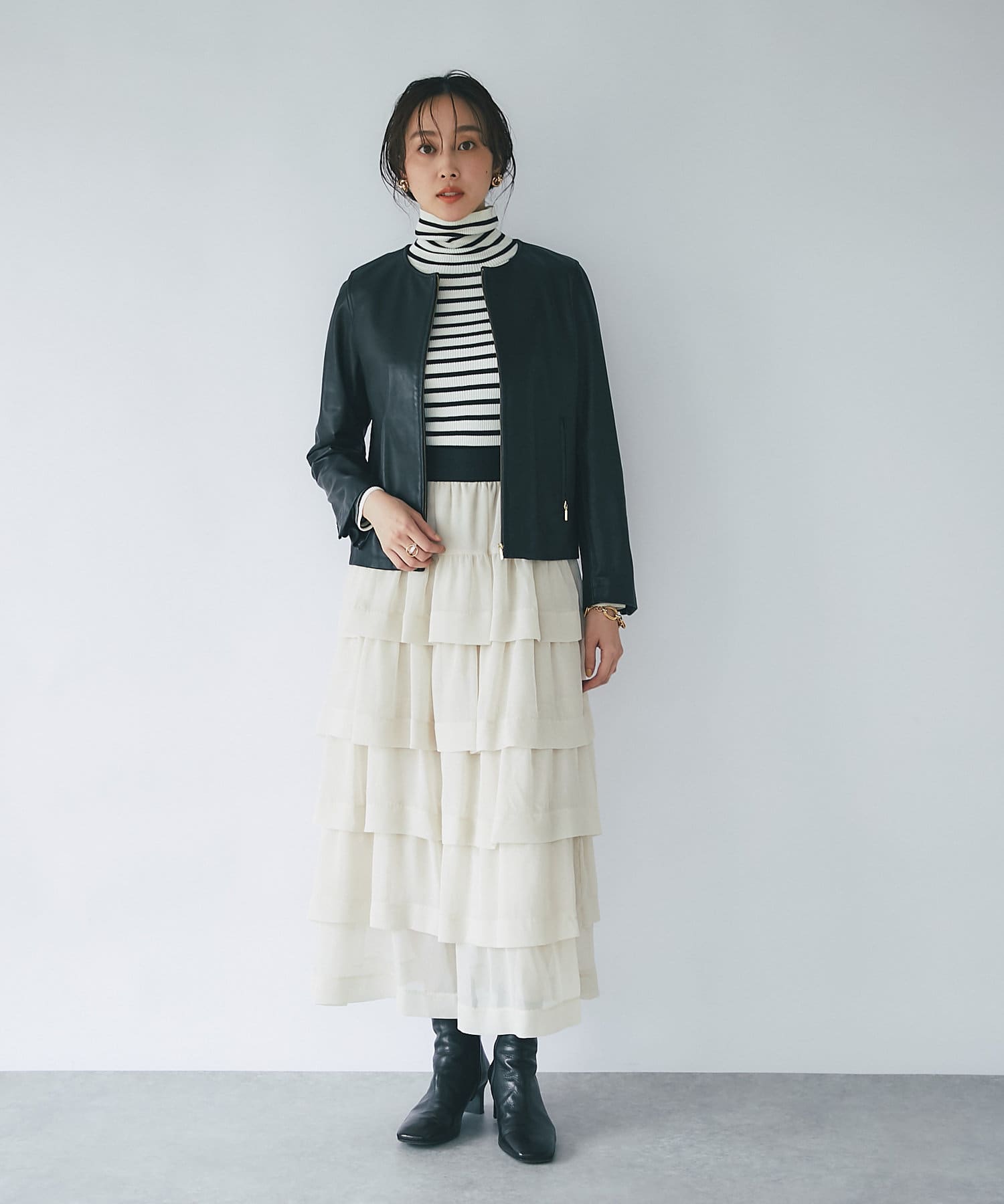 スカートやワンピース、オーバーオールのインナーとしても合わせやすいのでおすすめ。