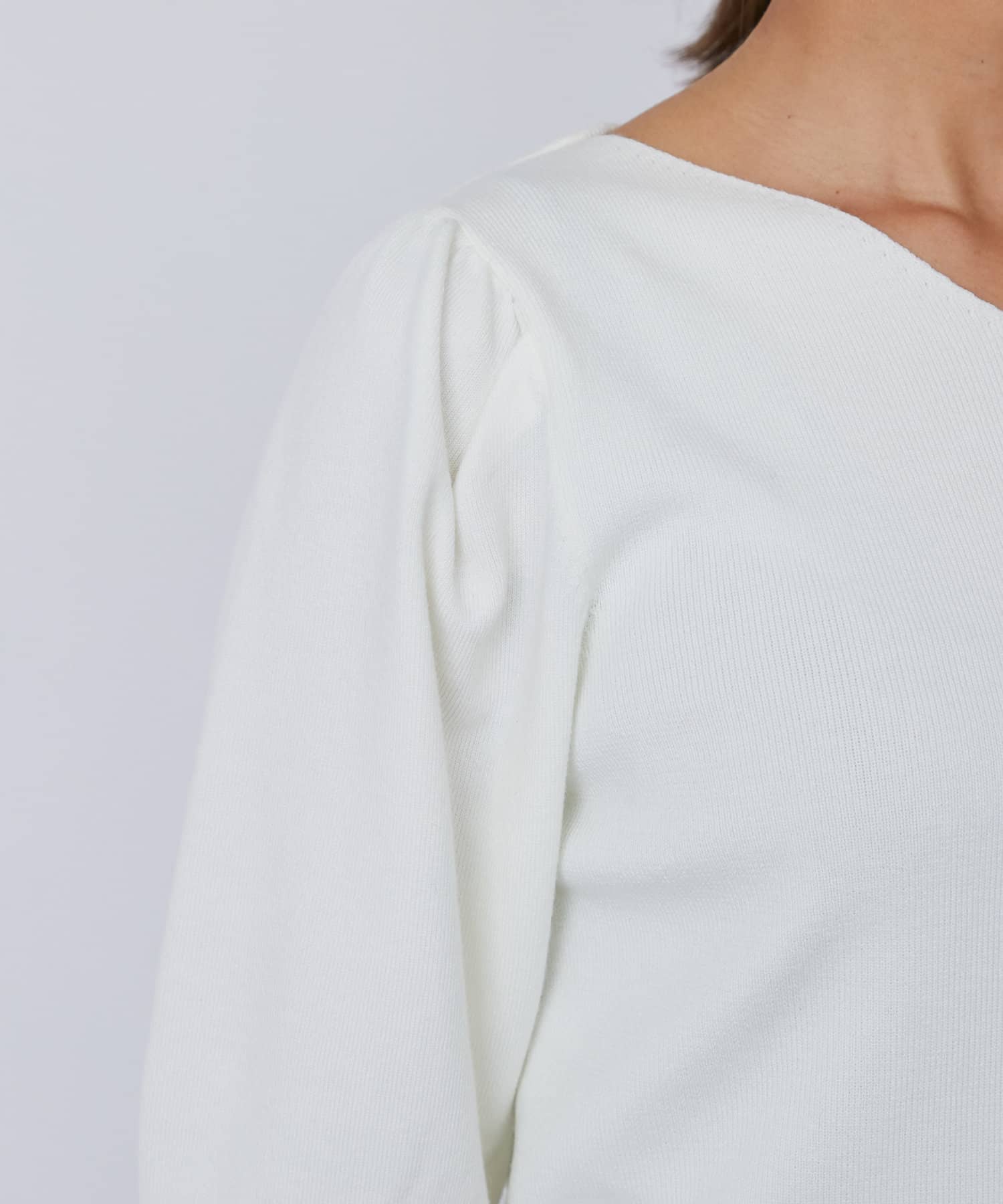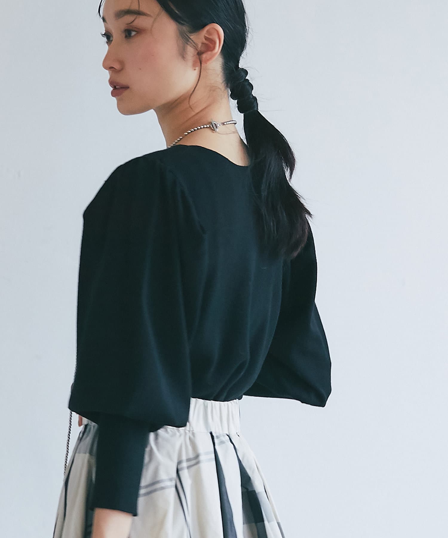 リブ部分が長めなのですっきりと邪魔にならず、ふんわりとしたパワショル部分との対比で華奢見え効果も狙えるデザインになっております。