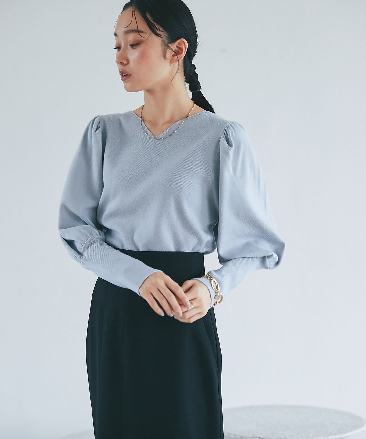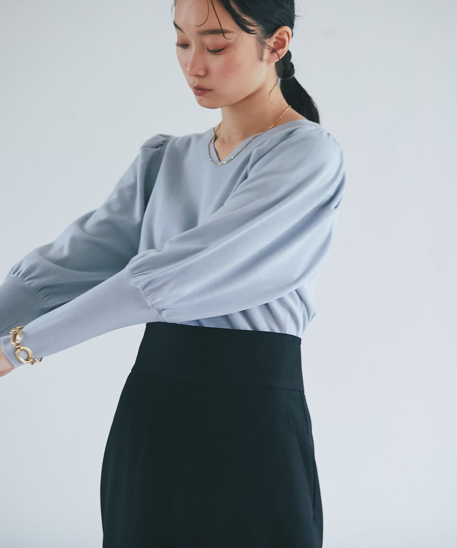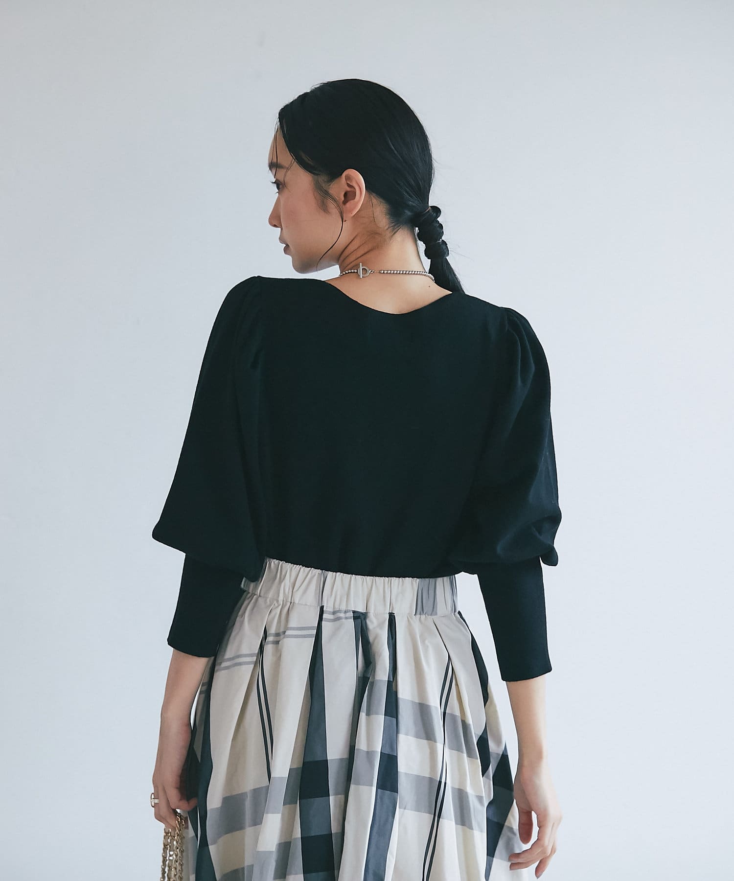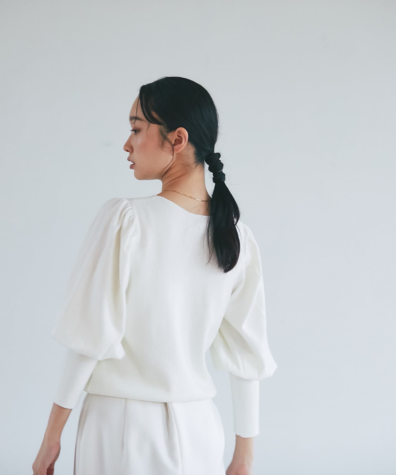 #ボリュームスリーブ #トレンド #袖コンシャス #ベーシックカラー #デザインニット #上品カジュアル #上品 #デコルテ