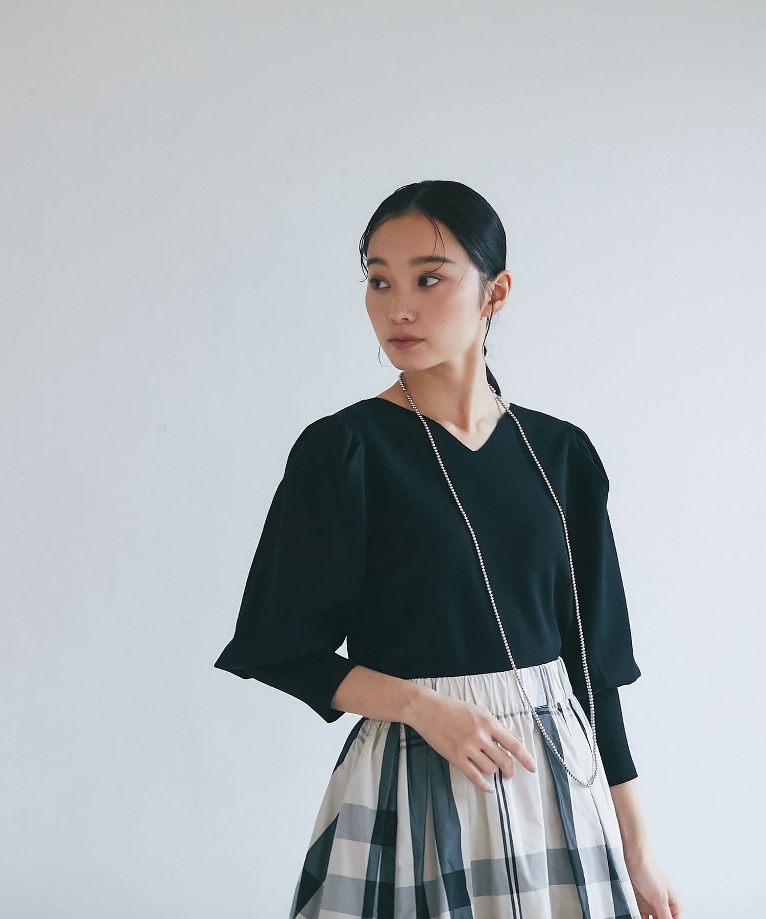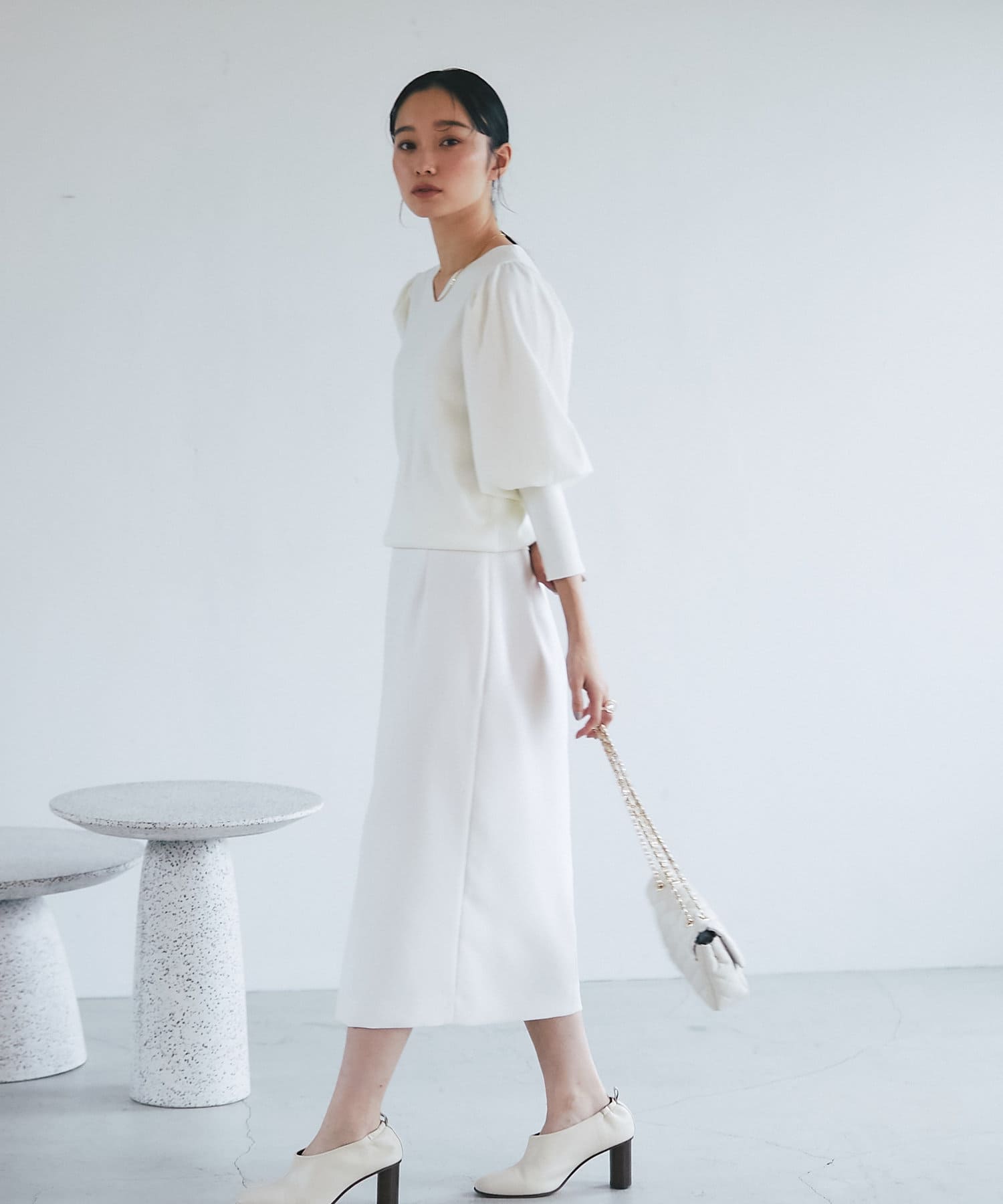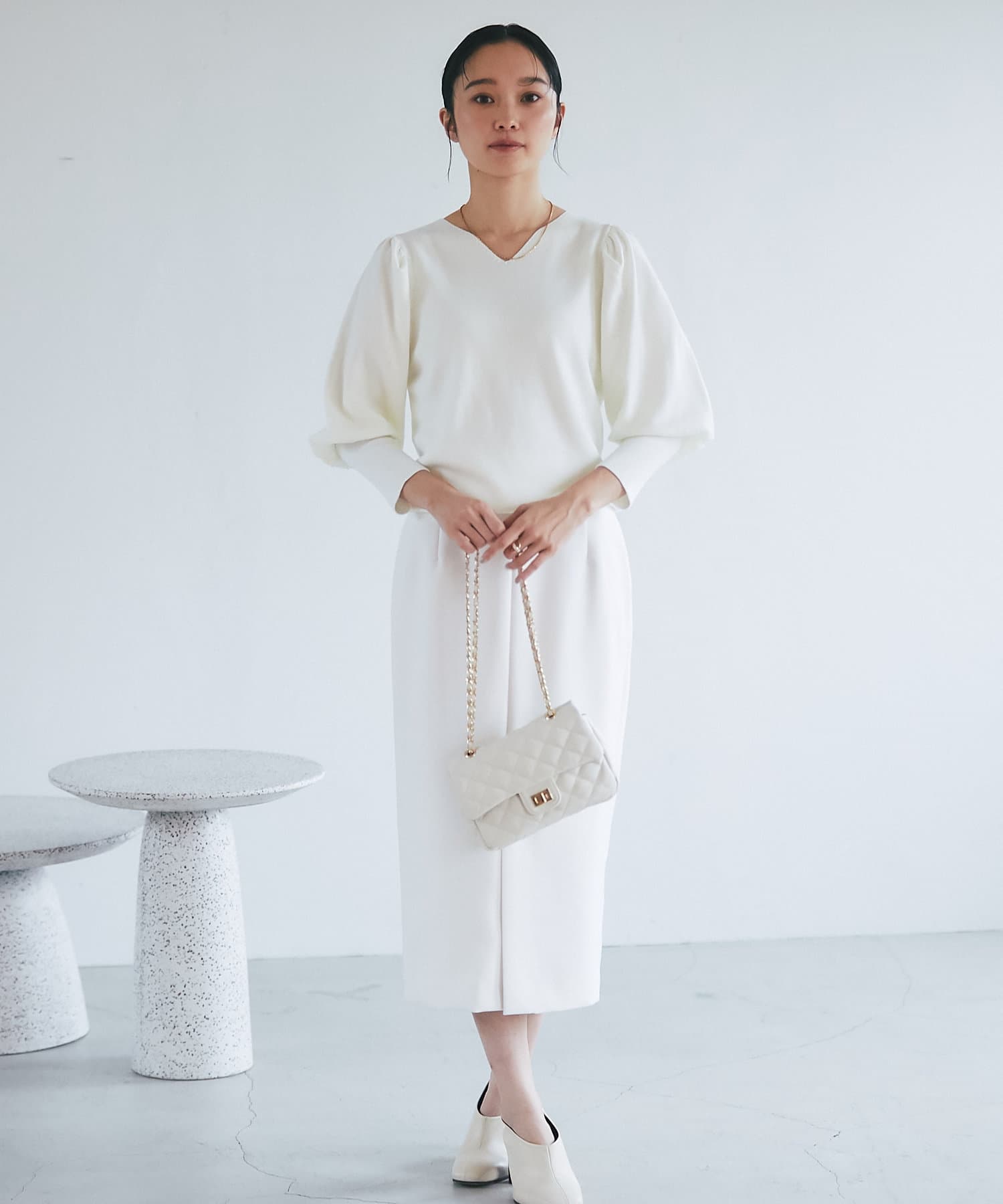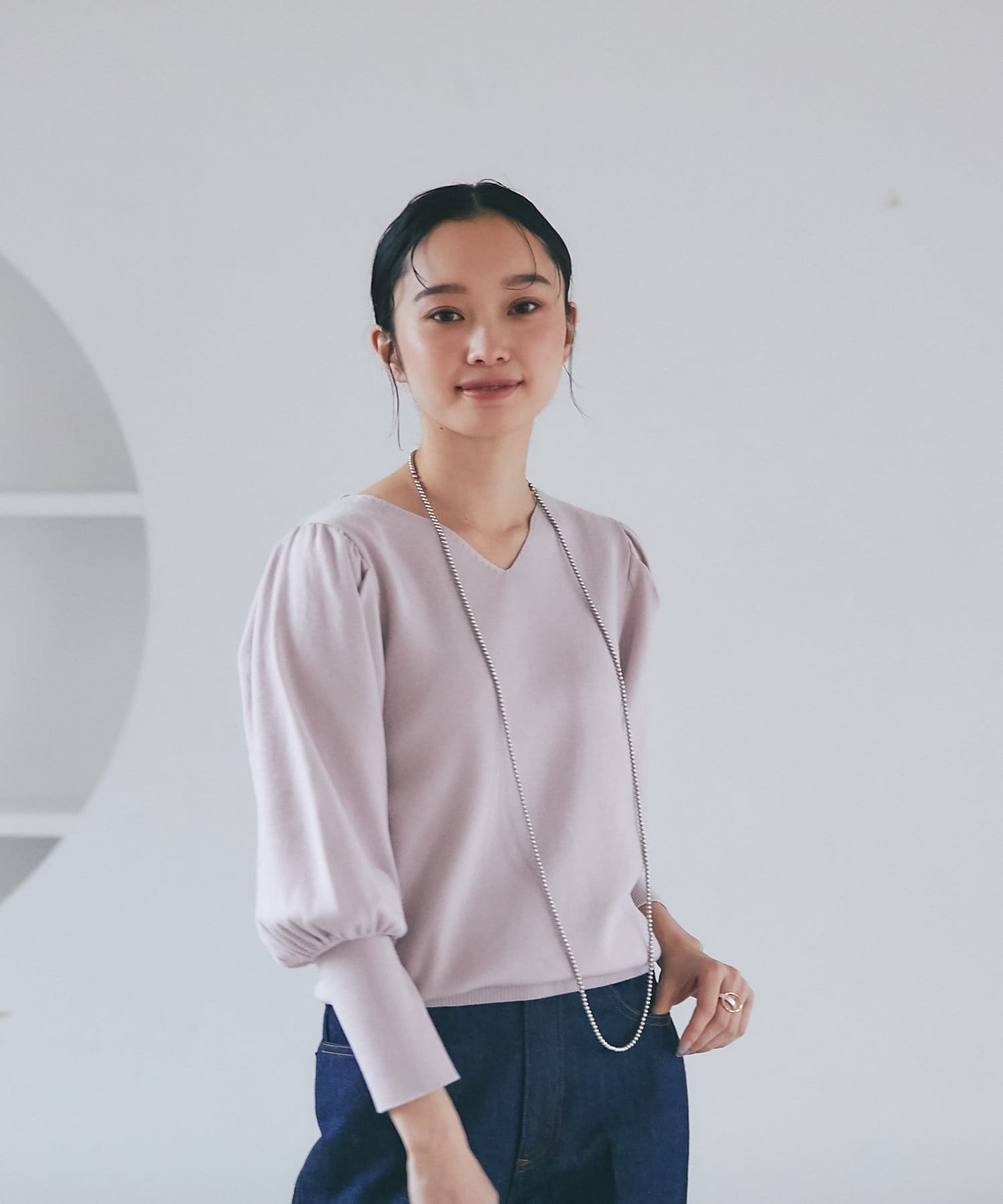 #ボリュームスリーブ #トレンド #袖コンシャス #ベーシックカラー #デザインニット #上品カジュアル #上品 #デコルテ
