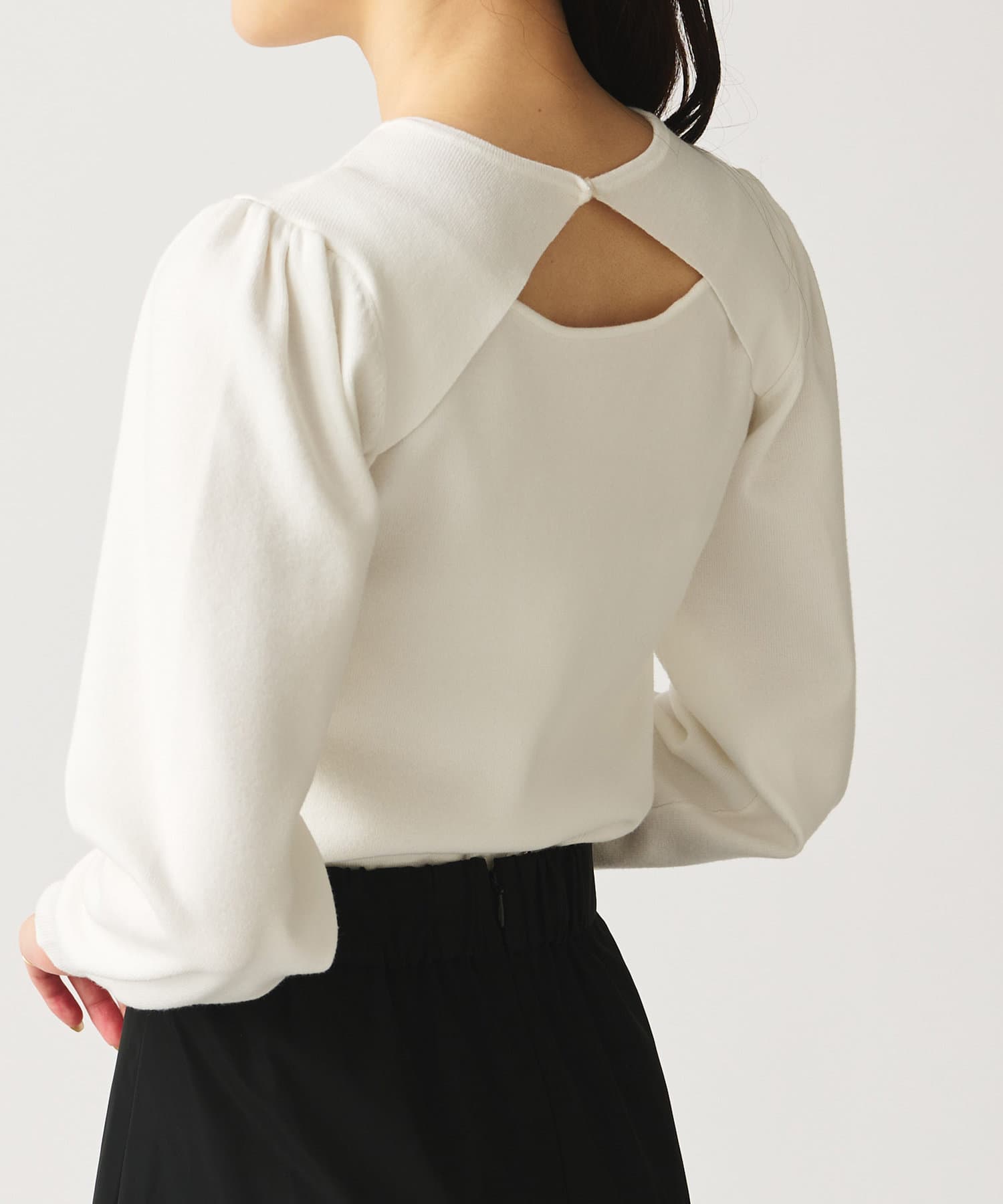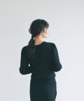 また、前後2WAYでフロントオープンのニットとしても、クルーネックニットとしても着て頂けるので、気分に合わせて雰囲気を変えられるのも特徴です。