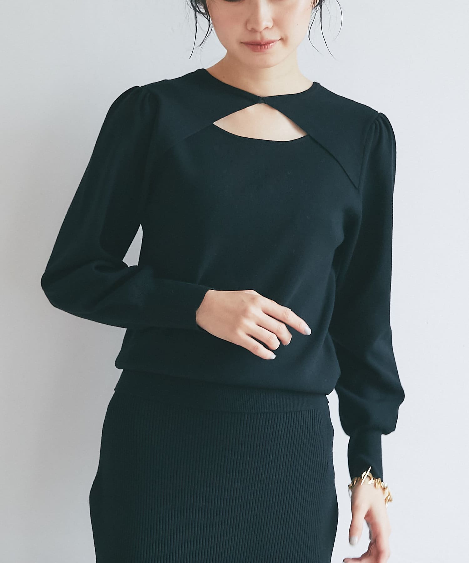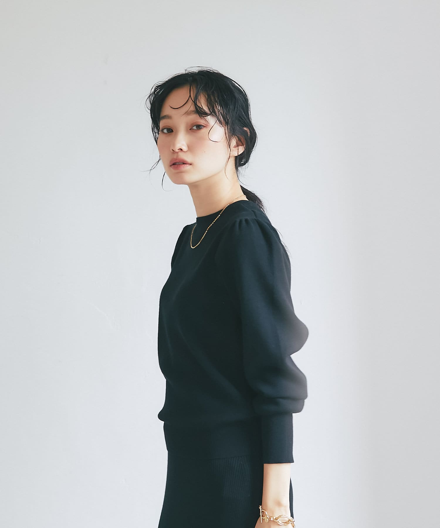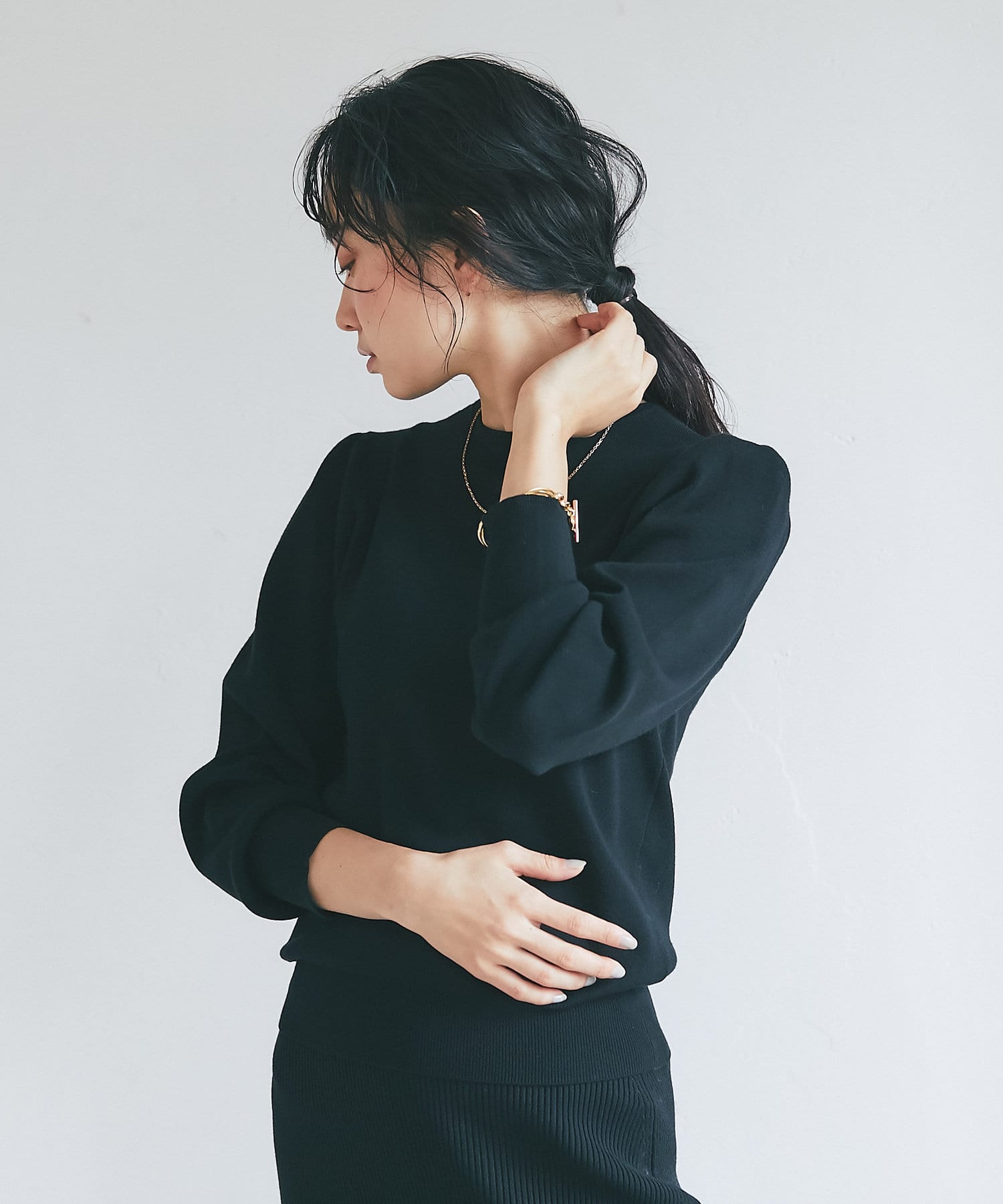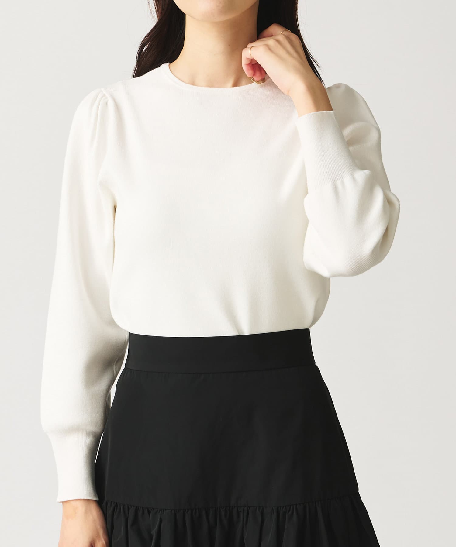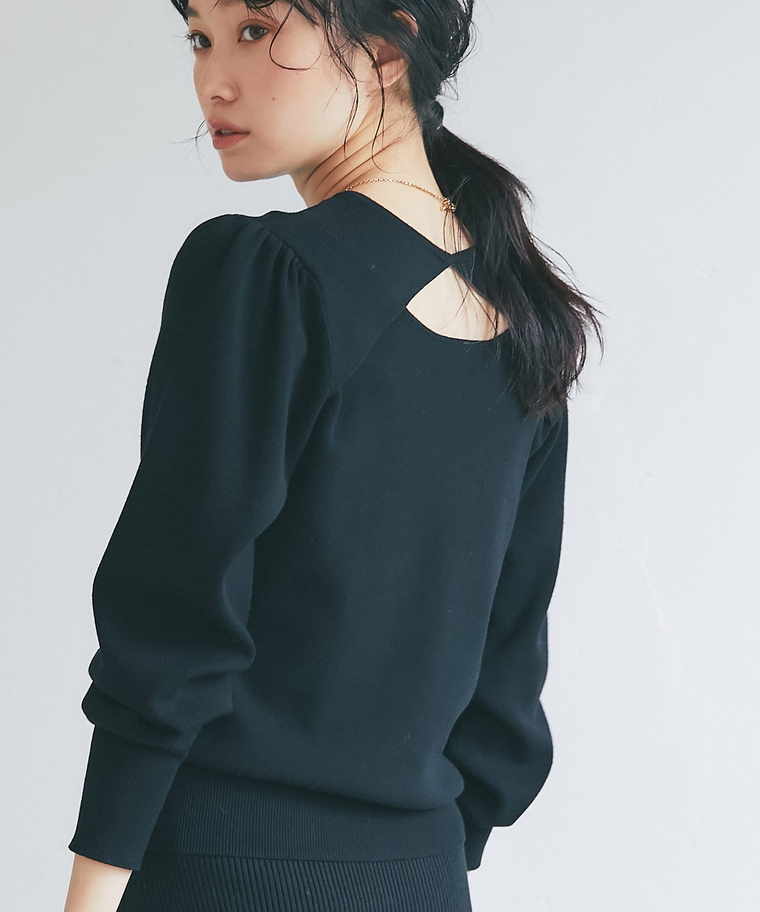 • クルーネックニットとしても着られるのが嬉しい。