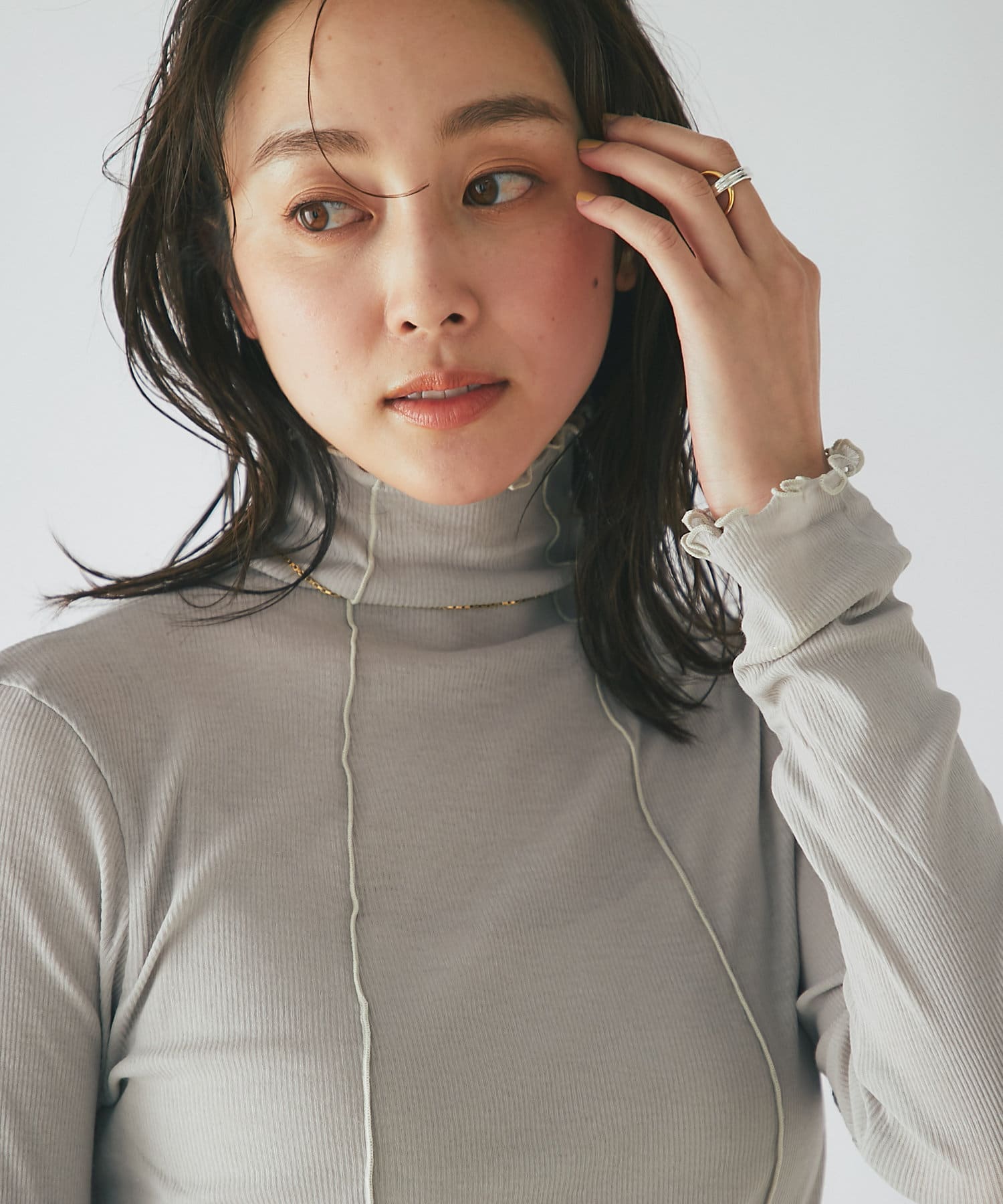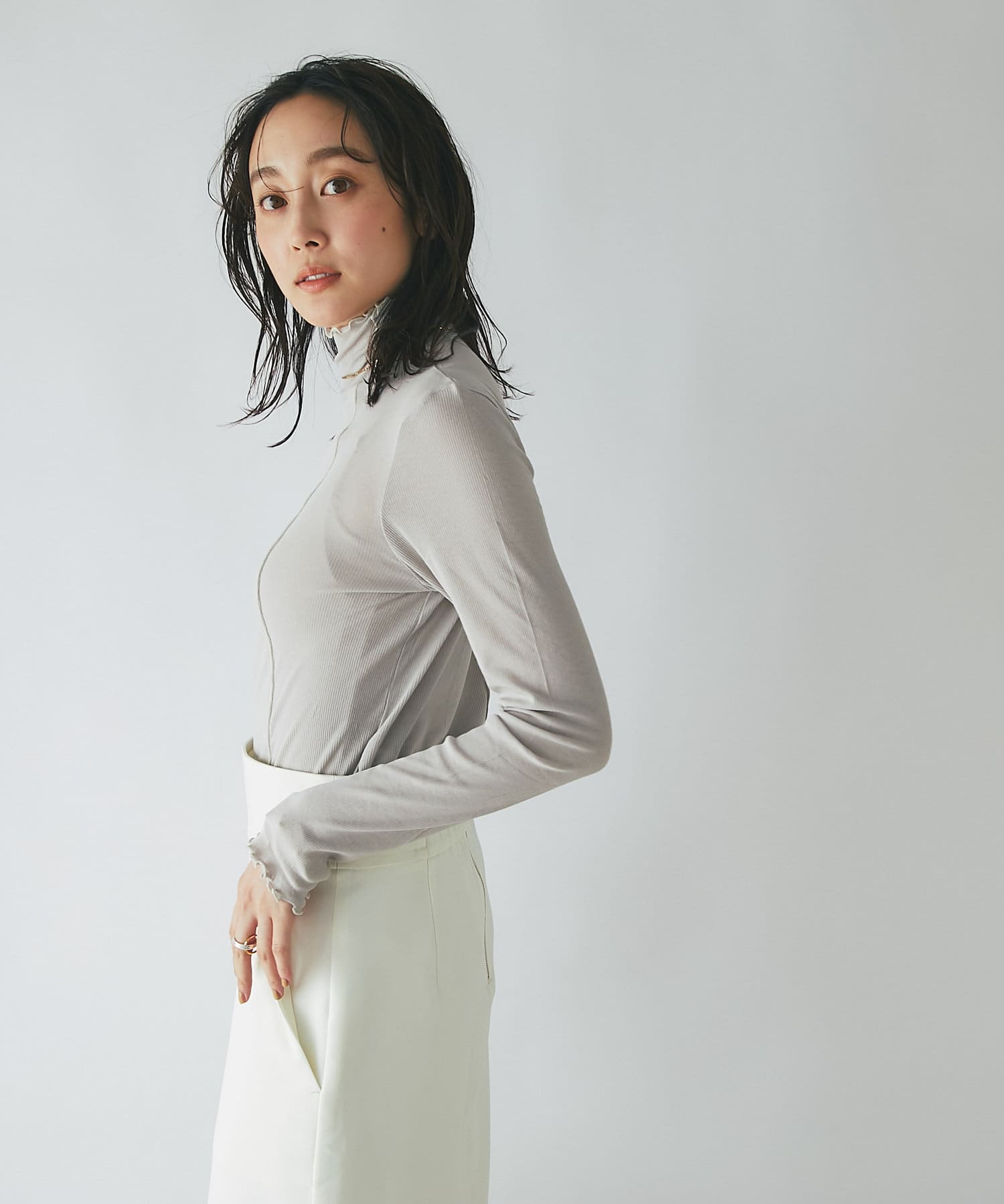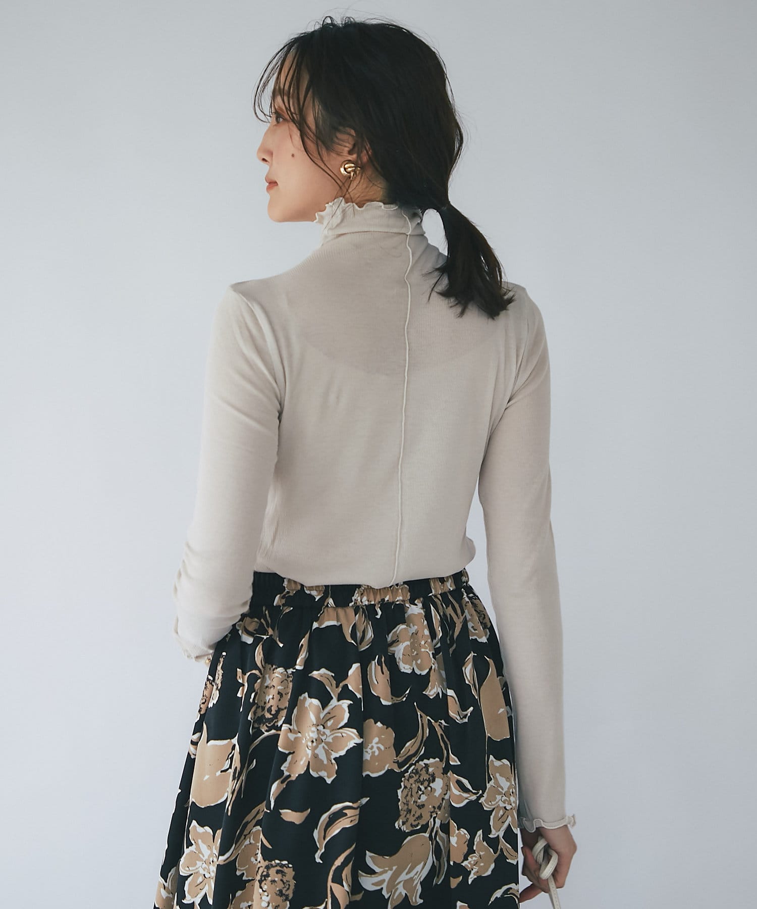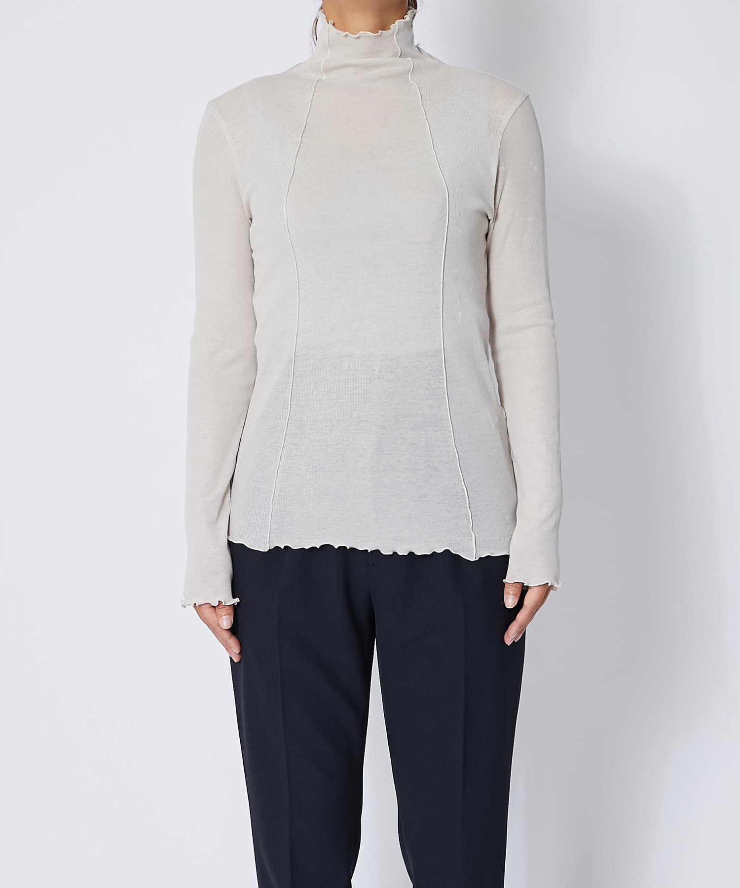 トレンドライクなシアー感が楽しめる、タートルネックのカットソー。