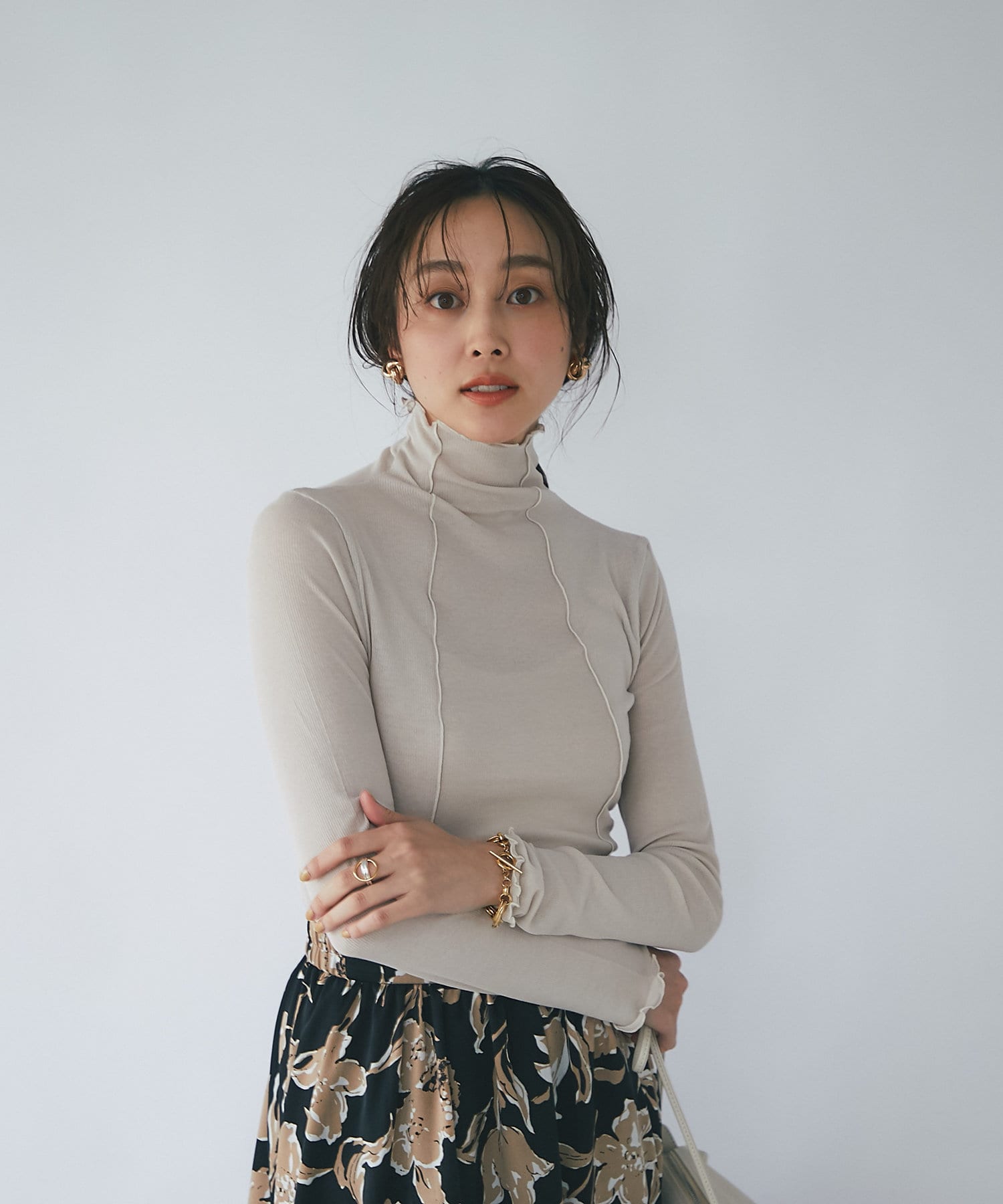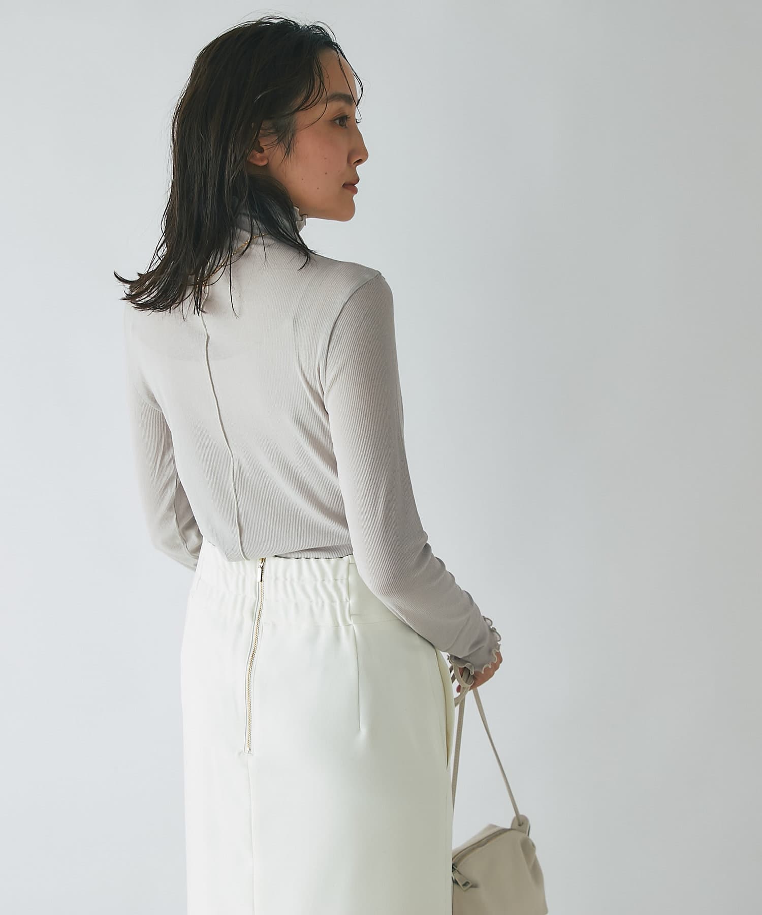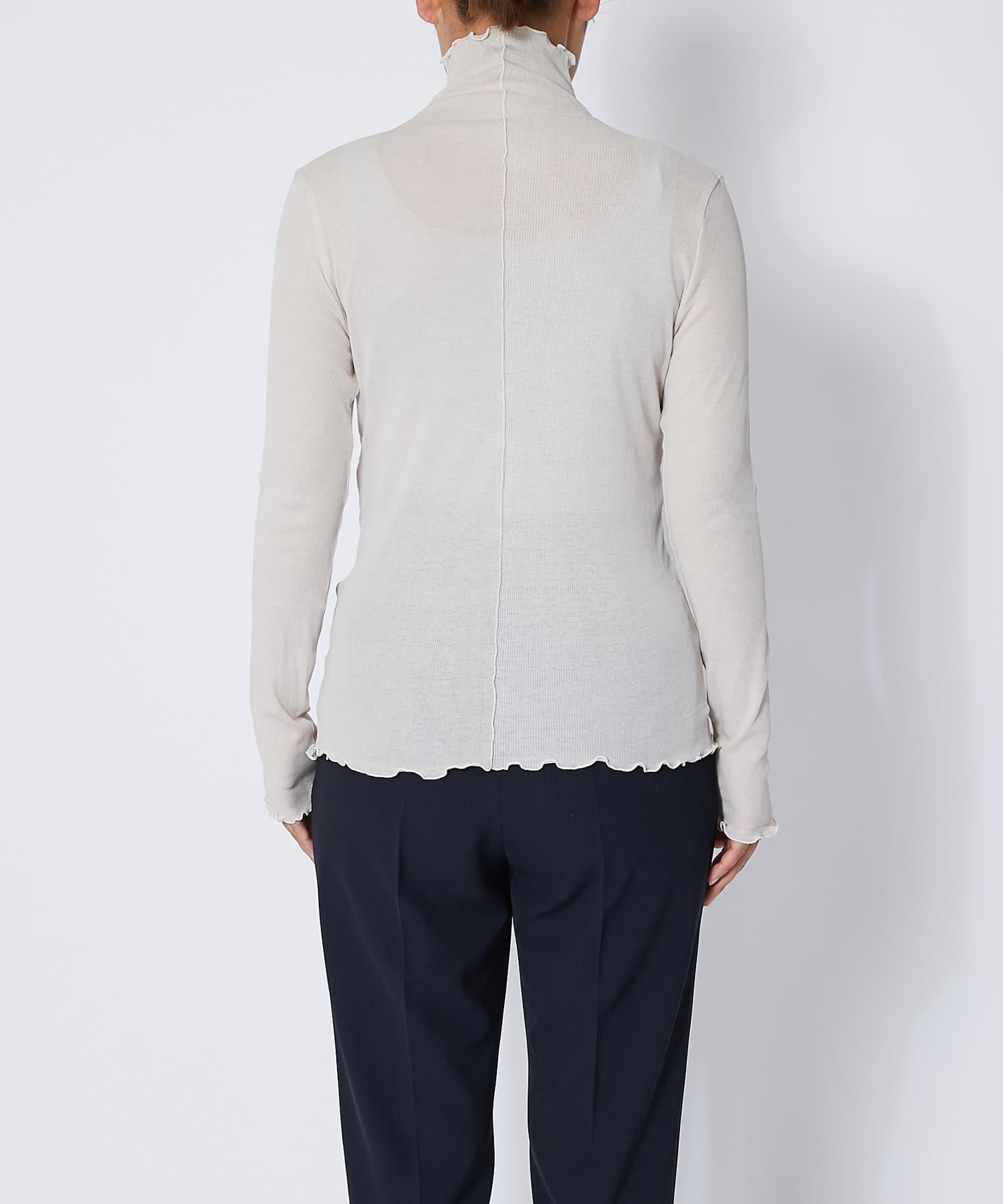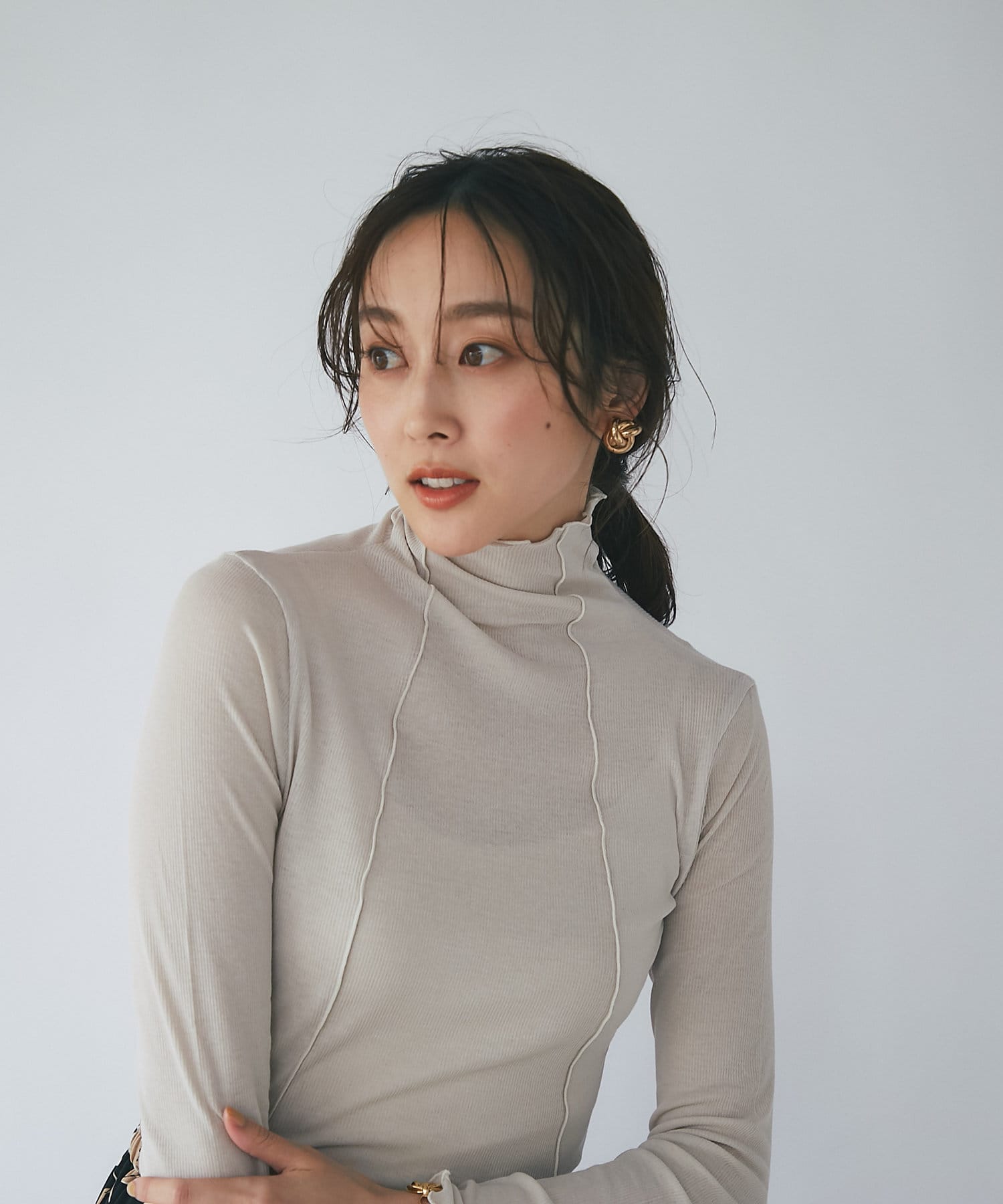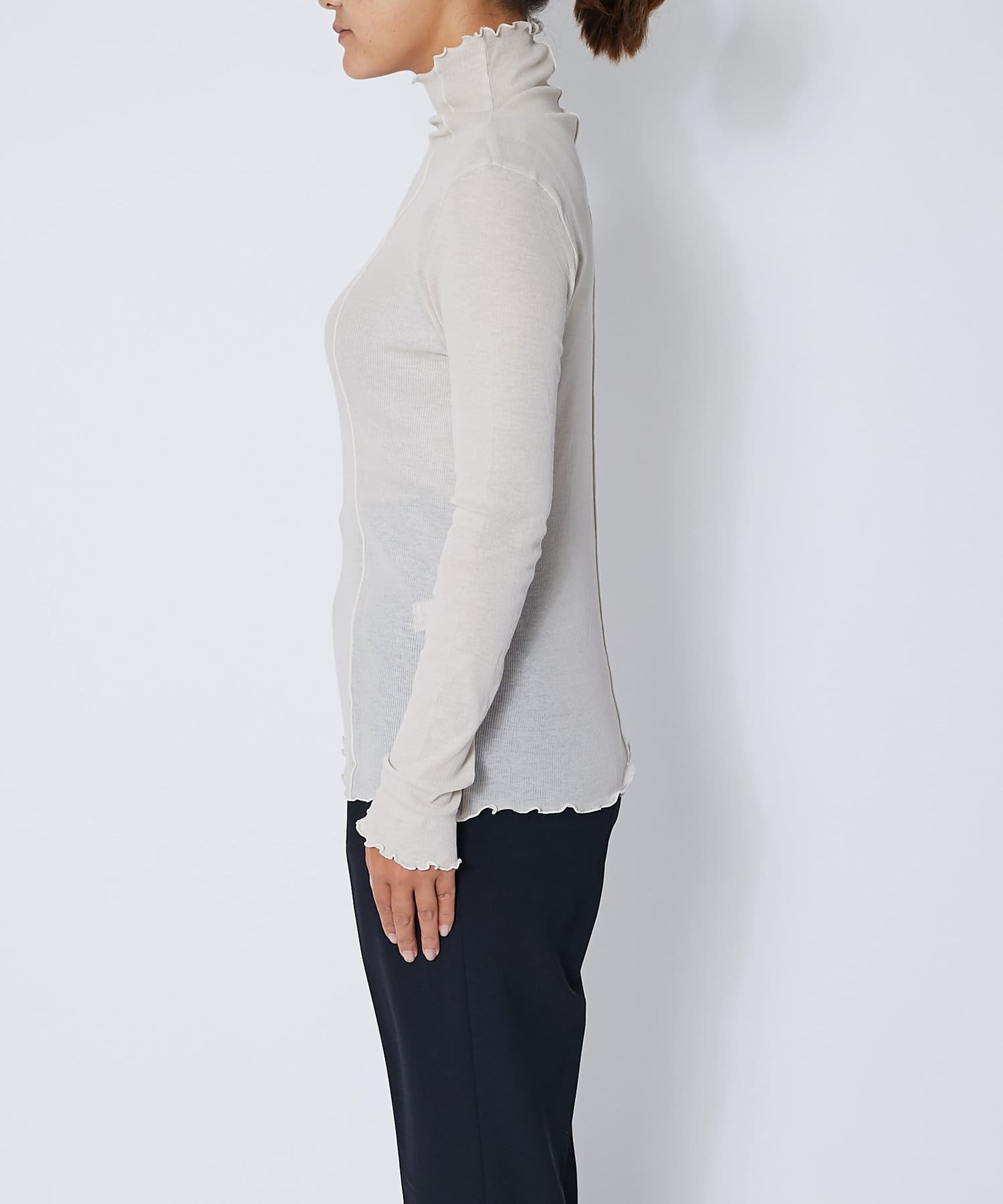 トレンドライクなシアー感が楽しめる、タートルネックのカットソー。