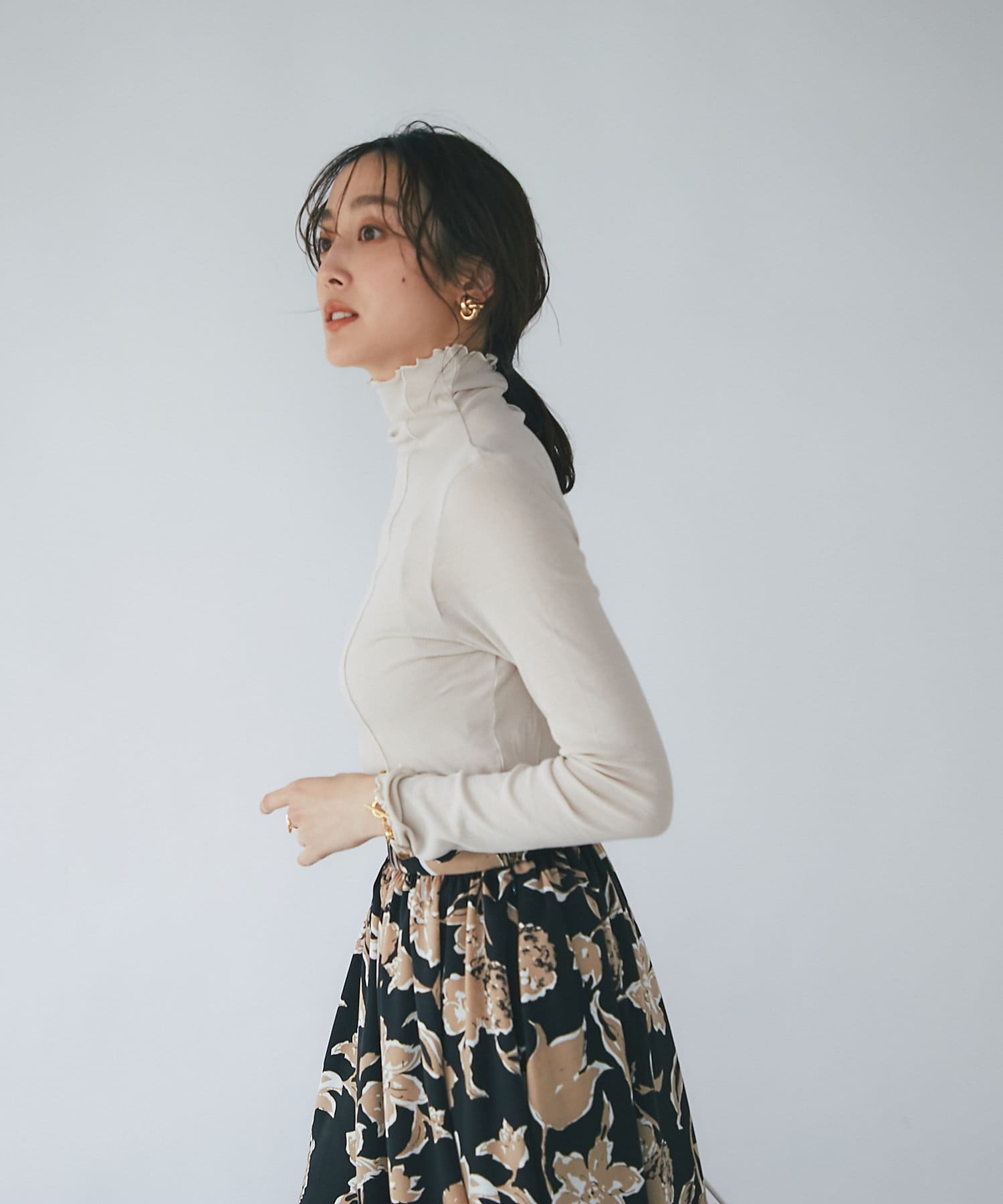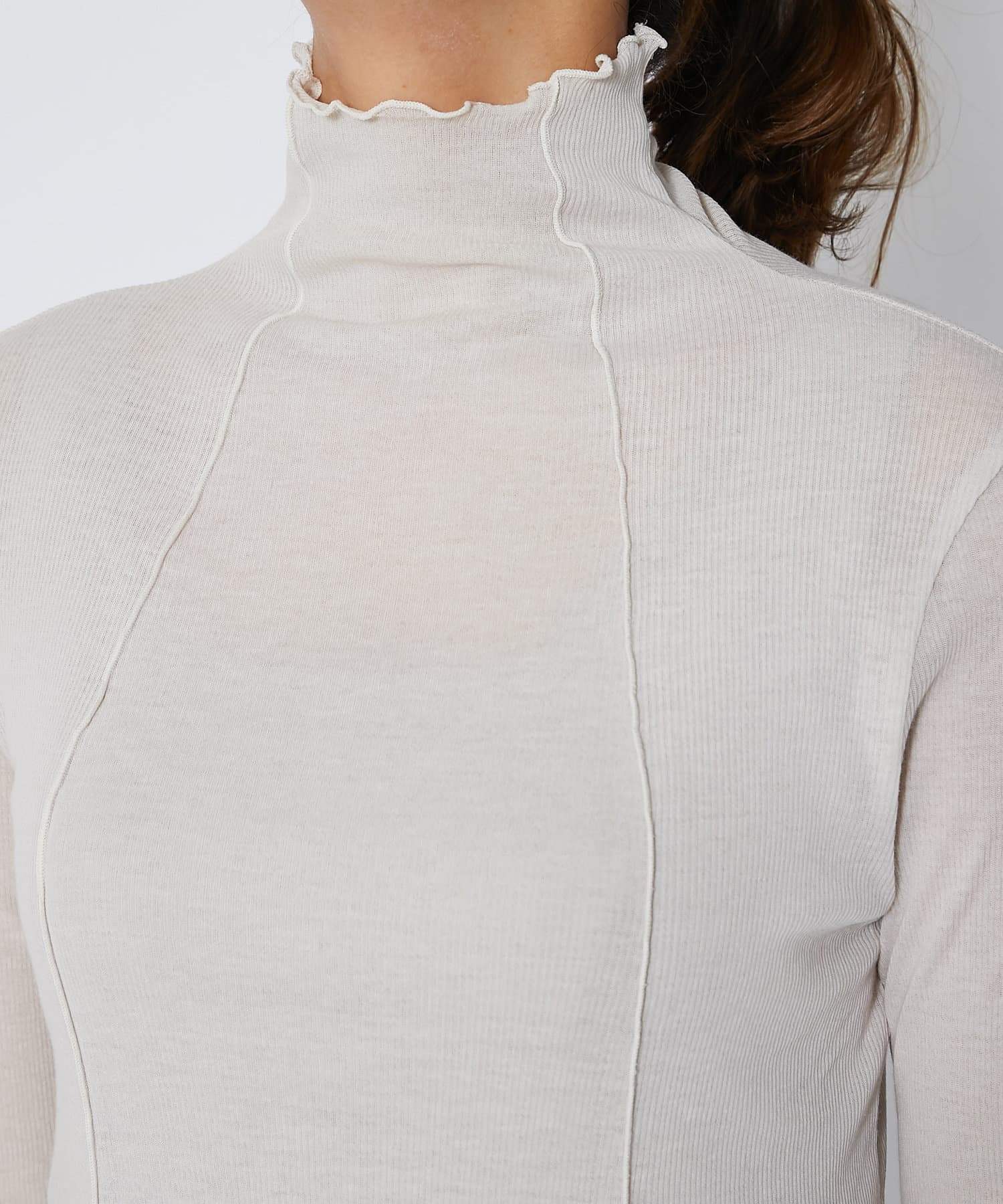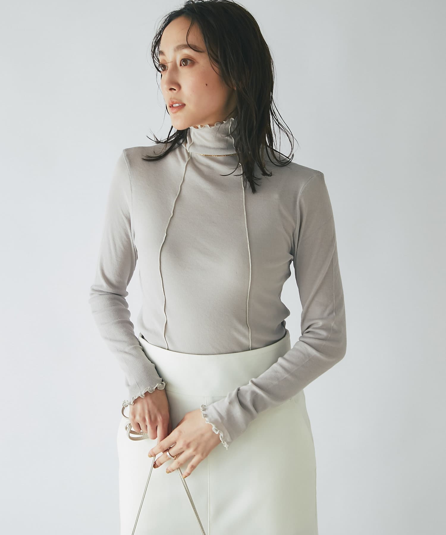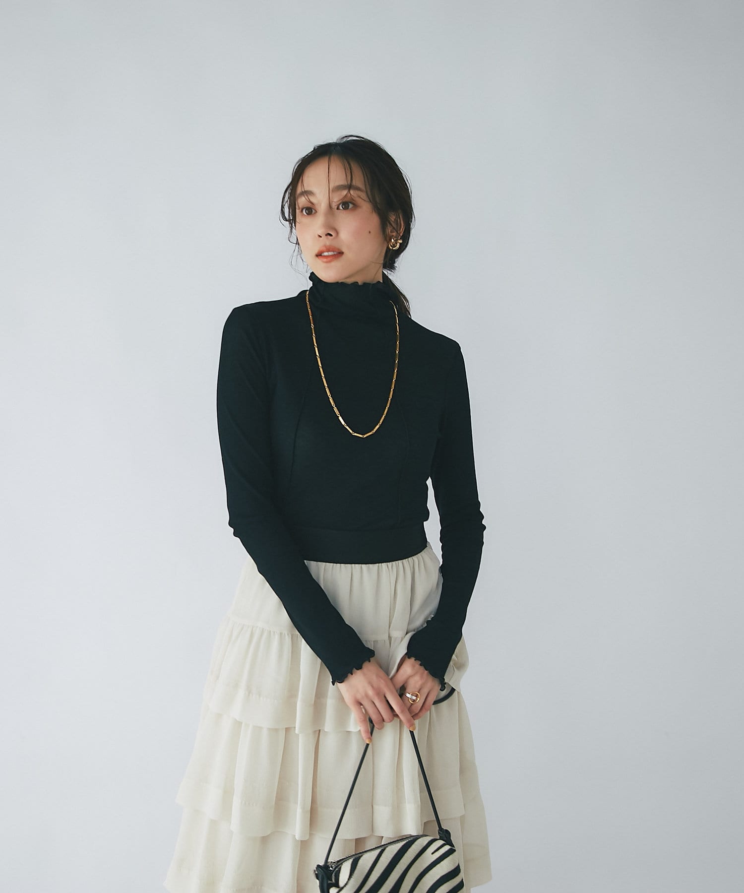 トレンドライクなシアー感が楽しめる、タートルネックのカットソー。