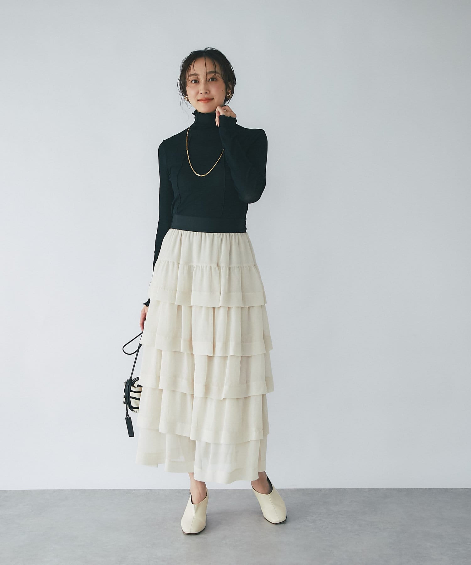 #大人カジュアル #きれいめカジュアル #上品カジュアル #ボトルネックカットソー #シアーカットソー #シアー感 #透け感 #長袖 #レイヤード #着回し #重ね着 #シーズンレス