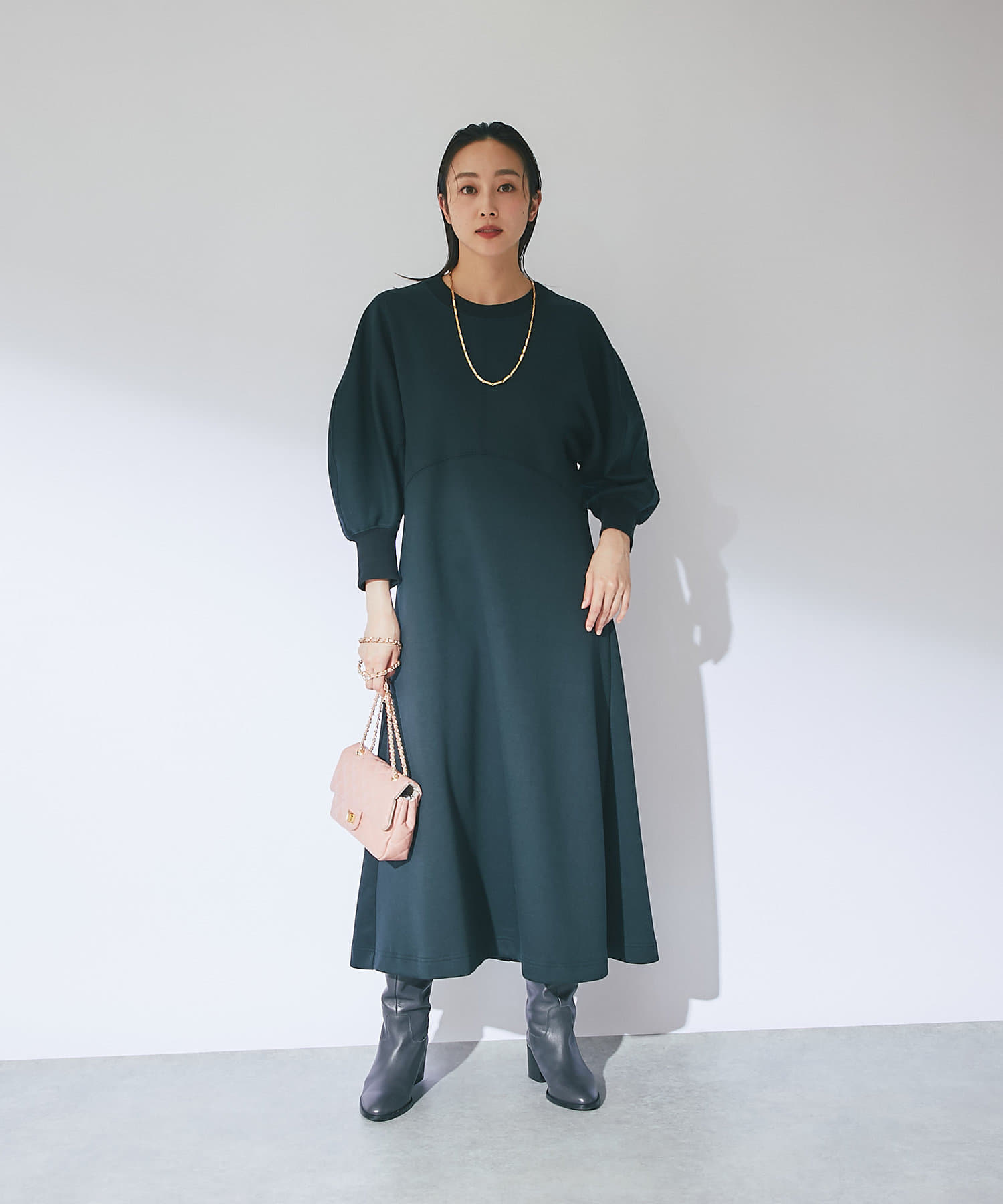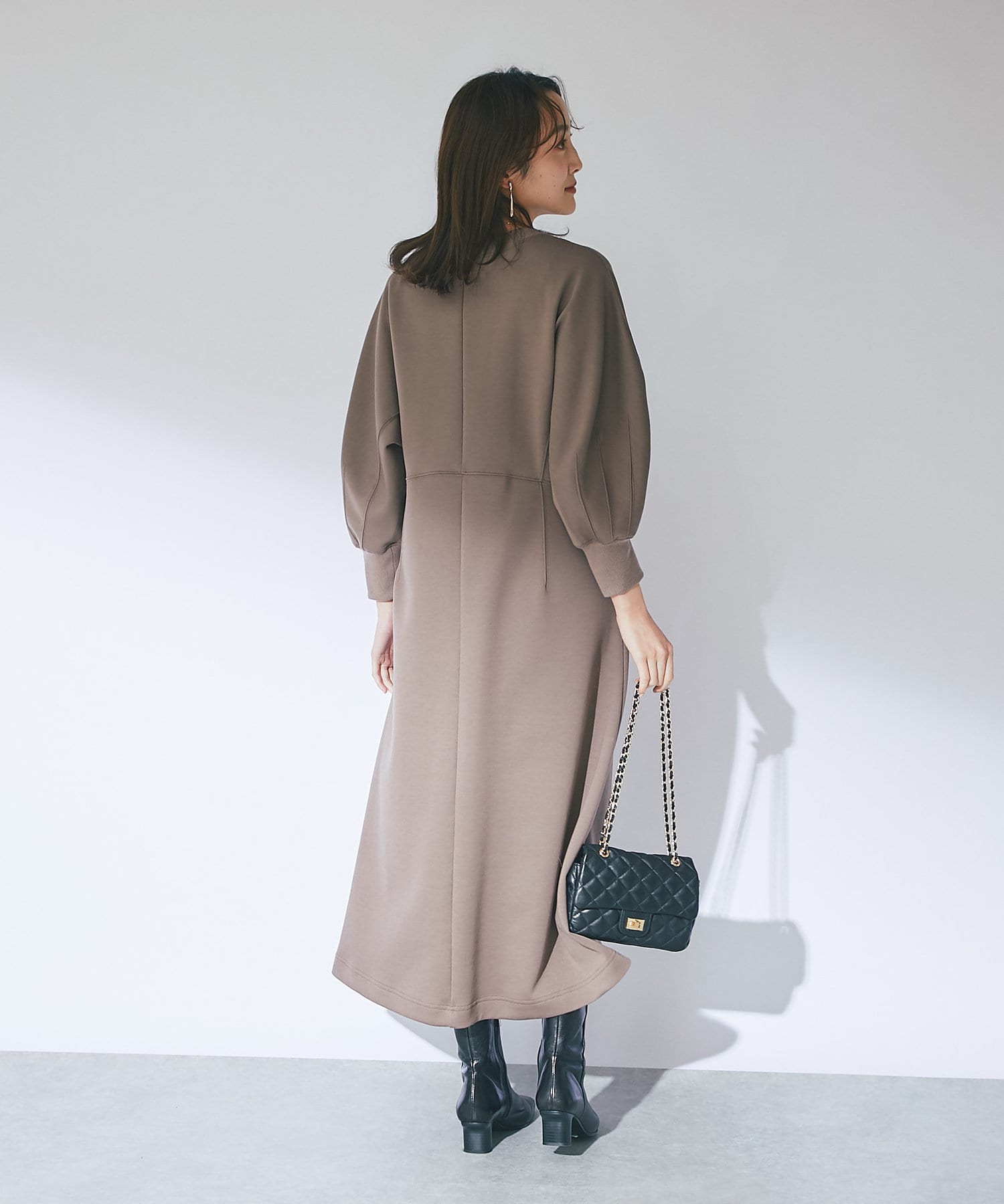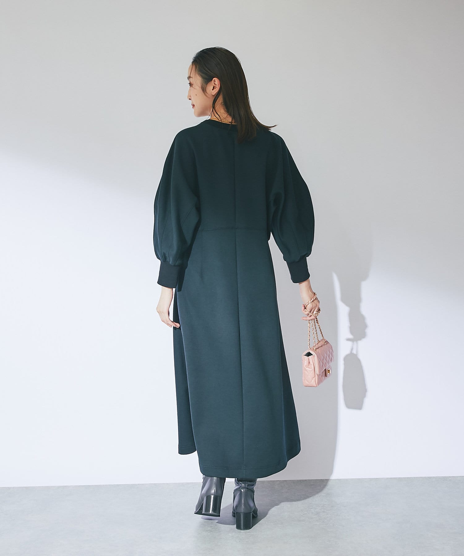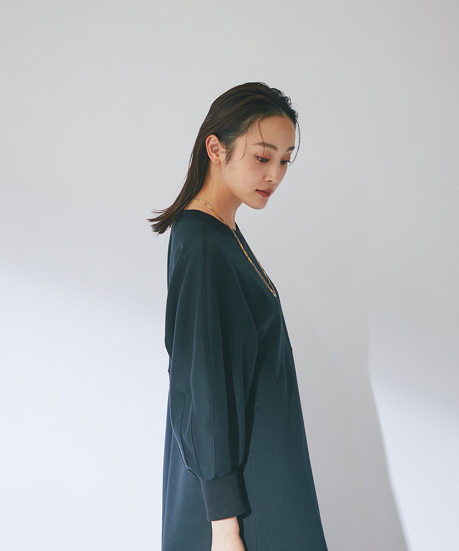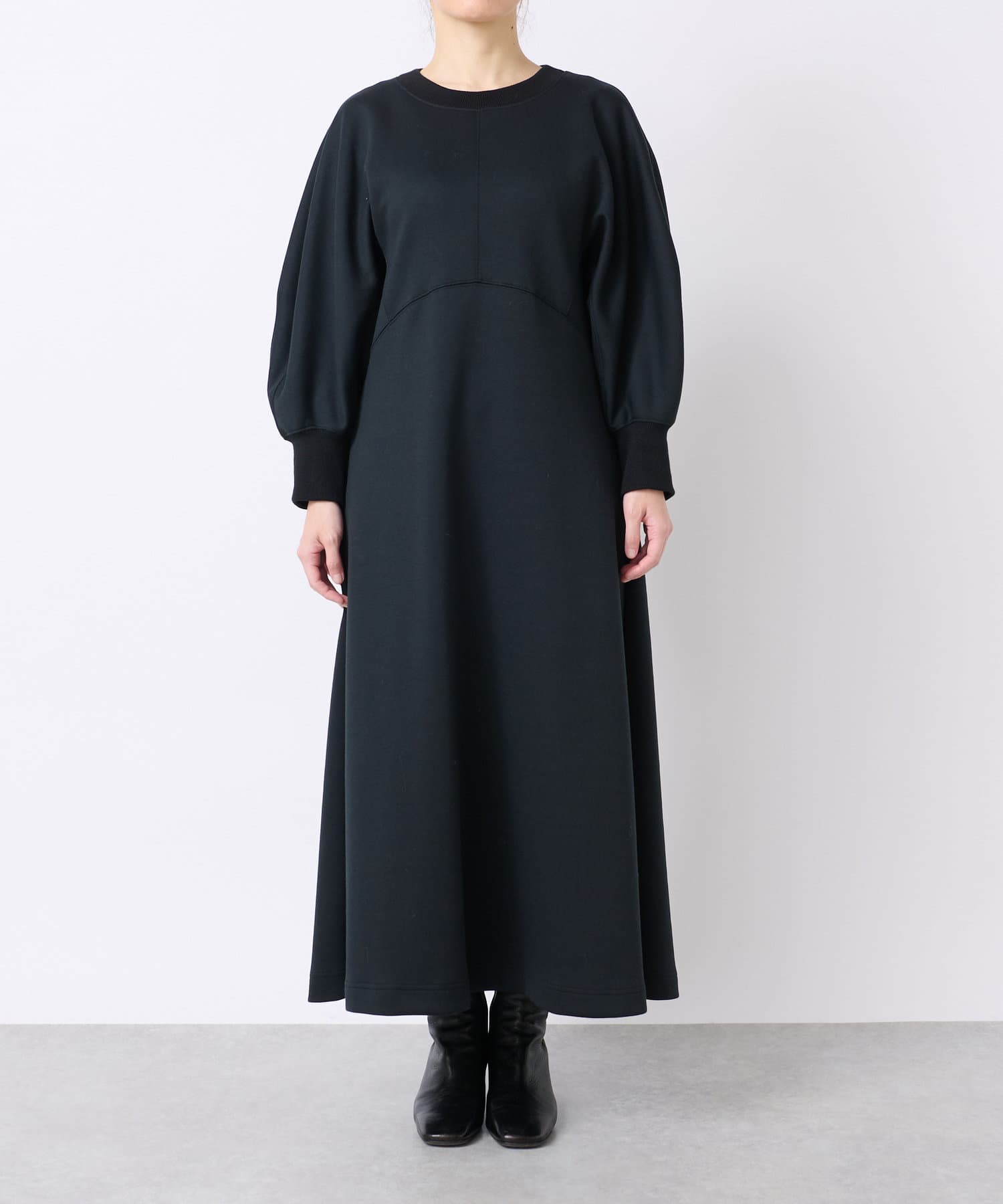 【品よい大人なスタイリング】ボリュームスリーブドルマンワンピース