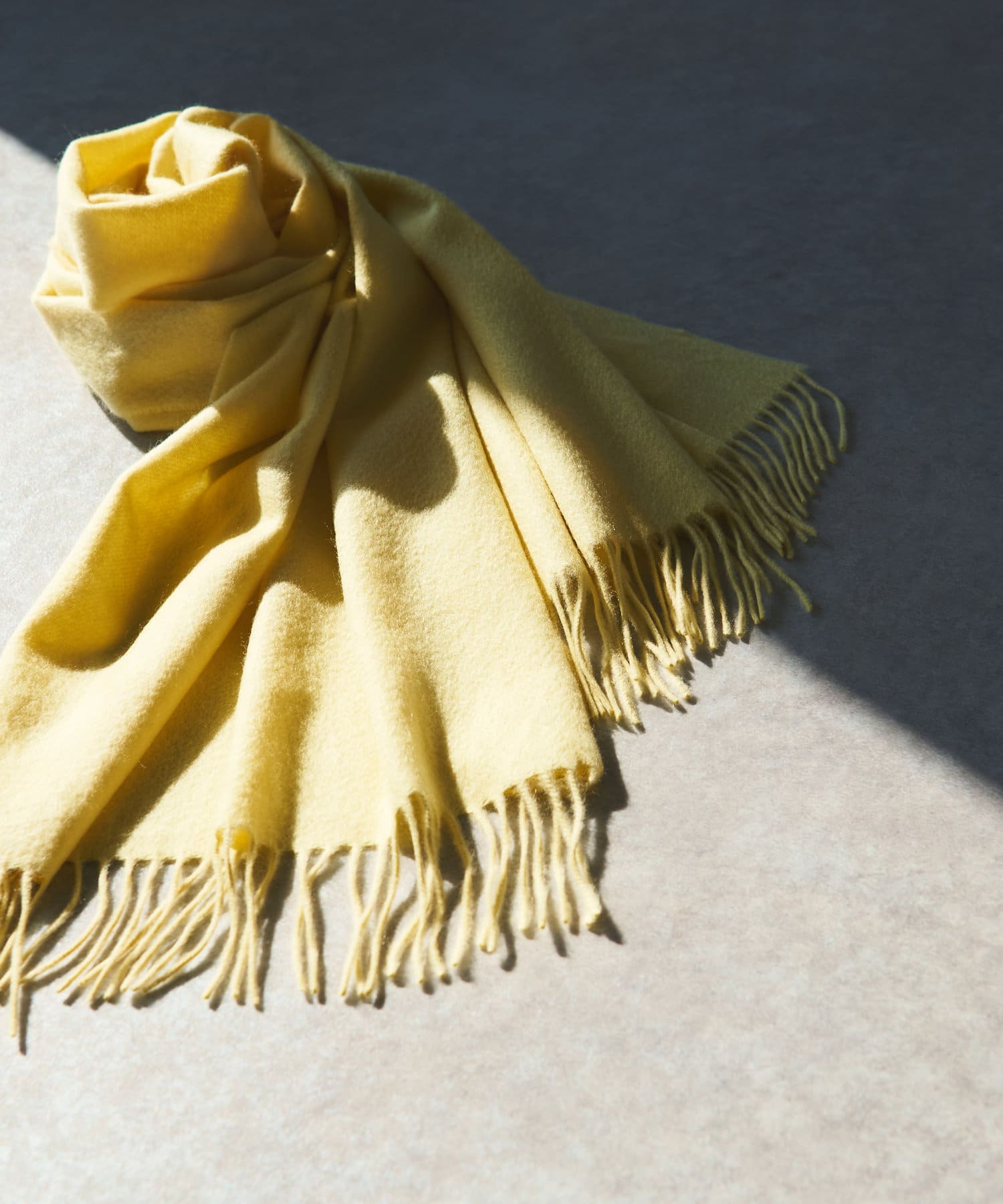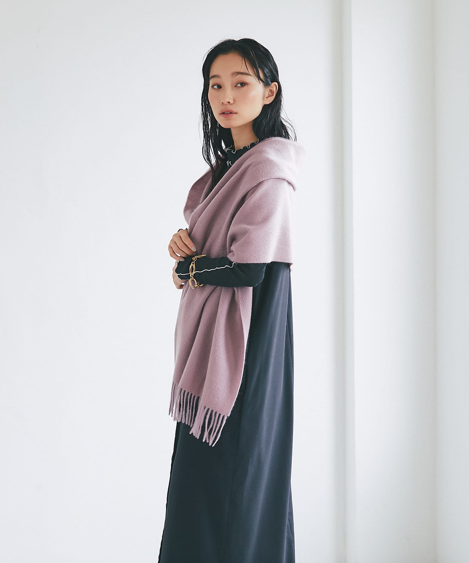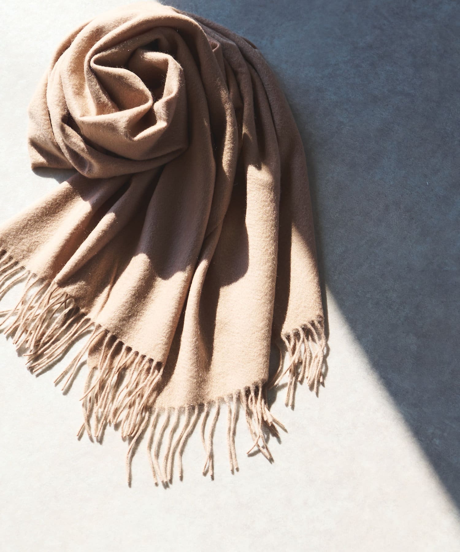 使い方次第で様々なスタイルが楽しめ、首に巻くだけでなく、ひざ掛けとしてもお使い頂けるサイズ感です。