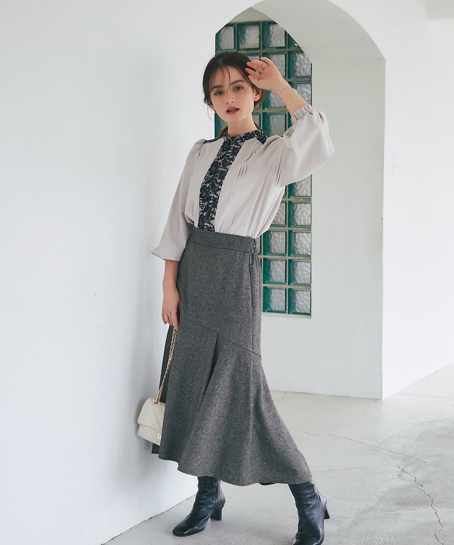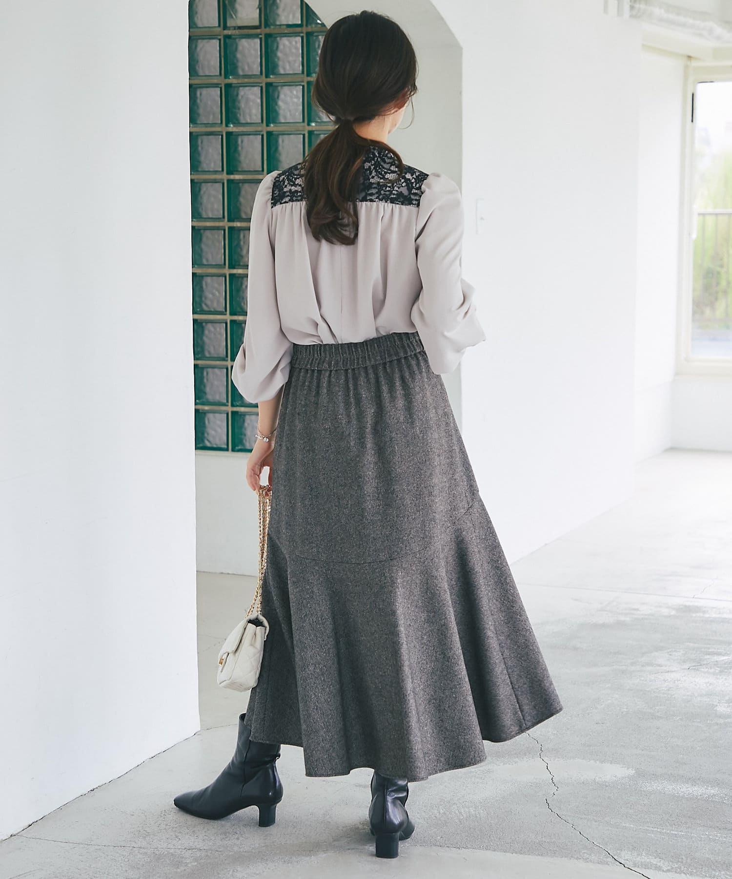 【大人レディスタイルに!】エコツイードバックテールマーメイドスカート