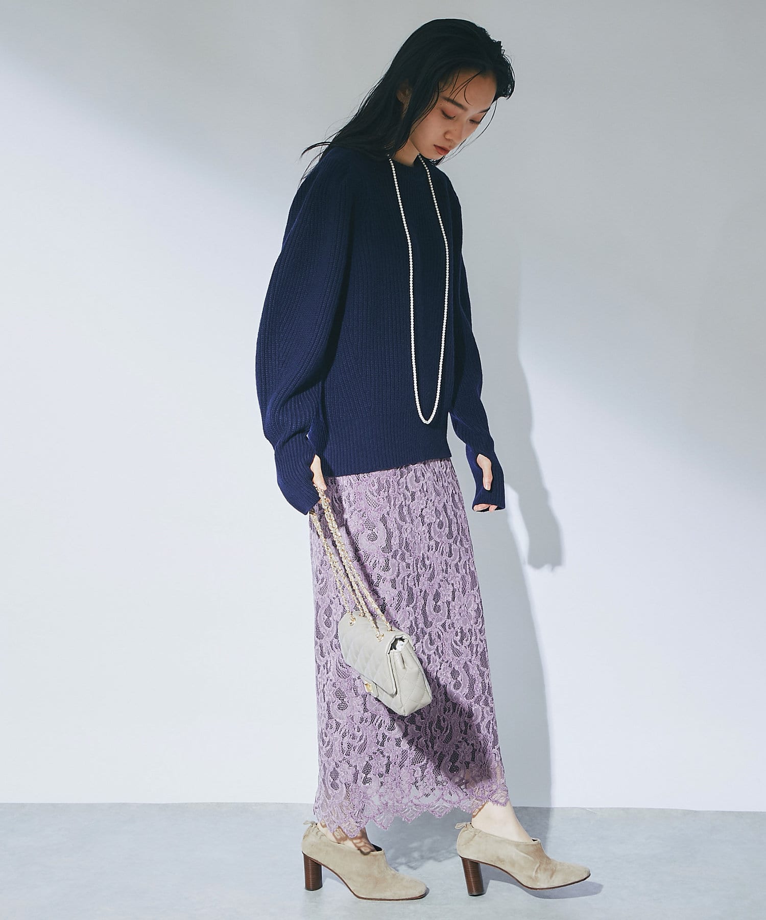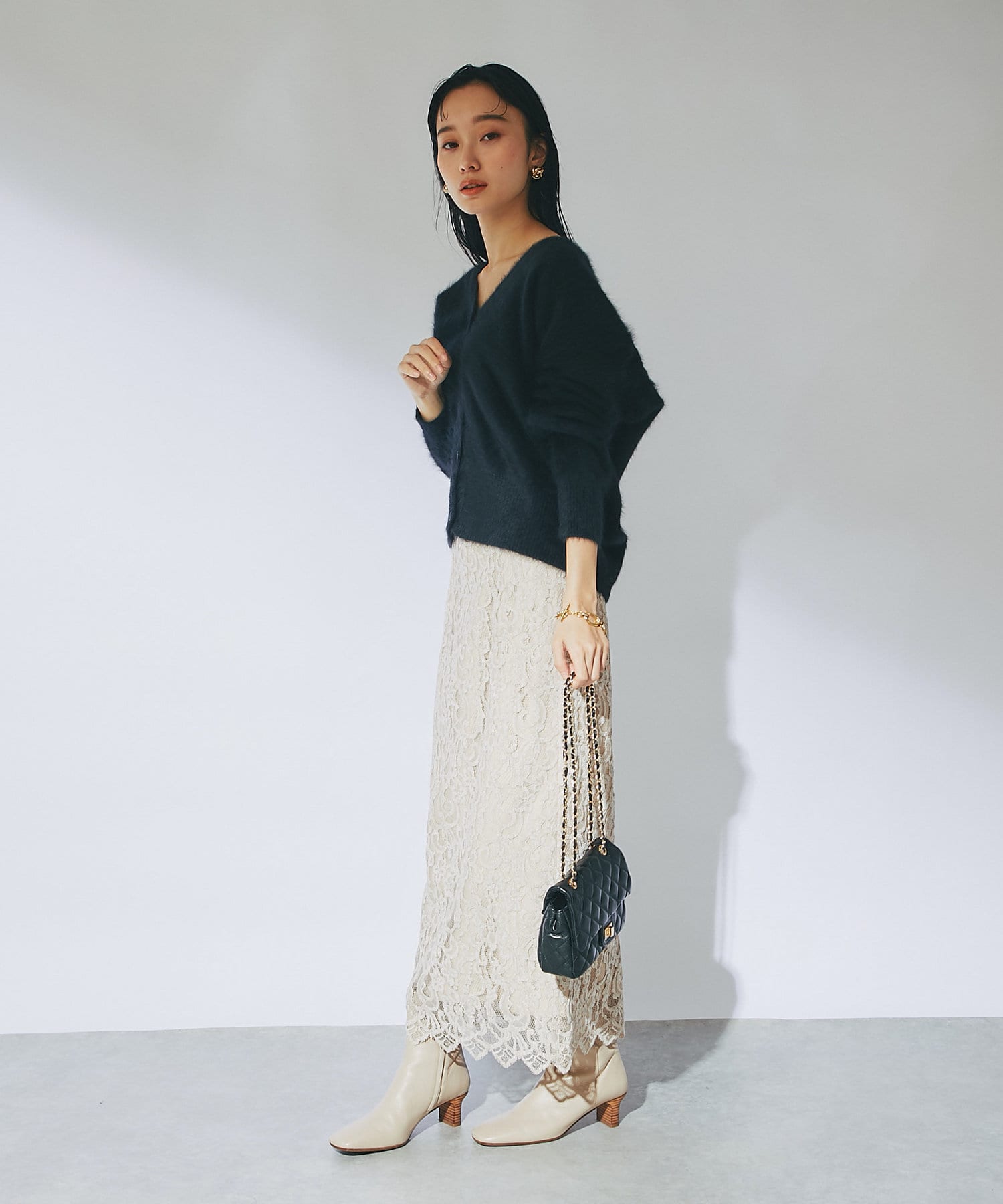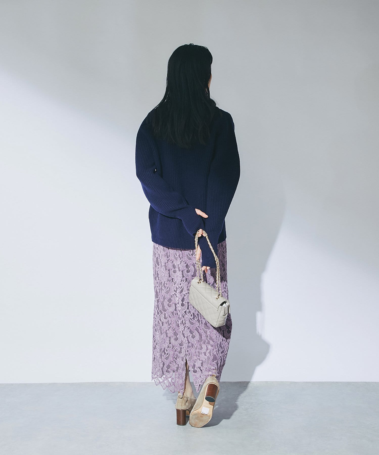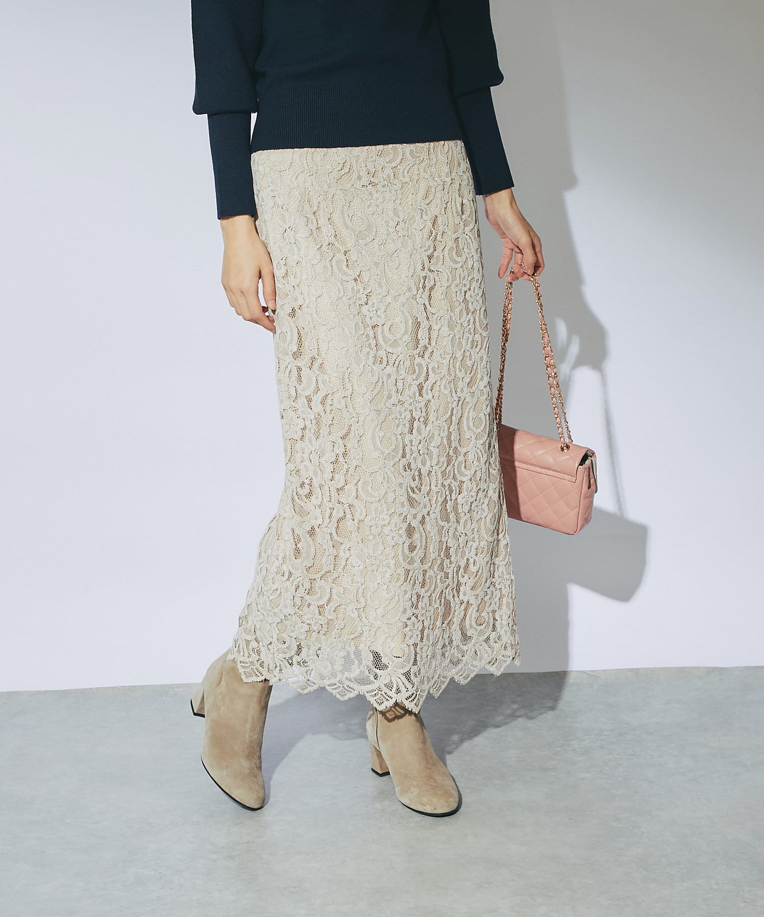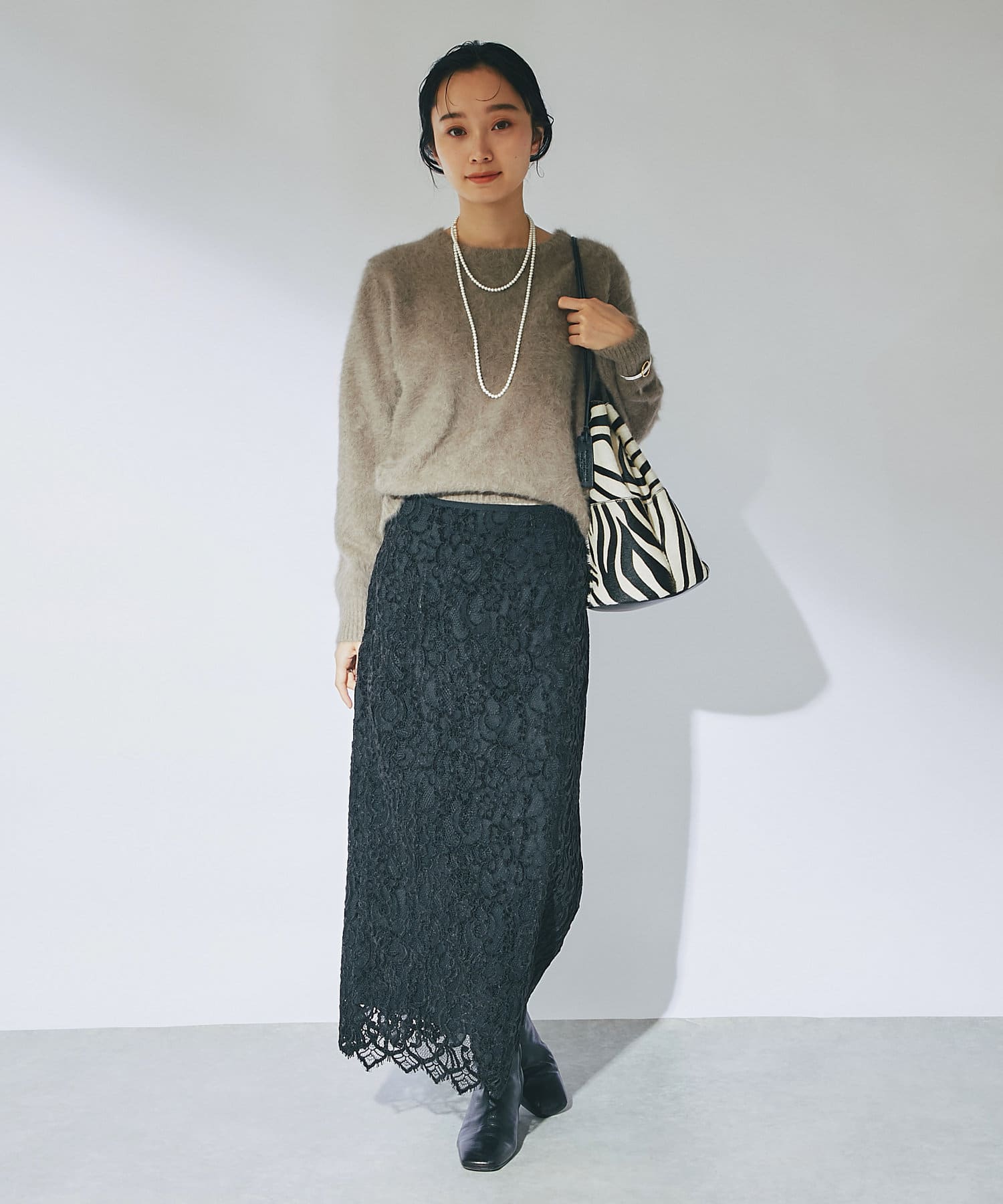#大人カジュアル #きれいめカジュアル #上品カジュアル #上品 #ナロースカート #Iライン #すっきりシルエット #華奢見え #総レース #起毛レース #起毛 #レーススカート #オフィスカジュアル #大人女子