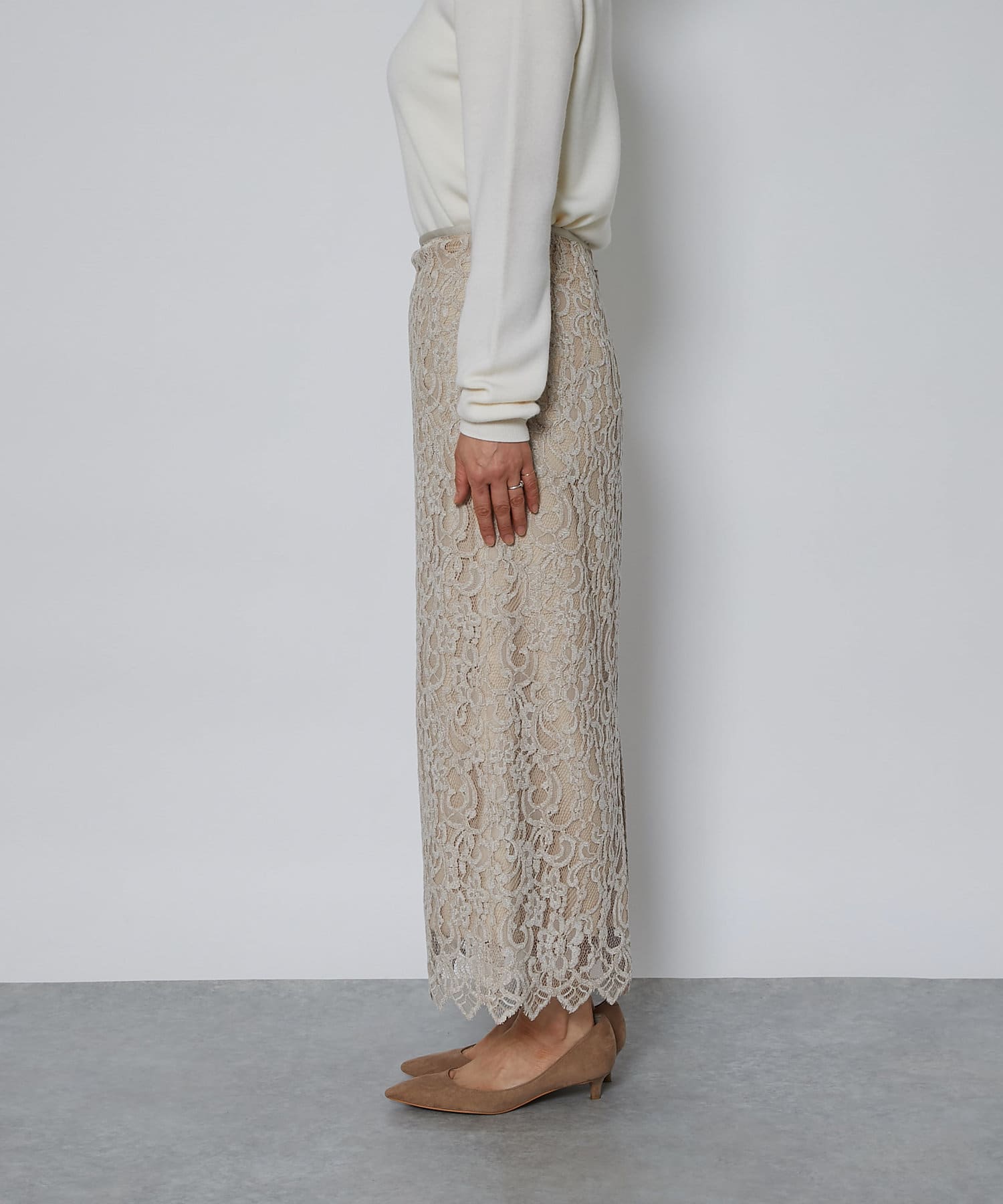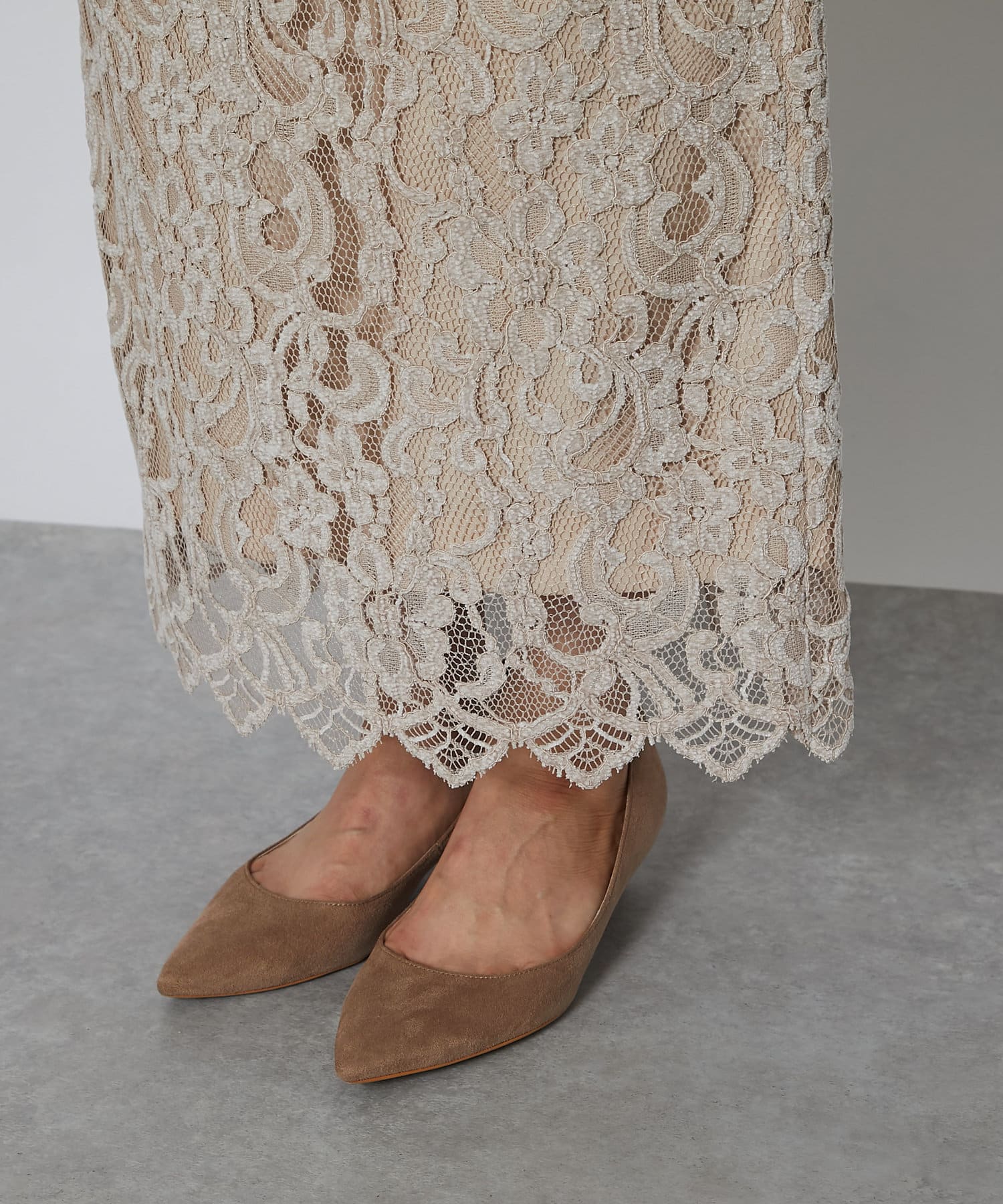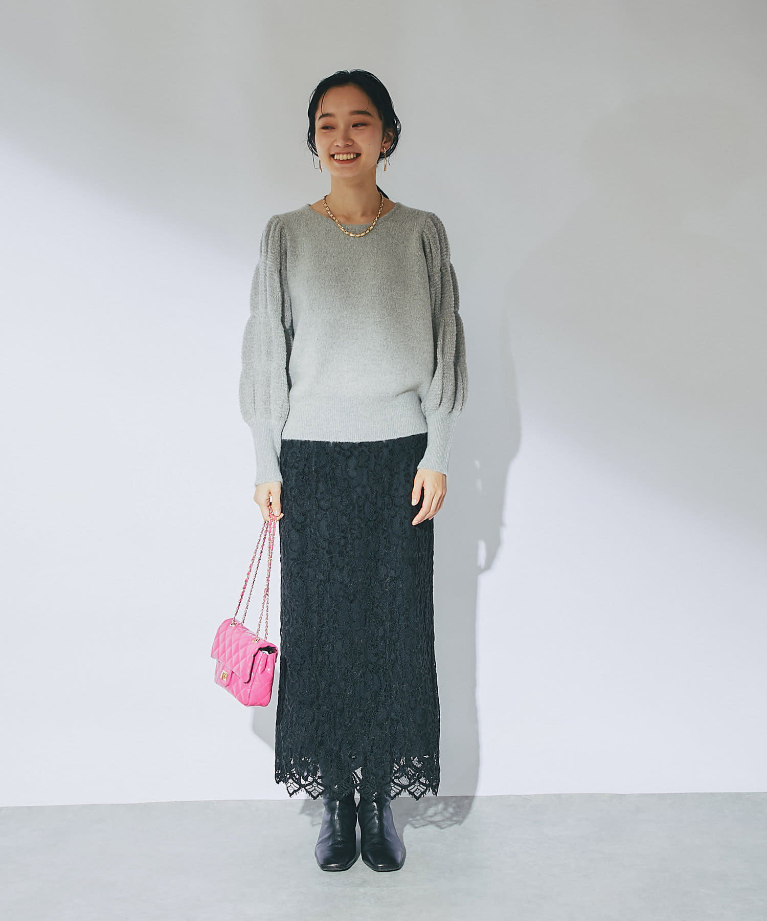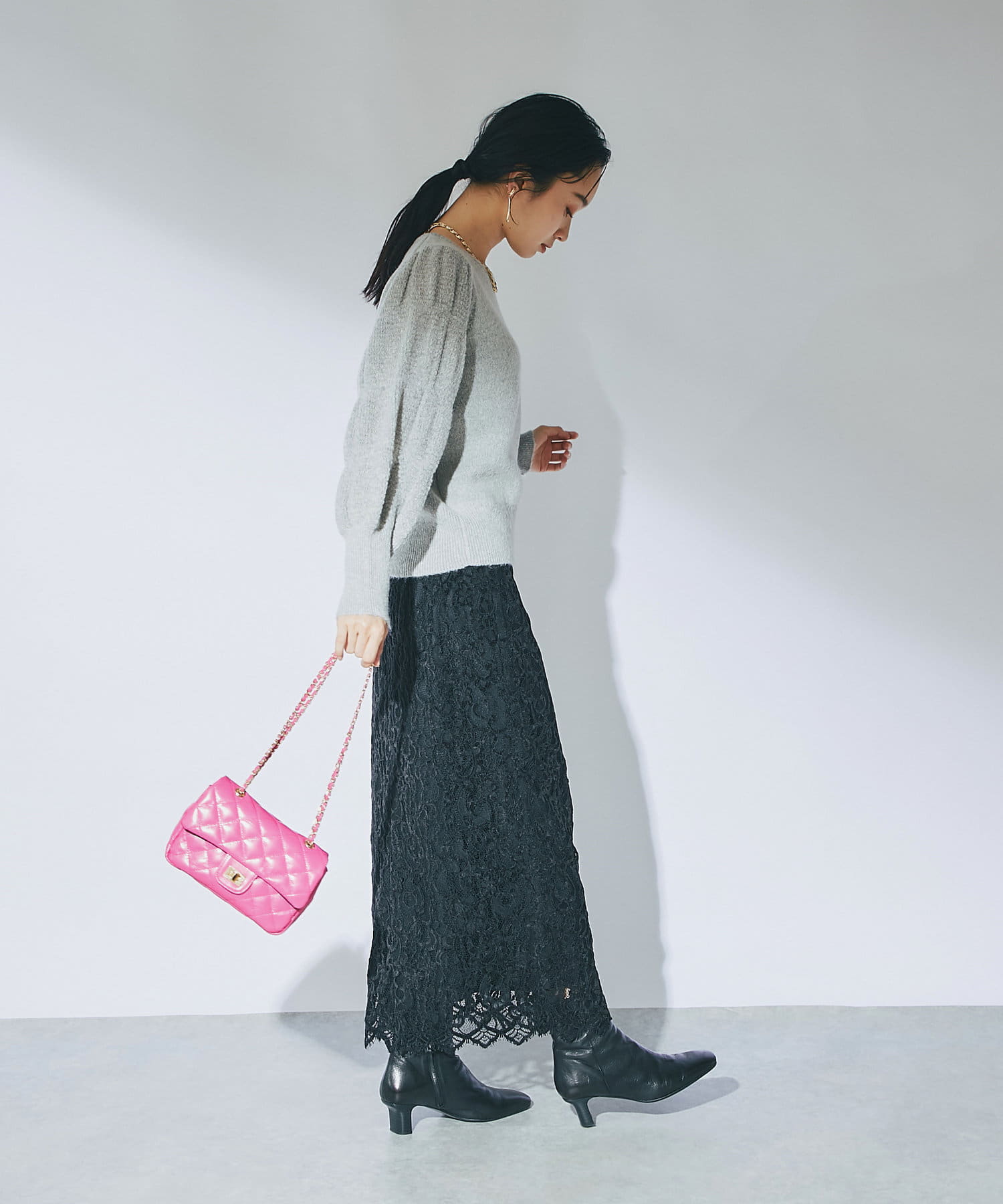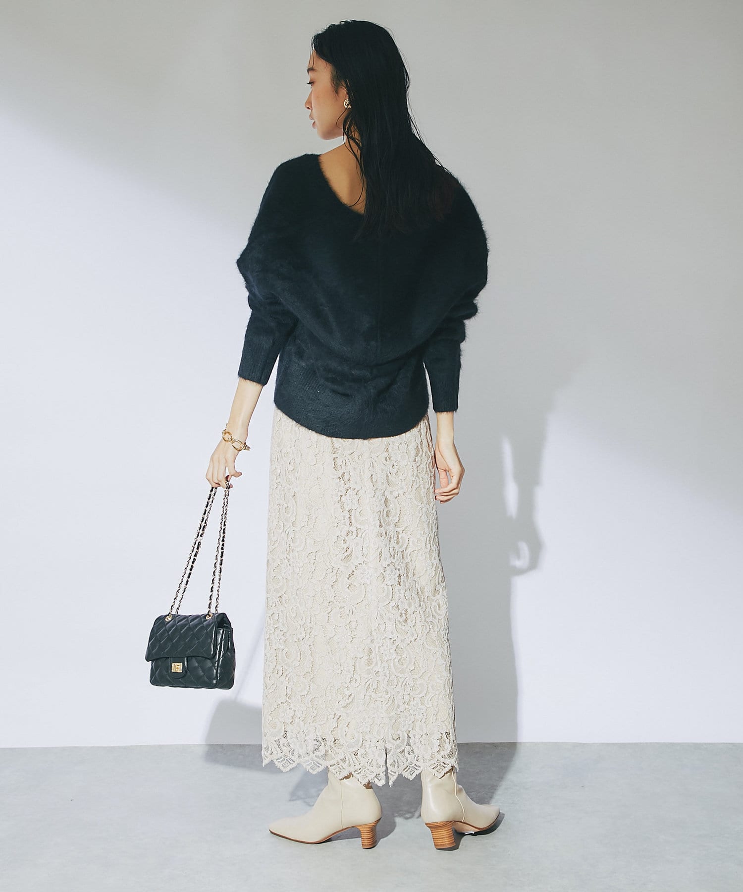 #大人カジュアル #きれいめカジュアル #上品カジュアル #上品 #ナロースカート #Iライン #すっきりシルエット #華奢見え #総レース #起毛レース #起毛 #レーススカート #オフィスカジュアル #大人女子