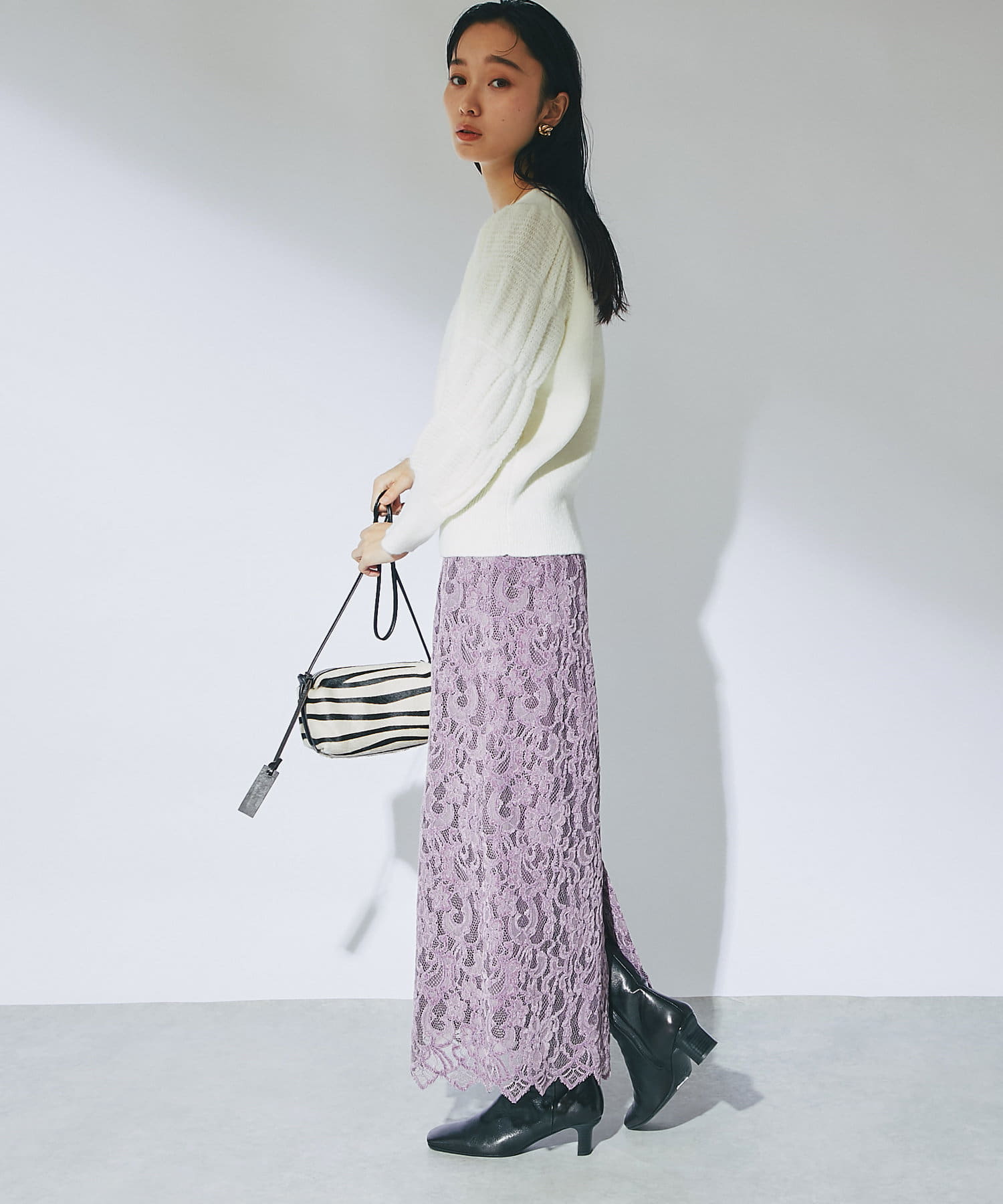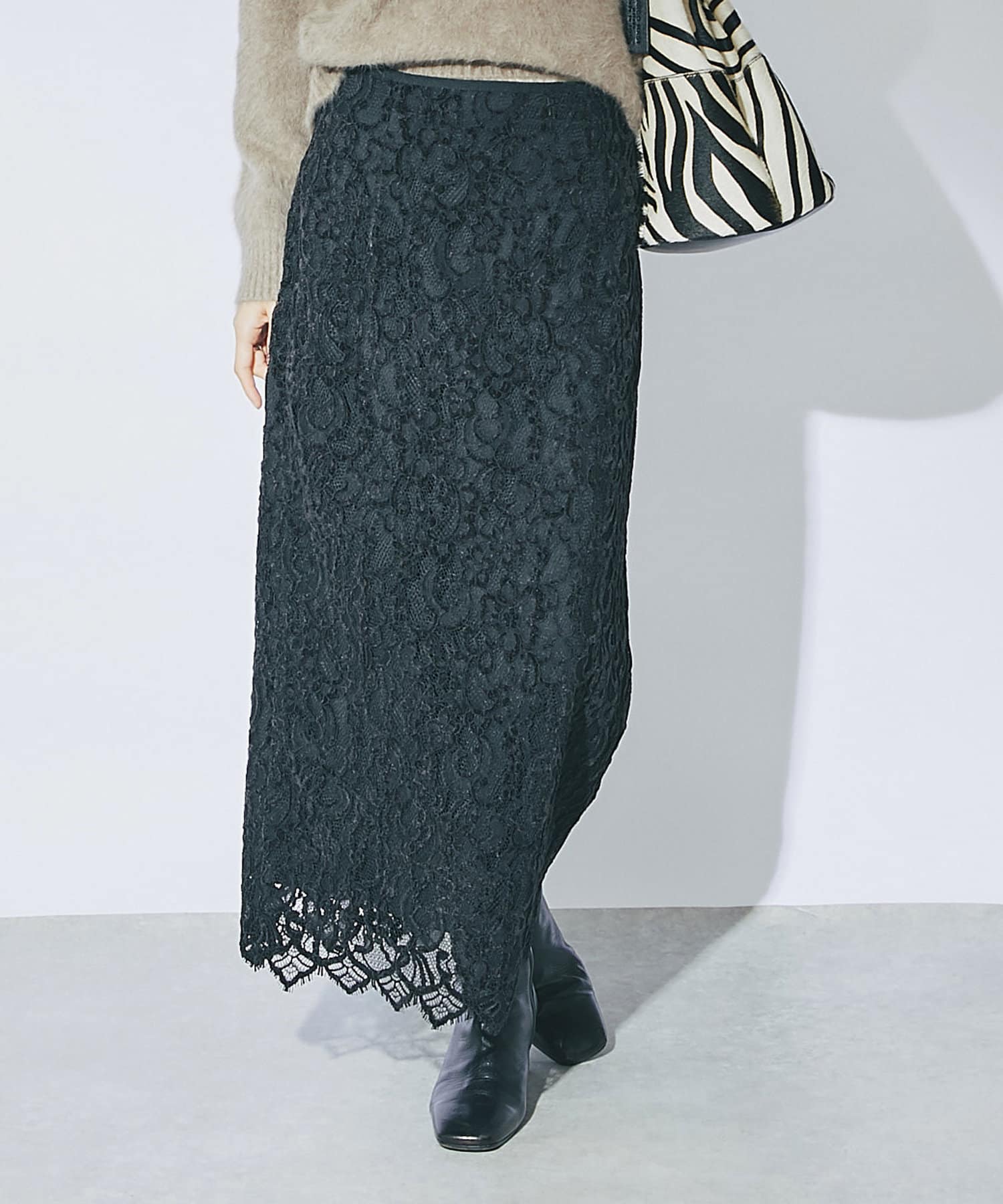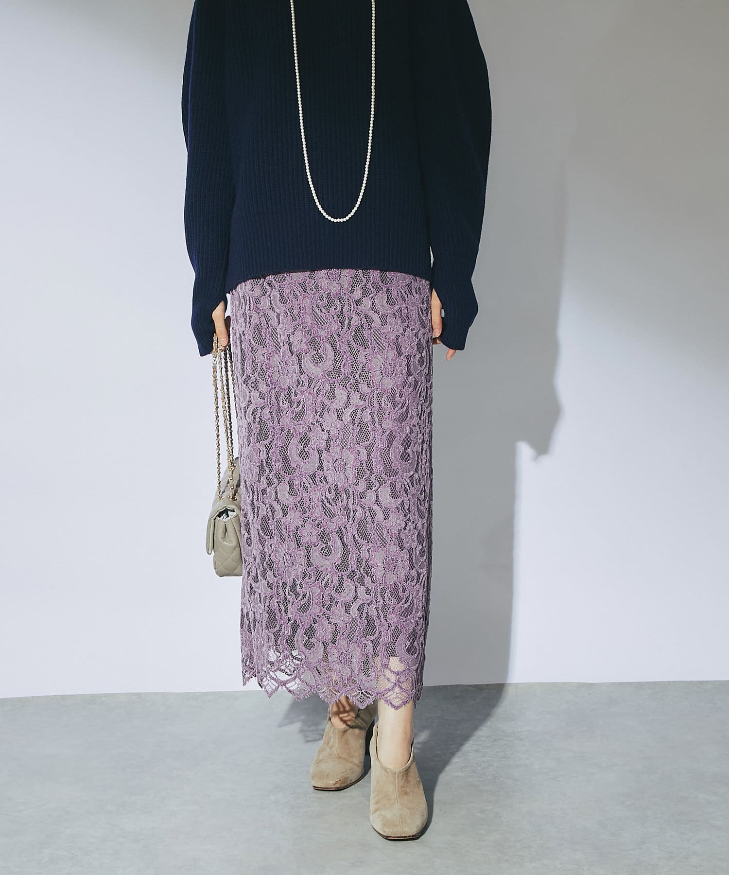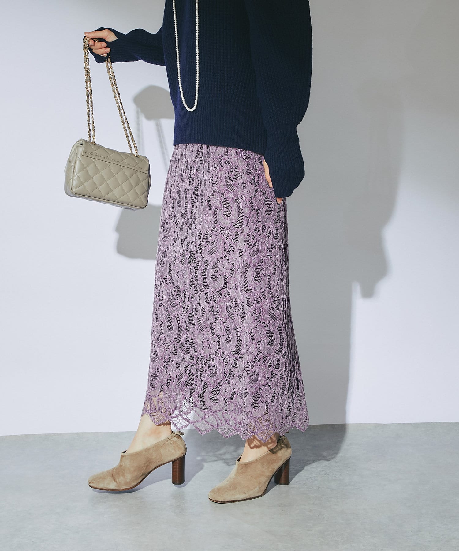 総レースで華やかなアイテムなので、シンプルなトップスを合わせるだけでコーディネートが完成。