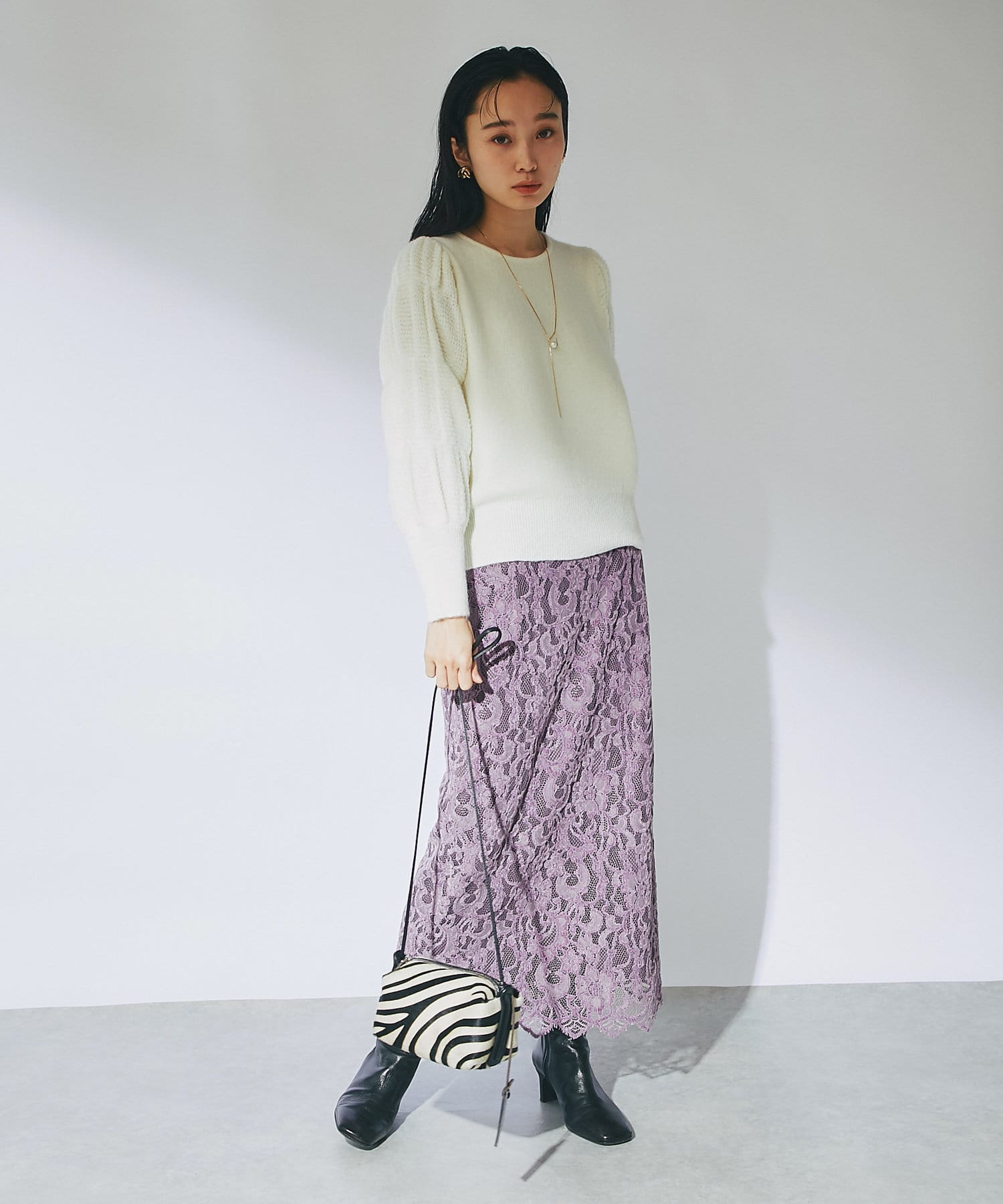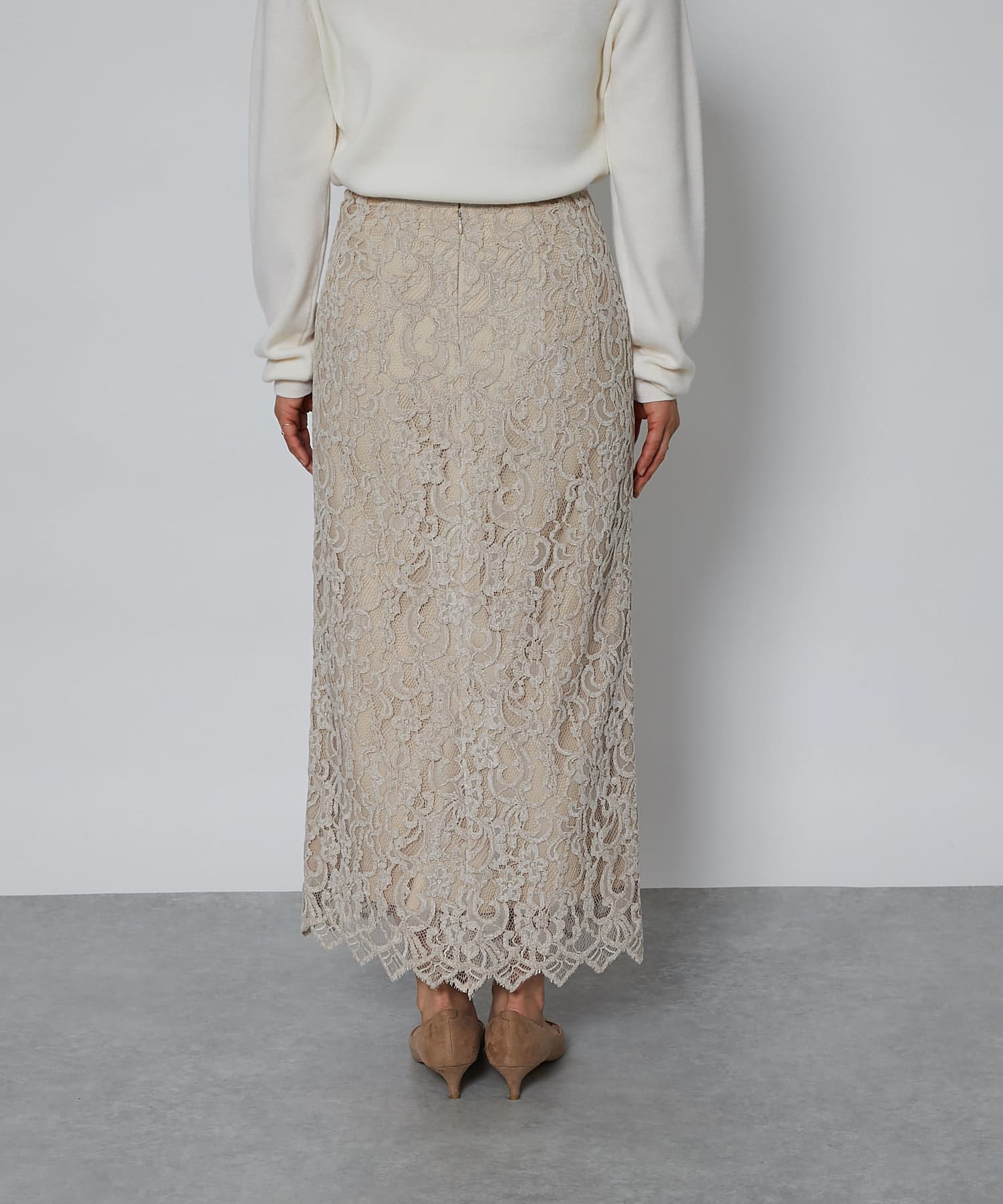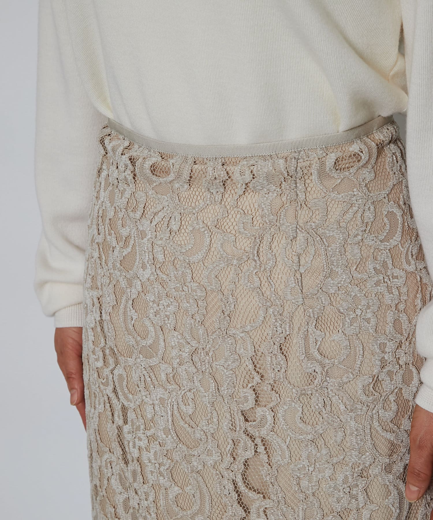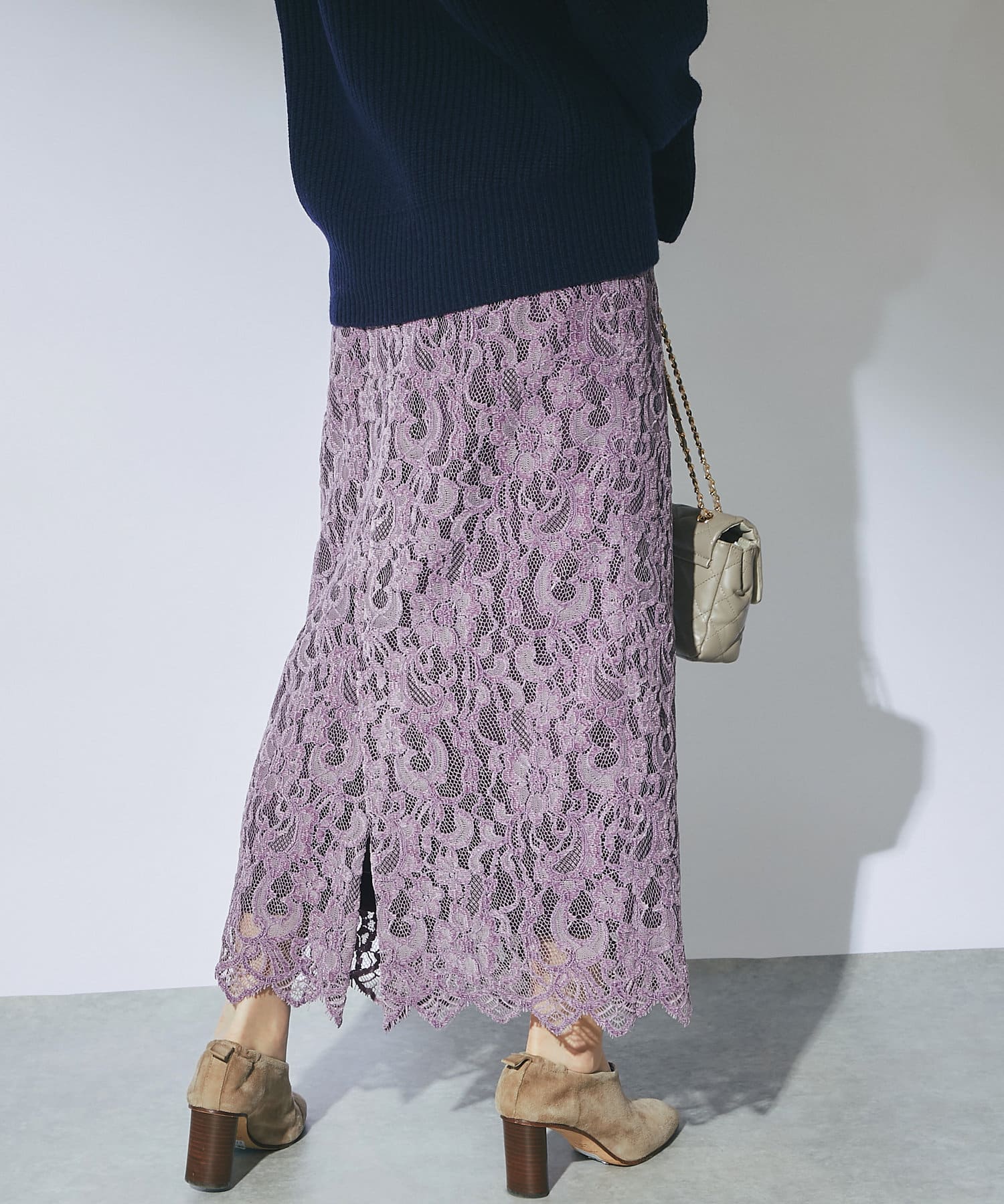 総レースで華やかなアイテムなので、シンプルなトップスを合わせるだけでコーディネートが完成。