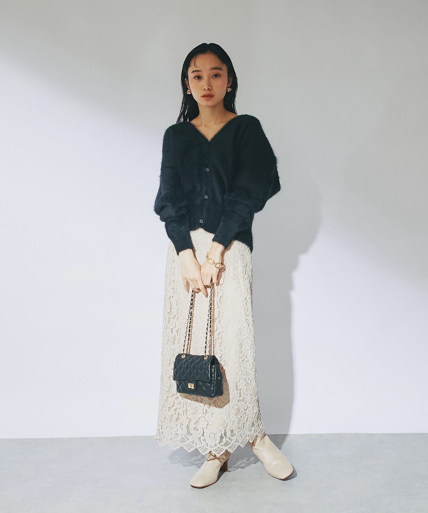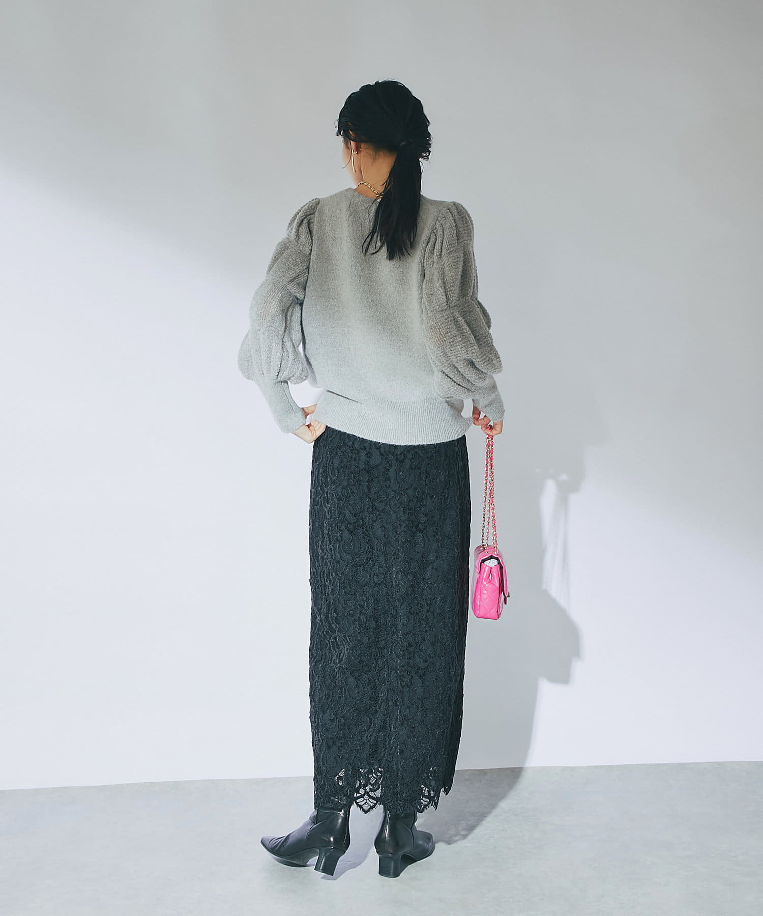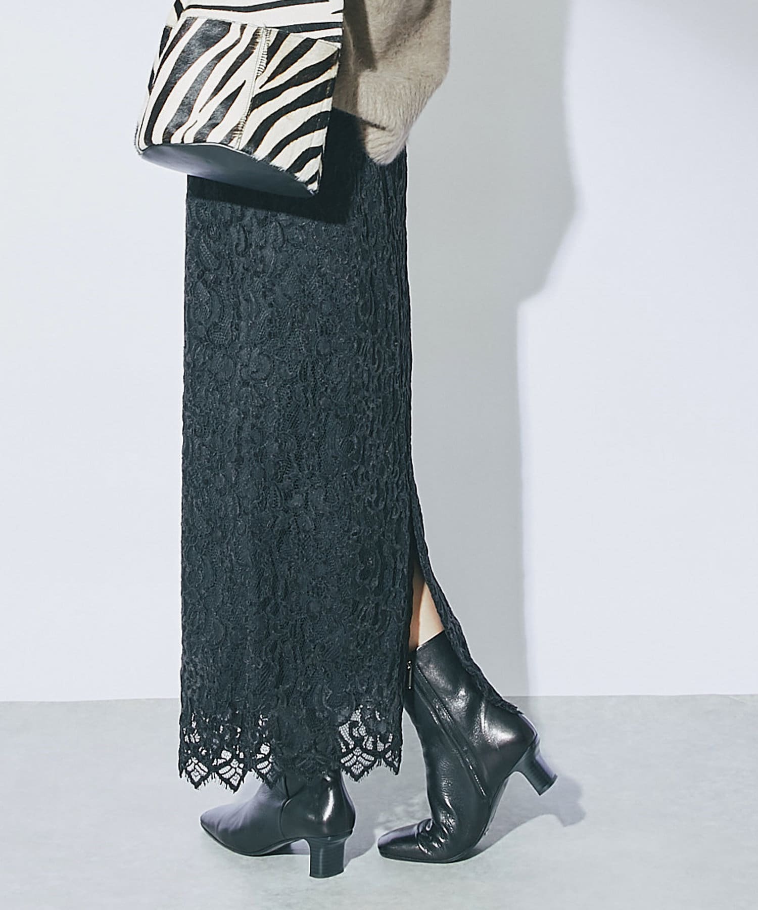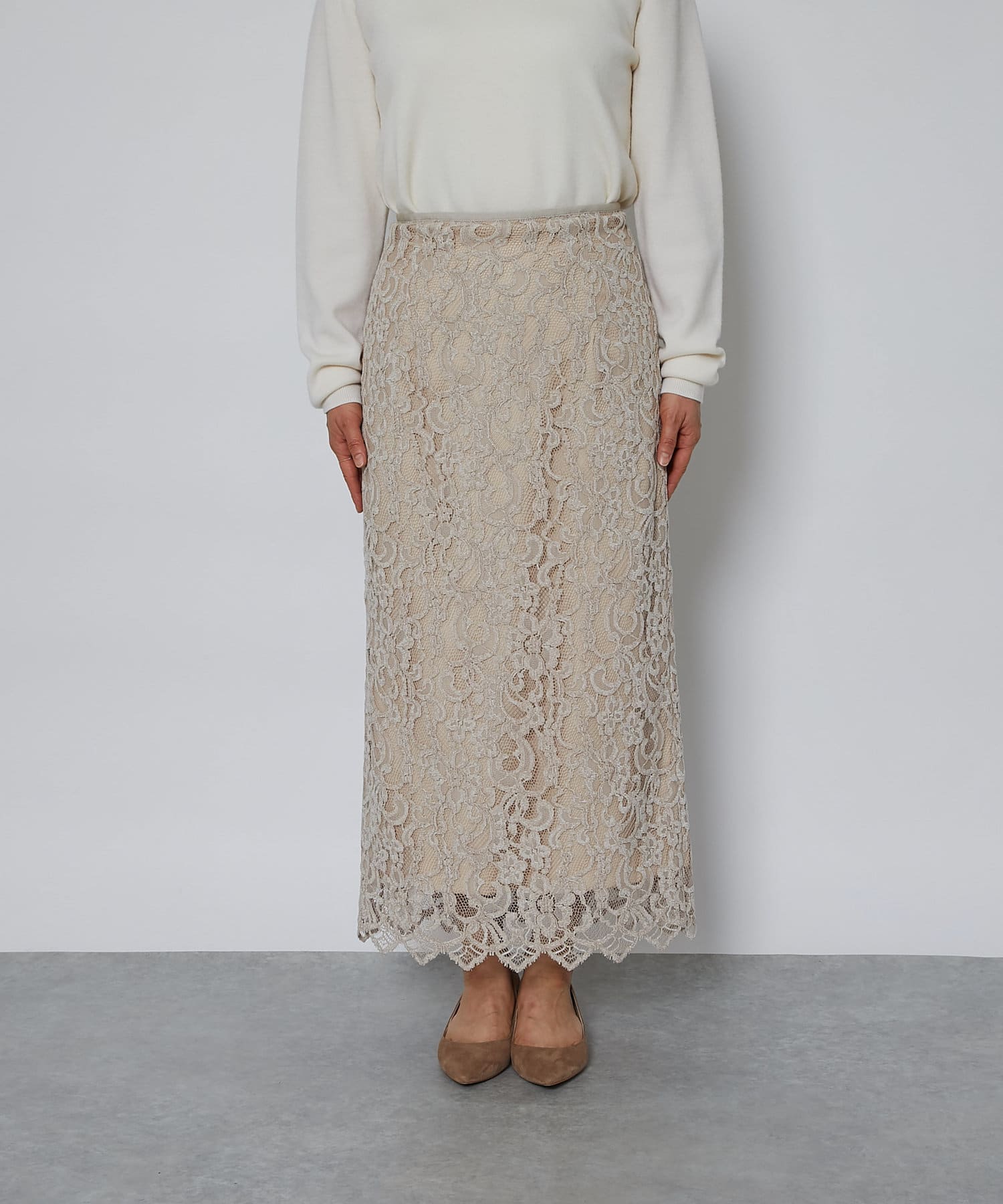 総レースで華やかなアイテムなので、シンプルなトップスを合わせるだけでコーディネートが完成。
