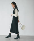 細いスタンドネックは首回りがすっきりして、顔まわりをすっきりと凛とした印象に。