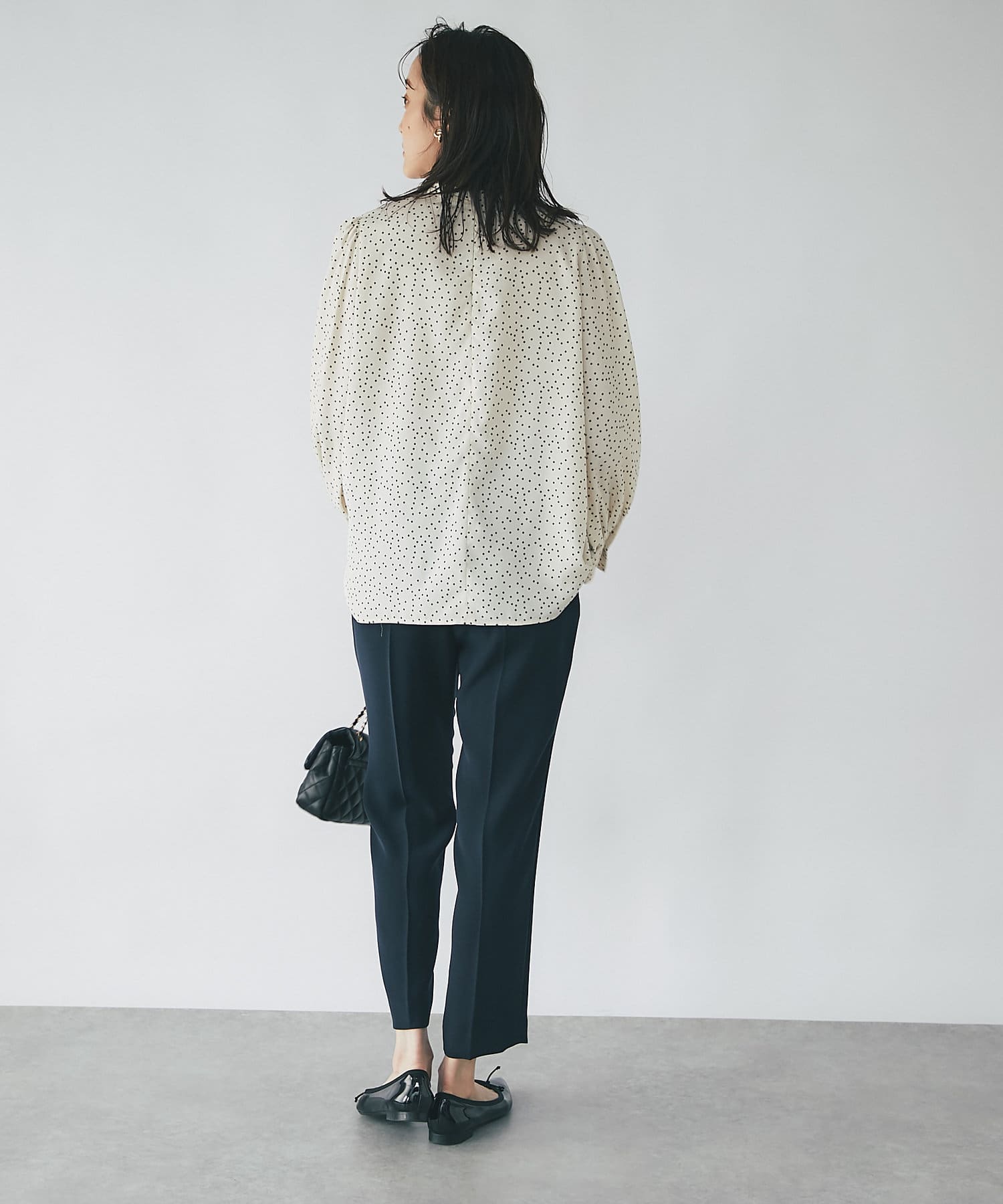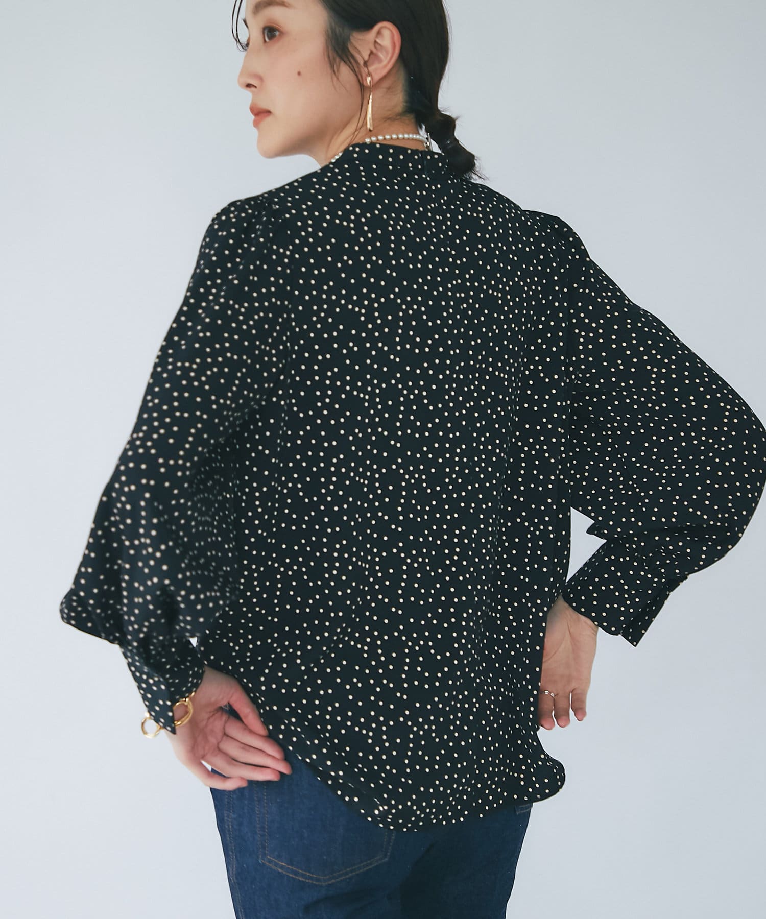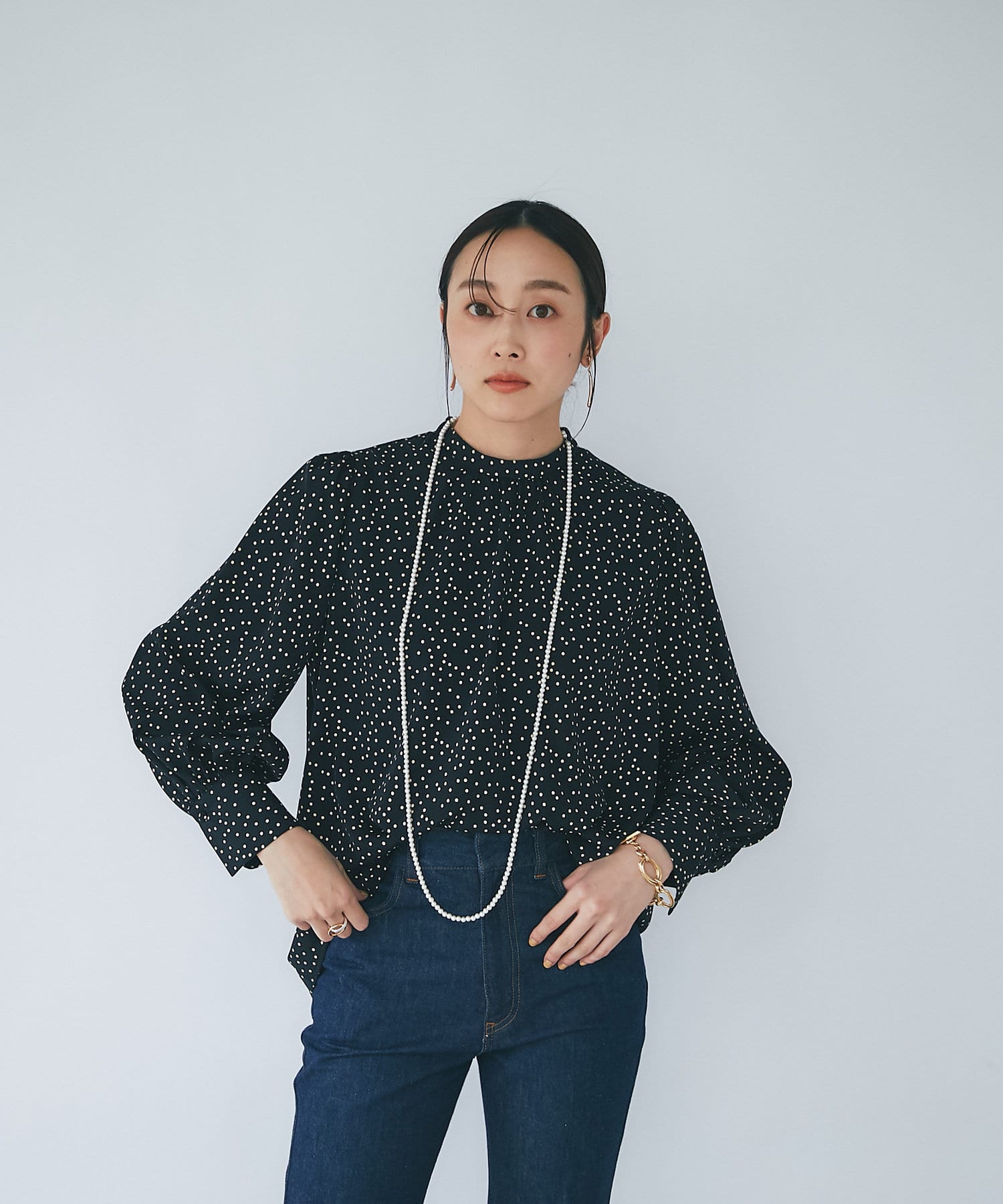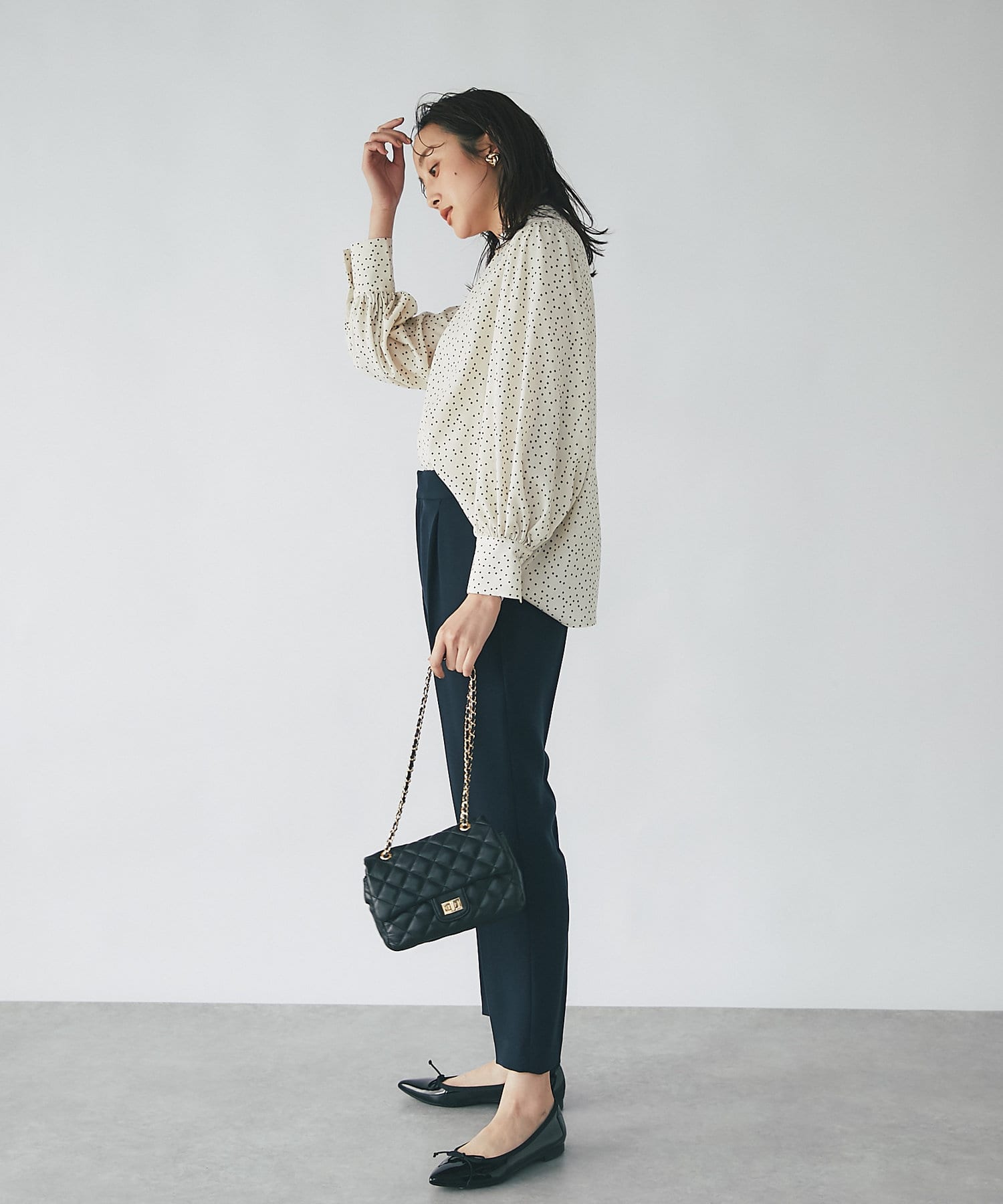大人フェミニンな要素がたっぷり詰まったドットブラウス。