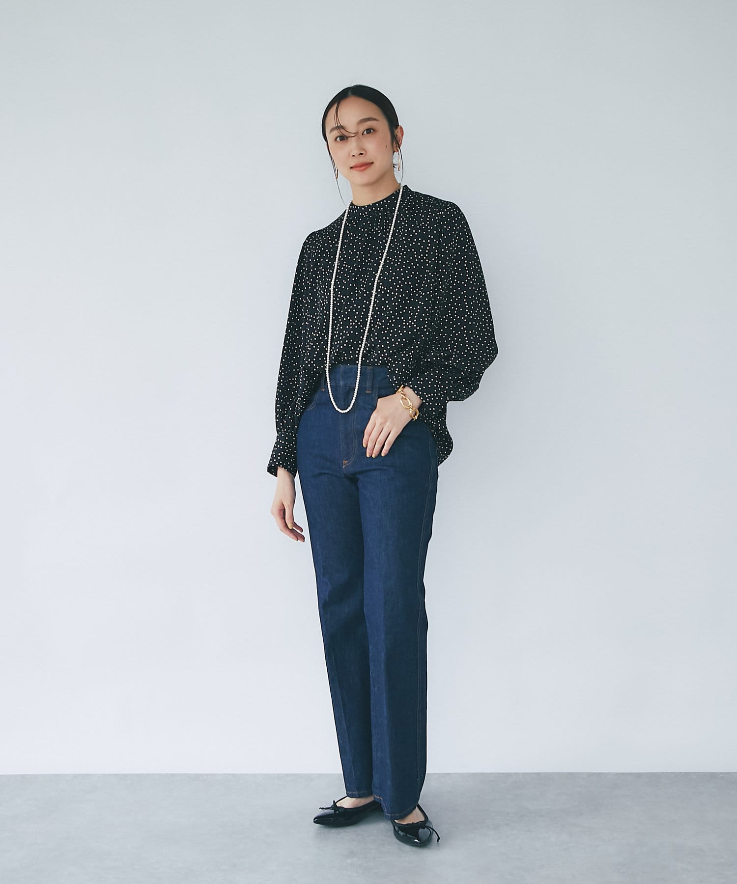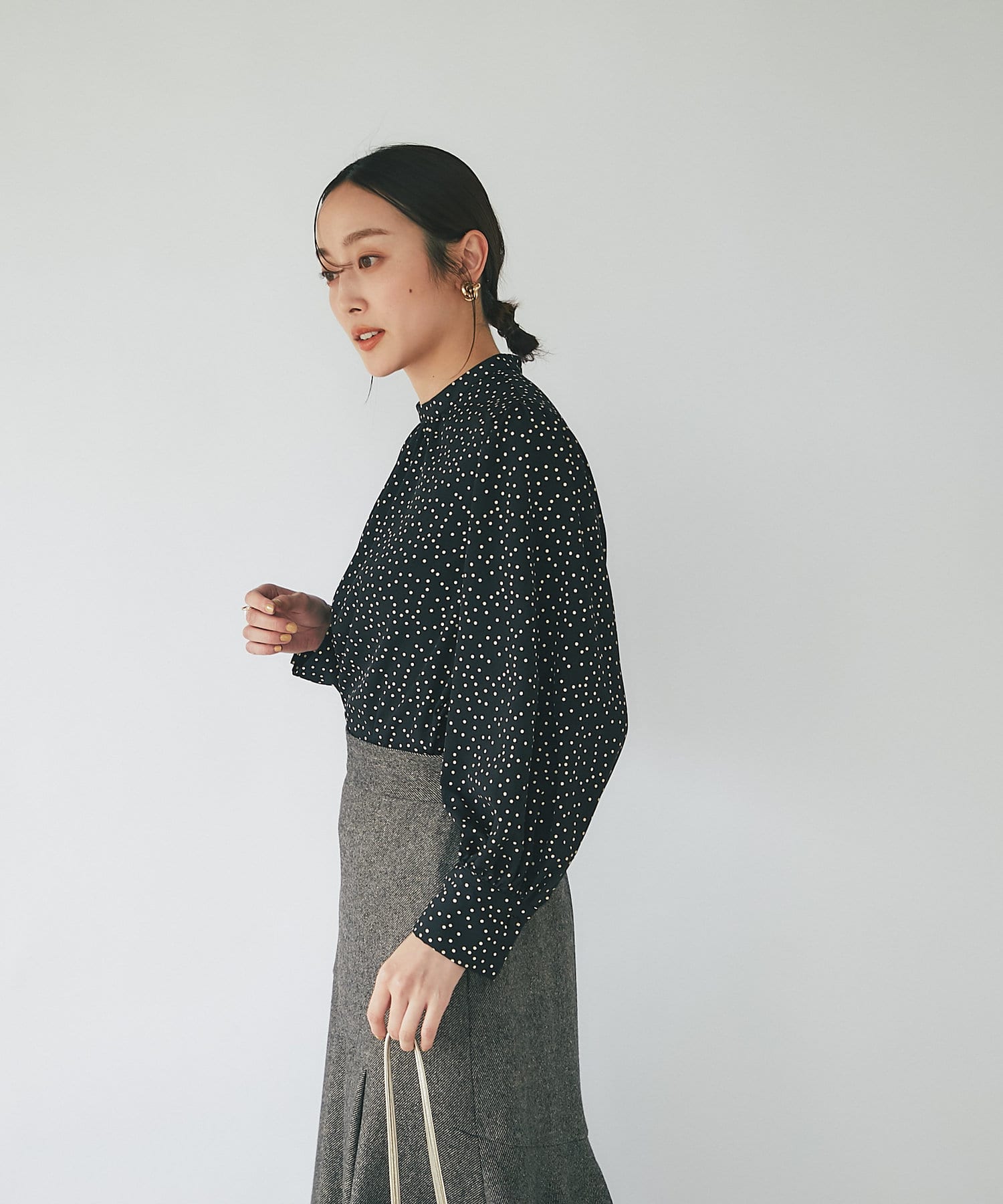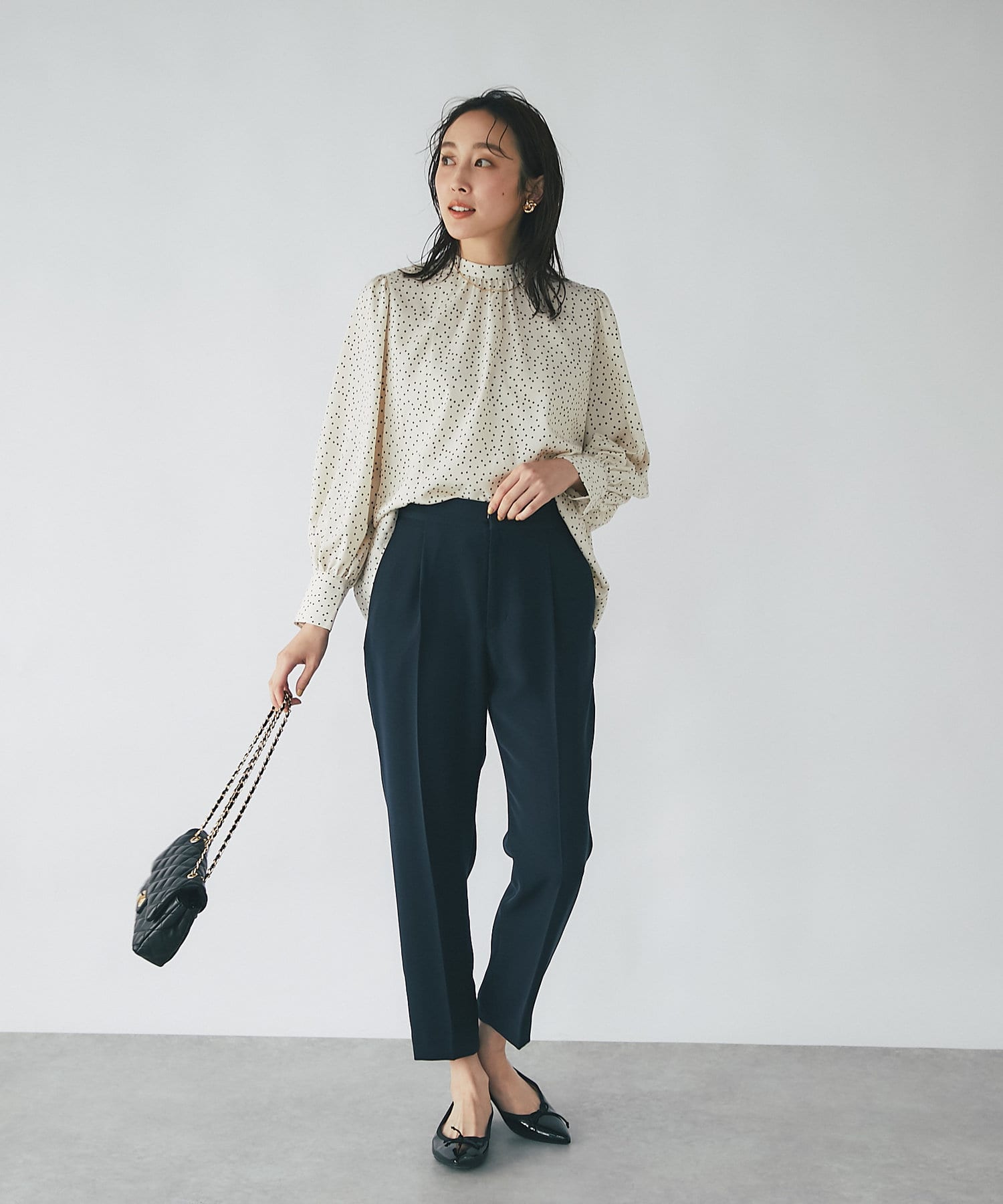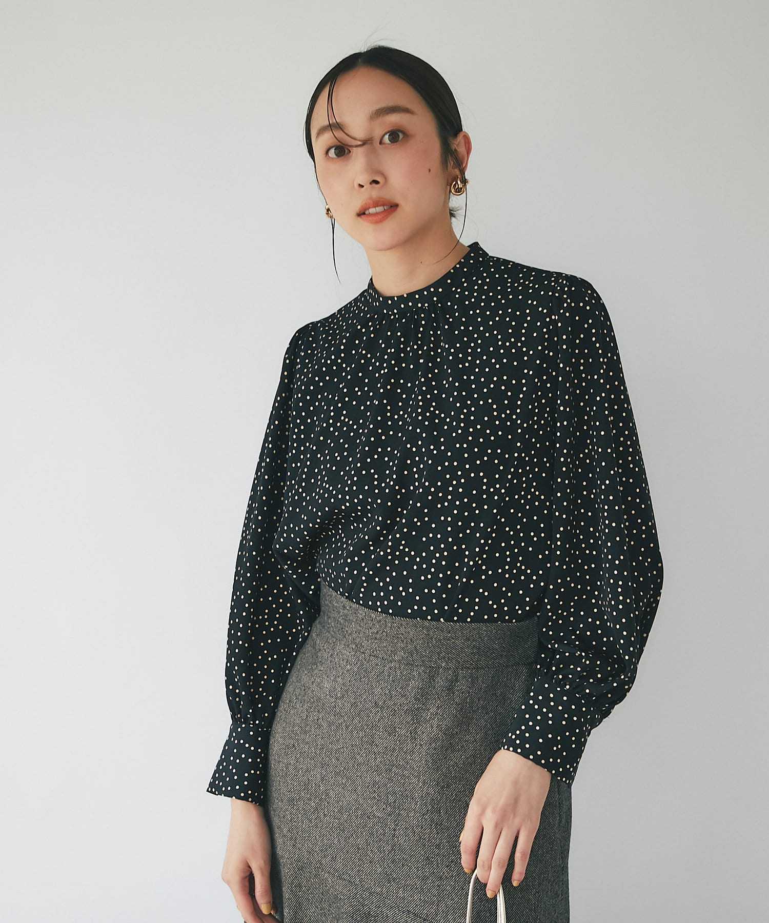 大人フェミニンな要素がたっぷり詰まったドットブラウス。