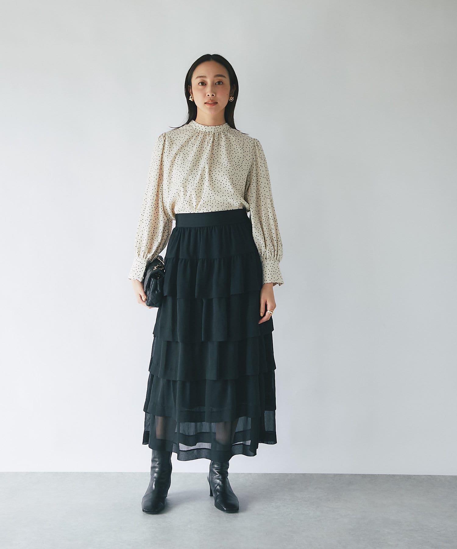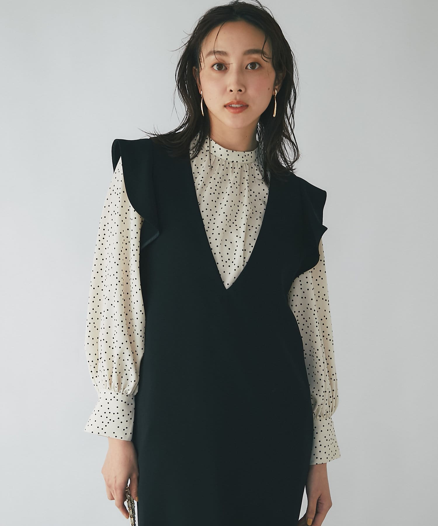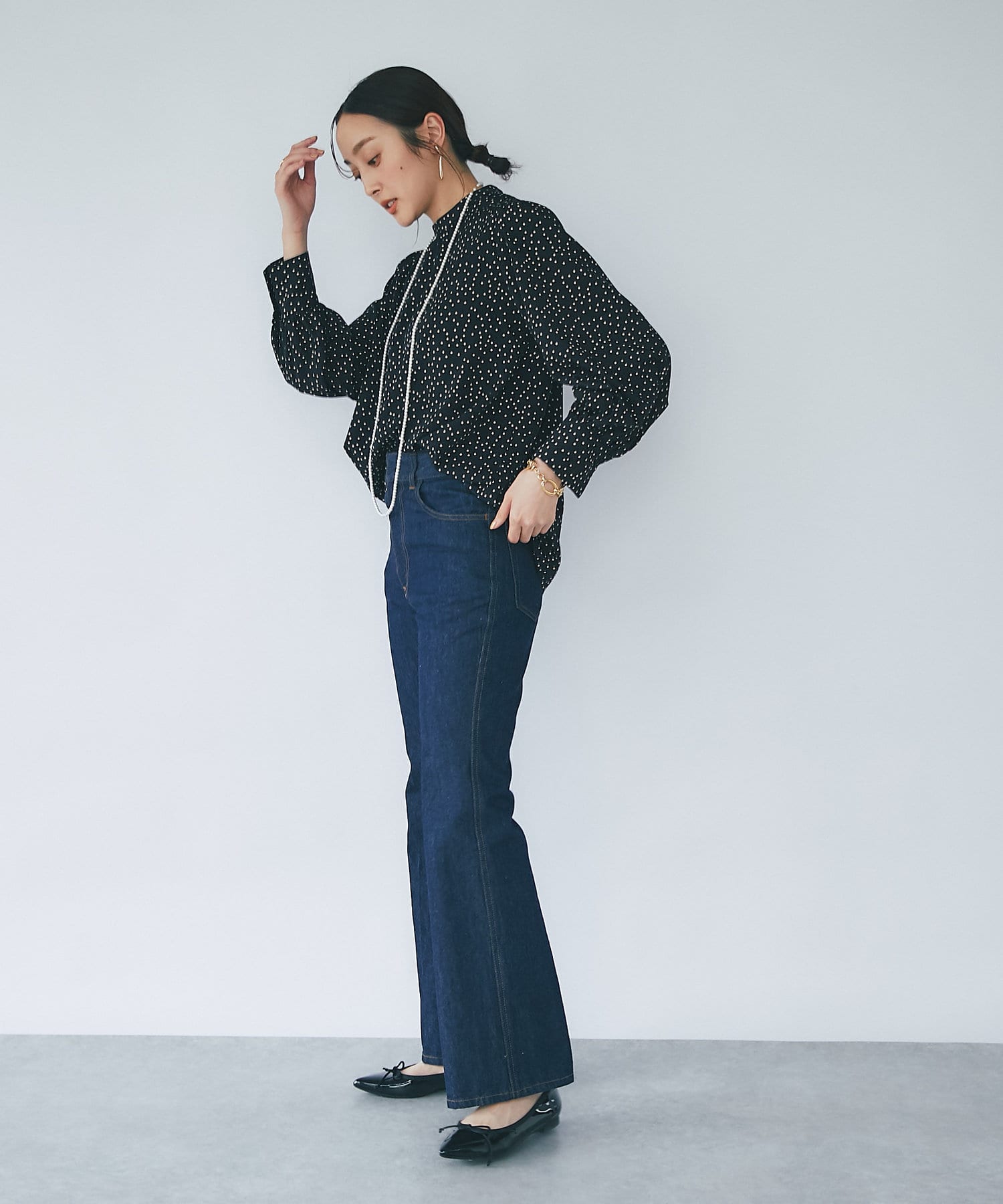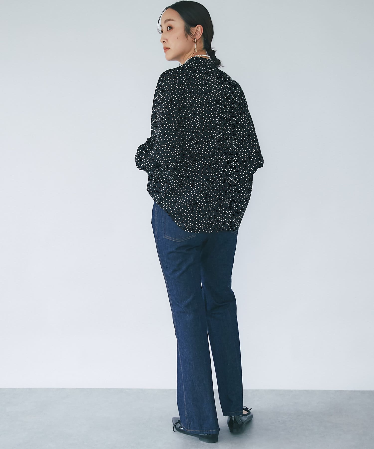大人フェミニンな要素がたっぷり詰まったドットブラウス。