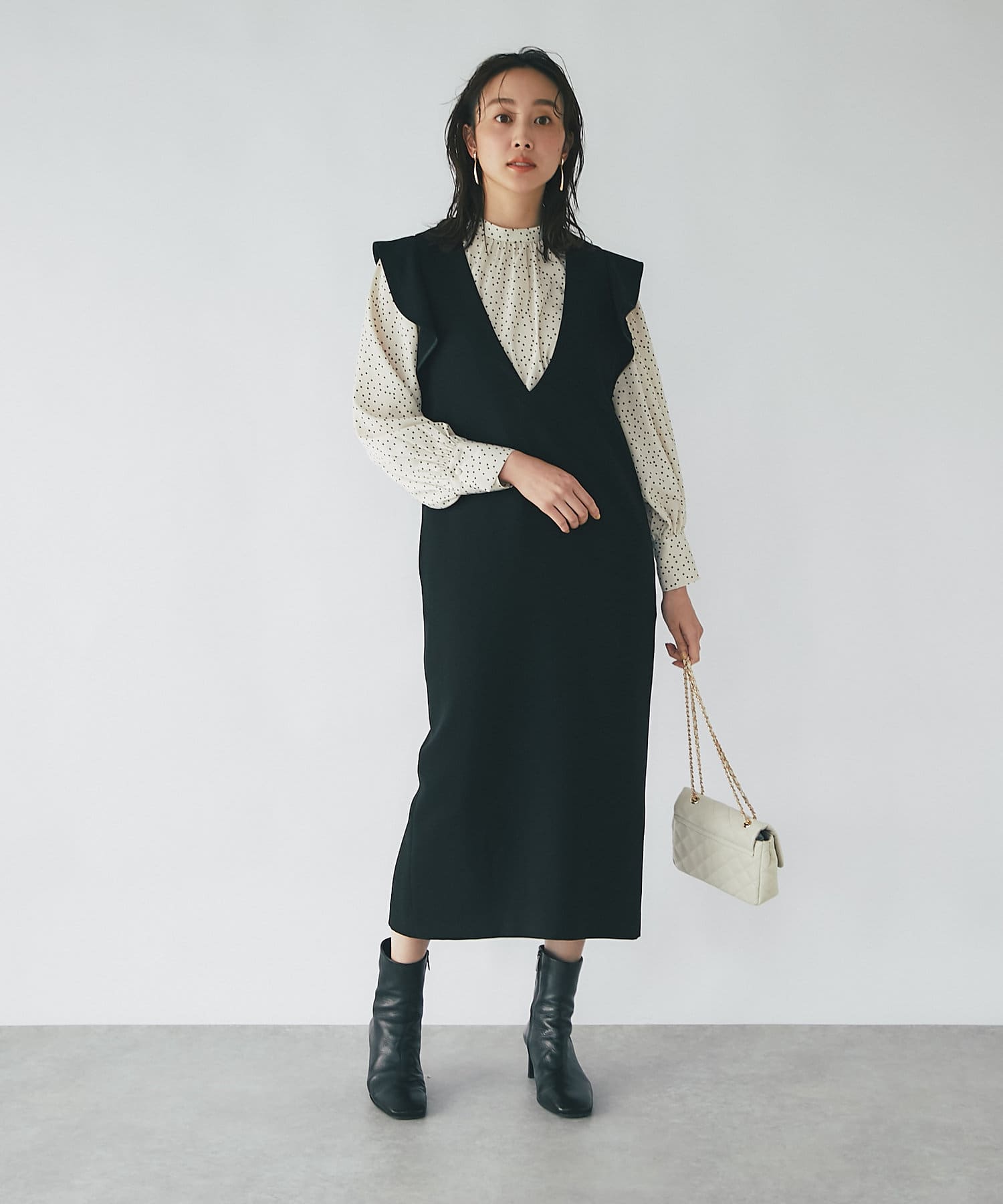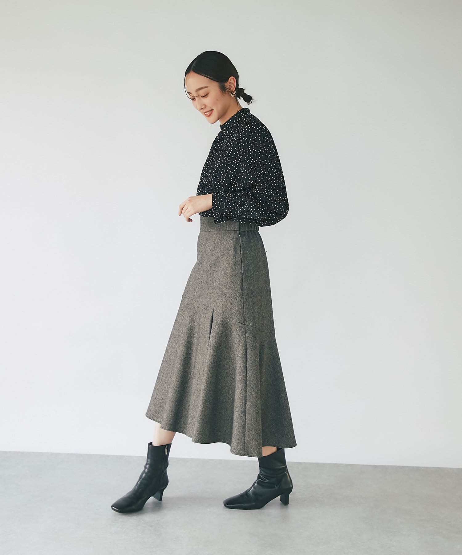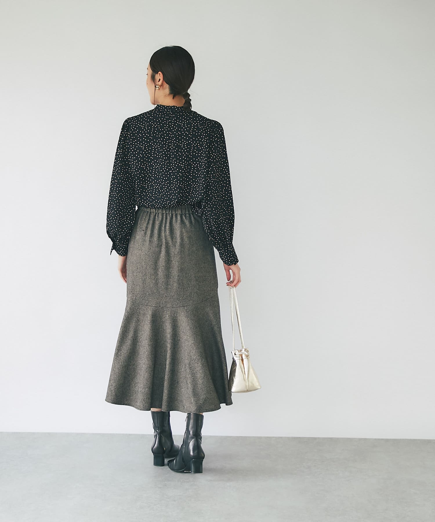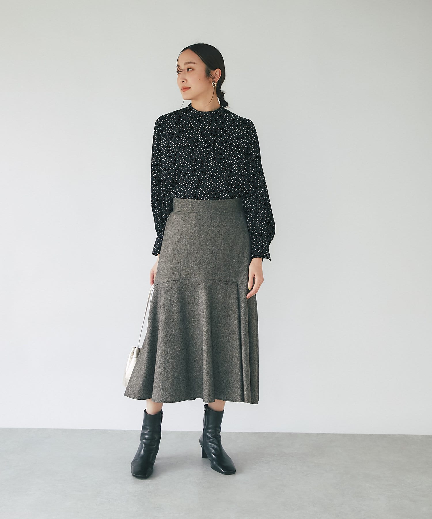 大人フェミニンな要素がたっぷり詰まったドットブラウス。