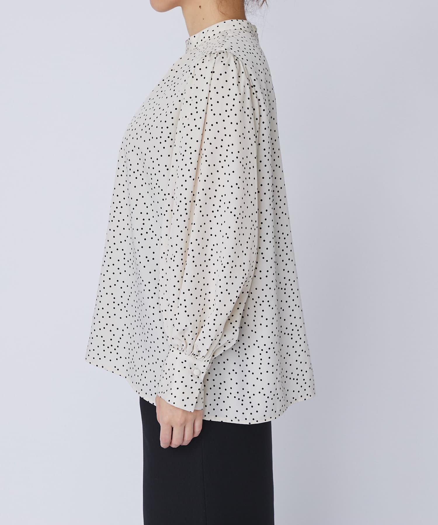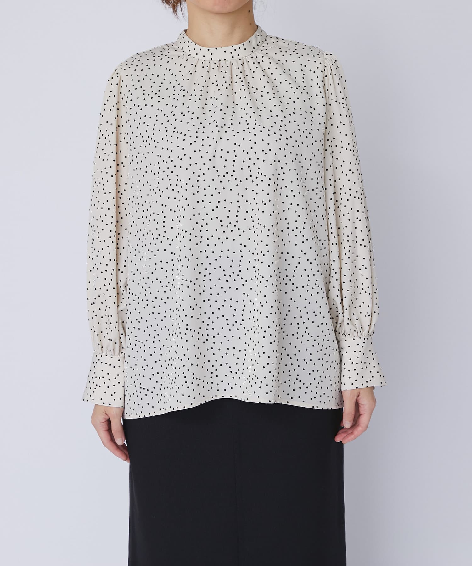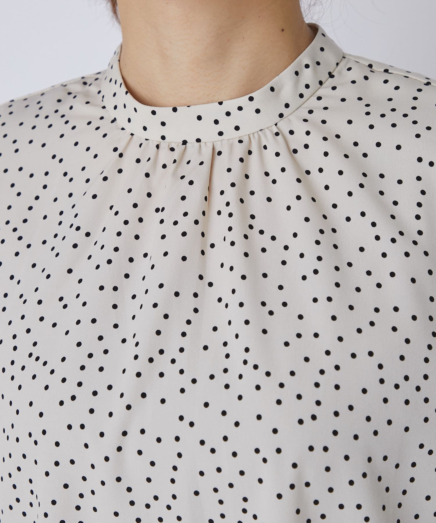 【大人フェミニンに着れる・手洗い可】ナローネックドットブラウス