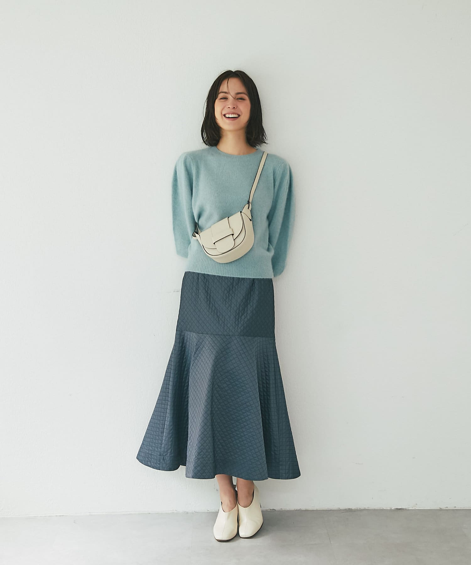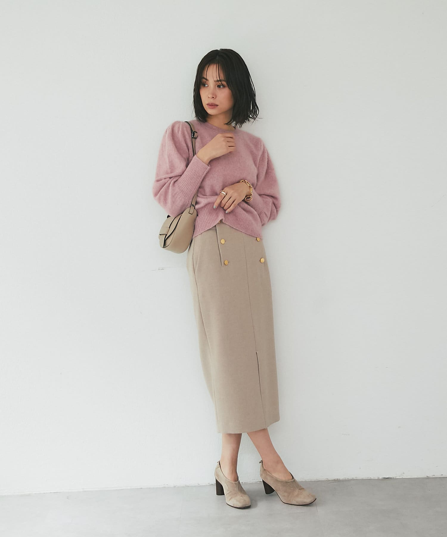 スカートでもパンツでもボトムを選ばずお使い頂ける一枚。