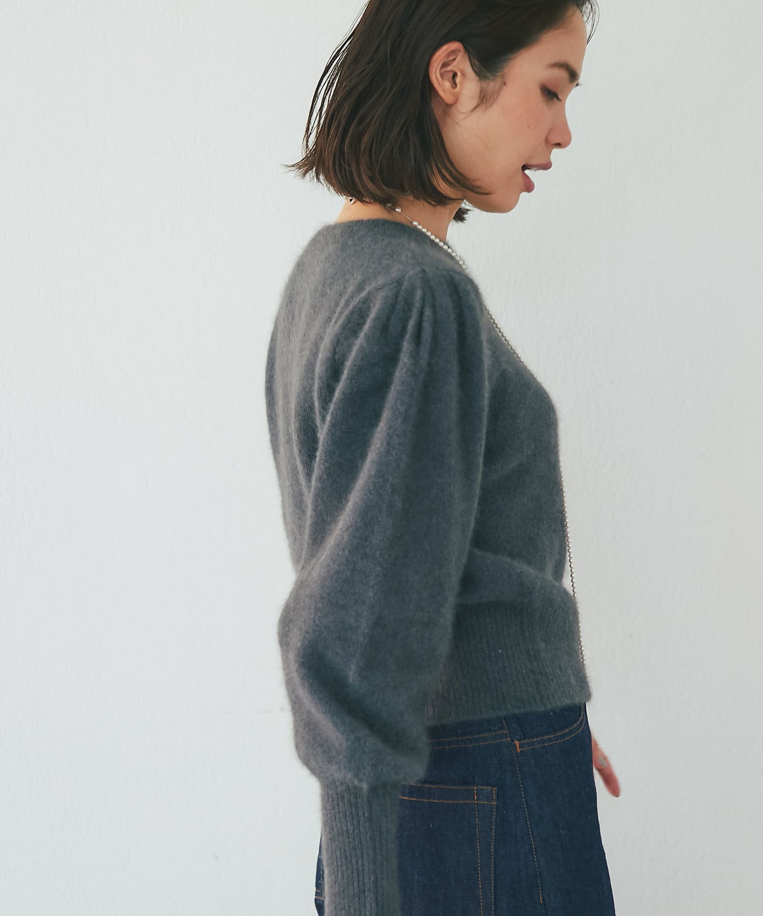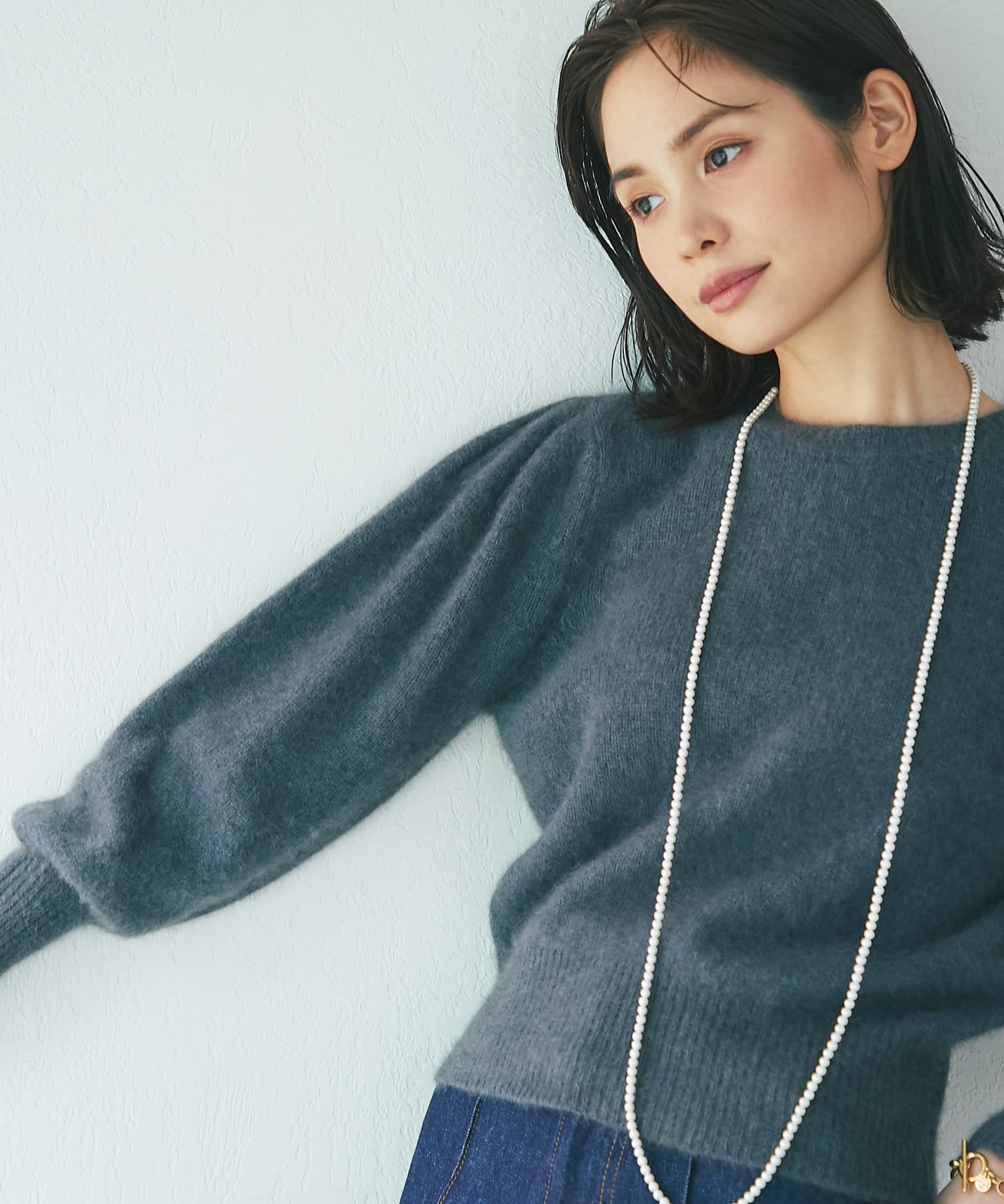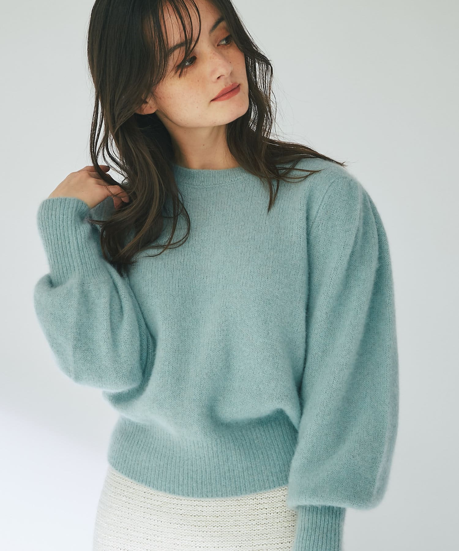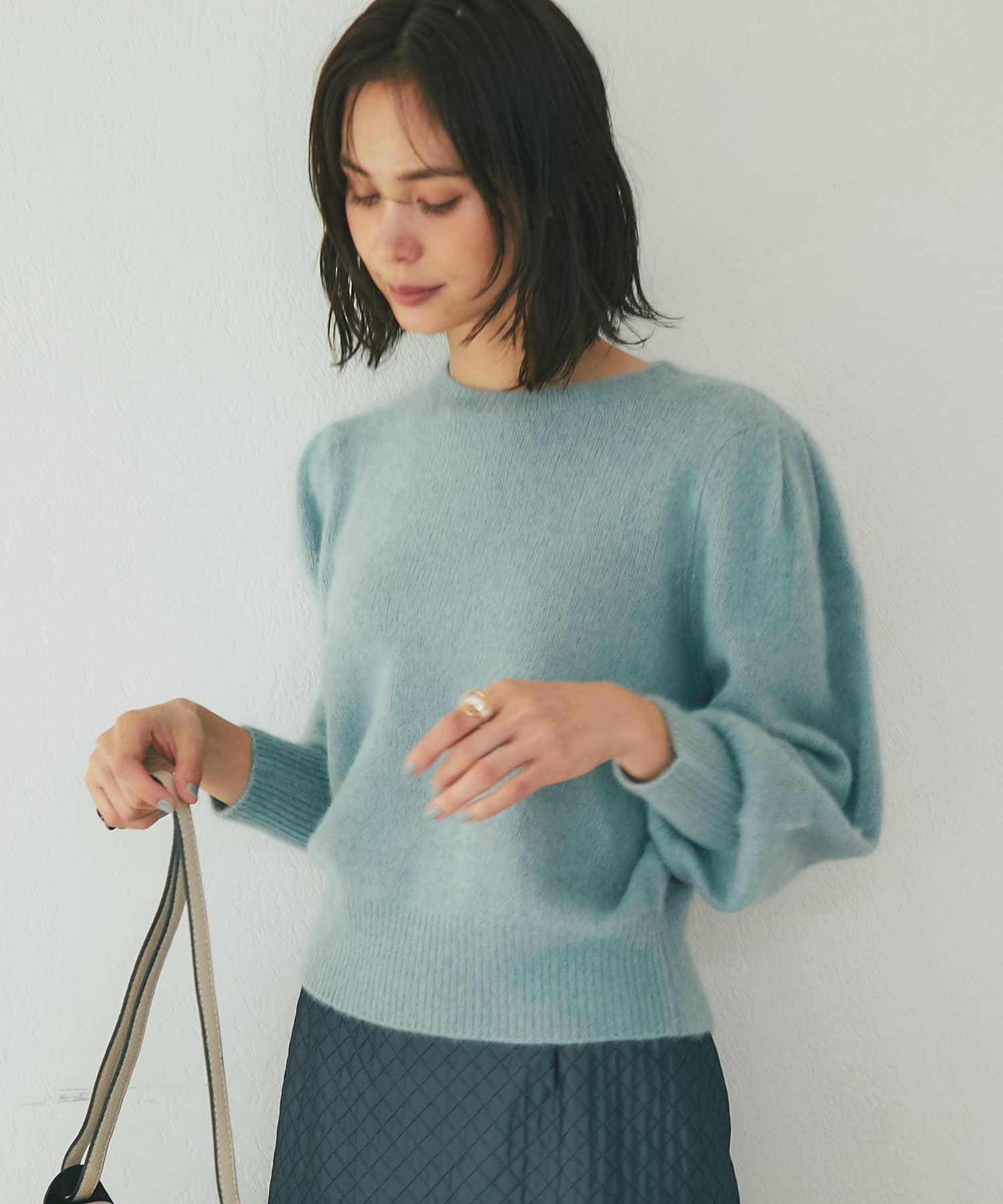【高級感のある素材】ヘアリーヤーンボリュームスリーブニット
