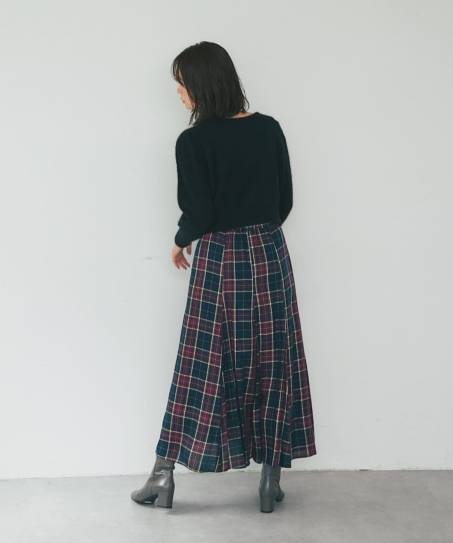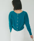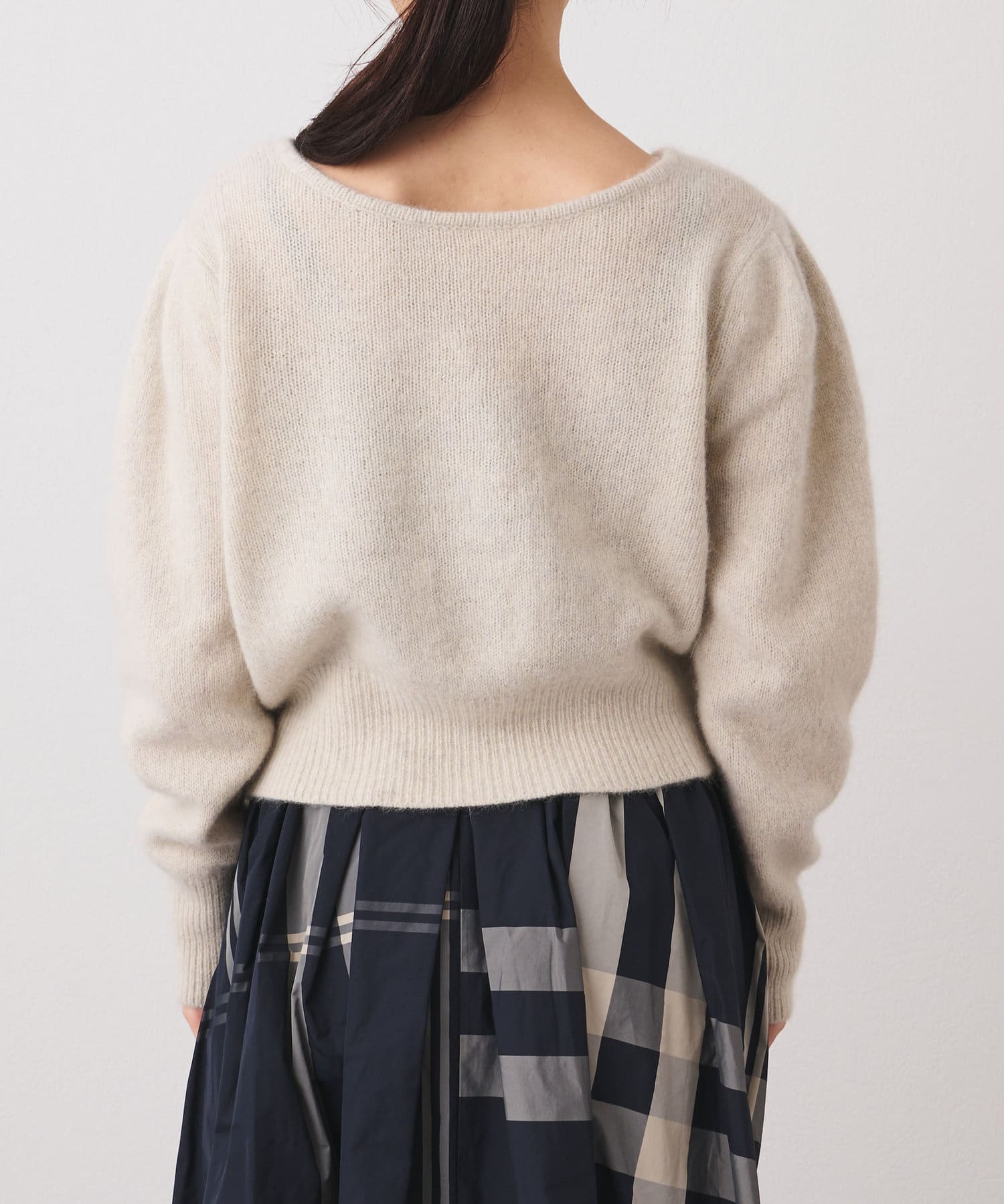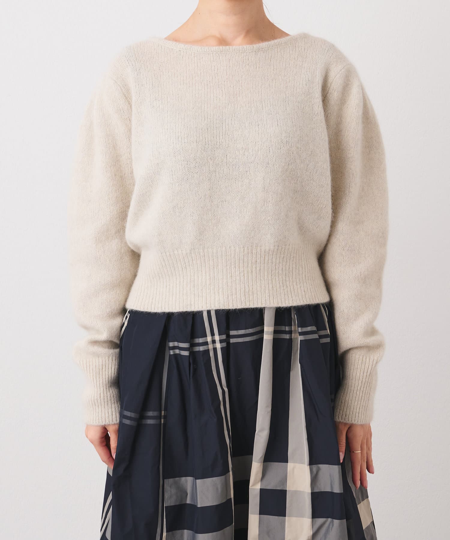 シンプルなクルーネックニットとしても楽しめる、前後どちらでも着られる2way仕様。