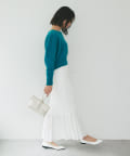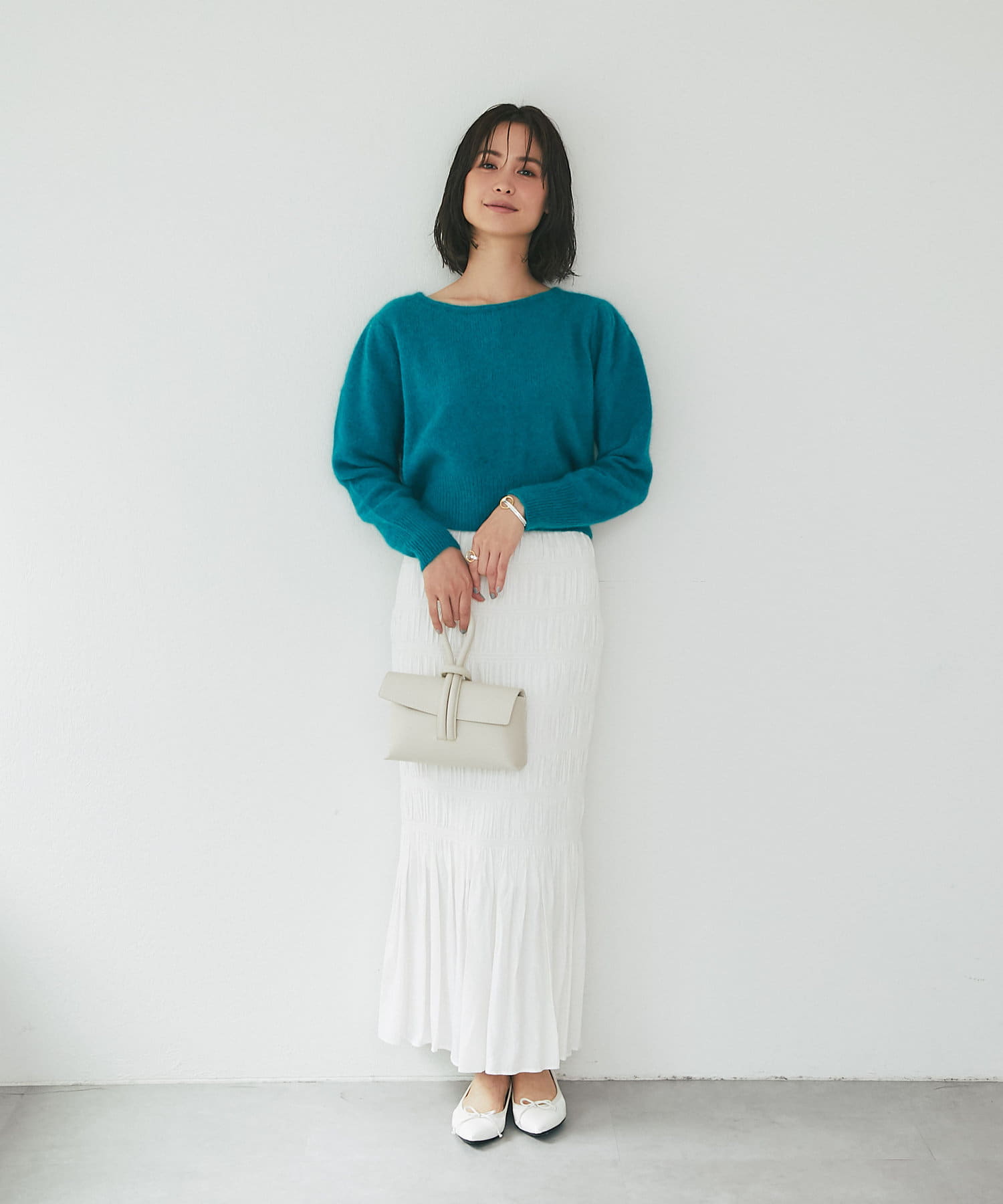 程よくゆとりのあるシルエットとすっきりとしたVネックが女性らしい雰囲気。