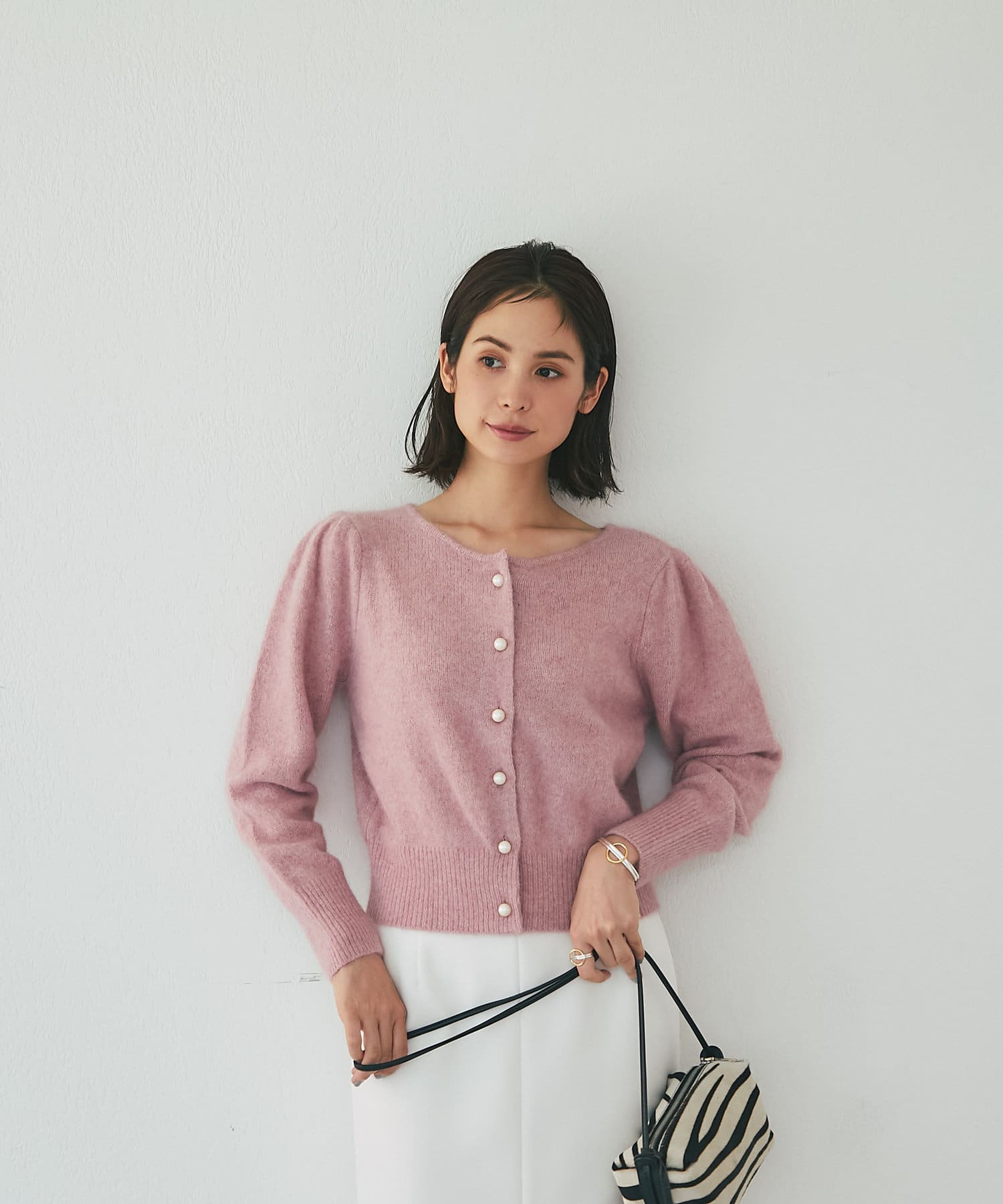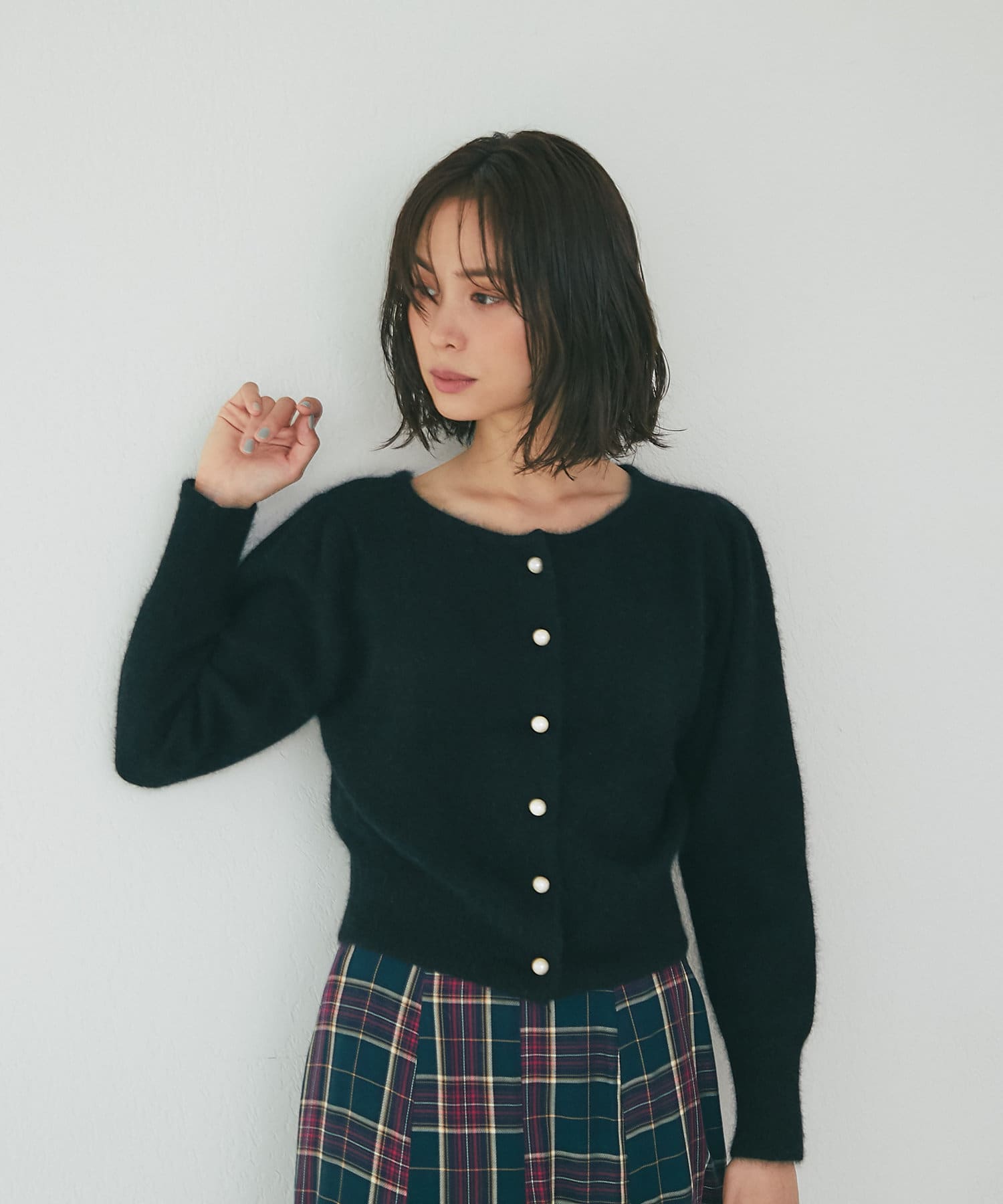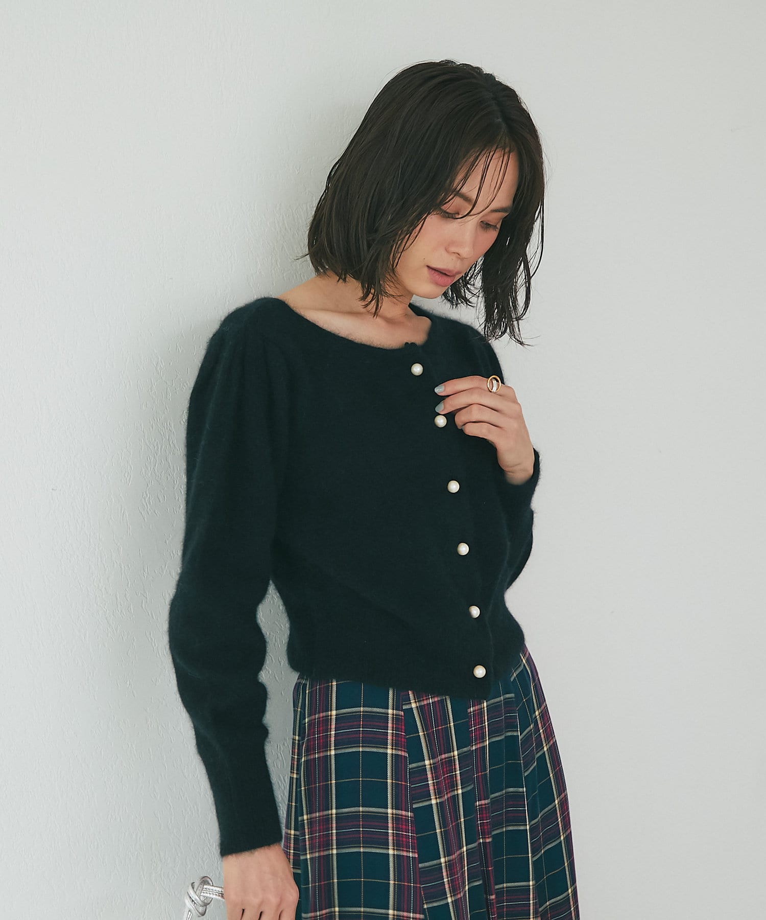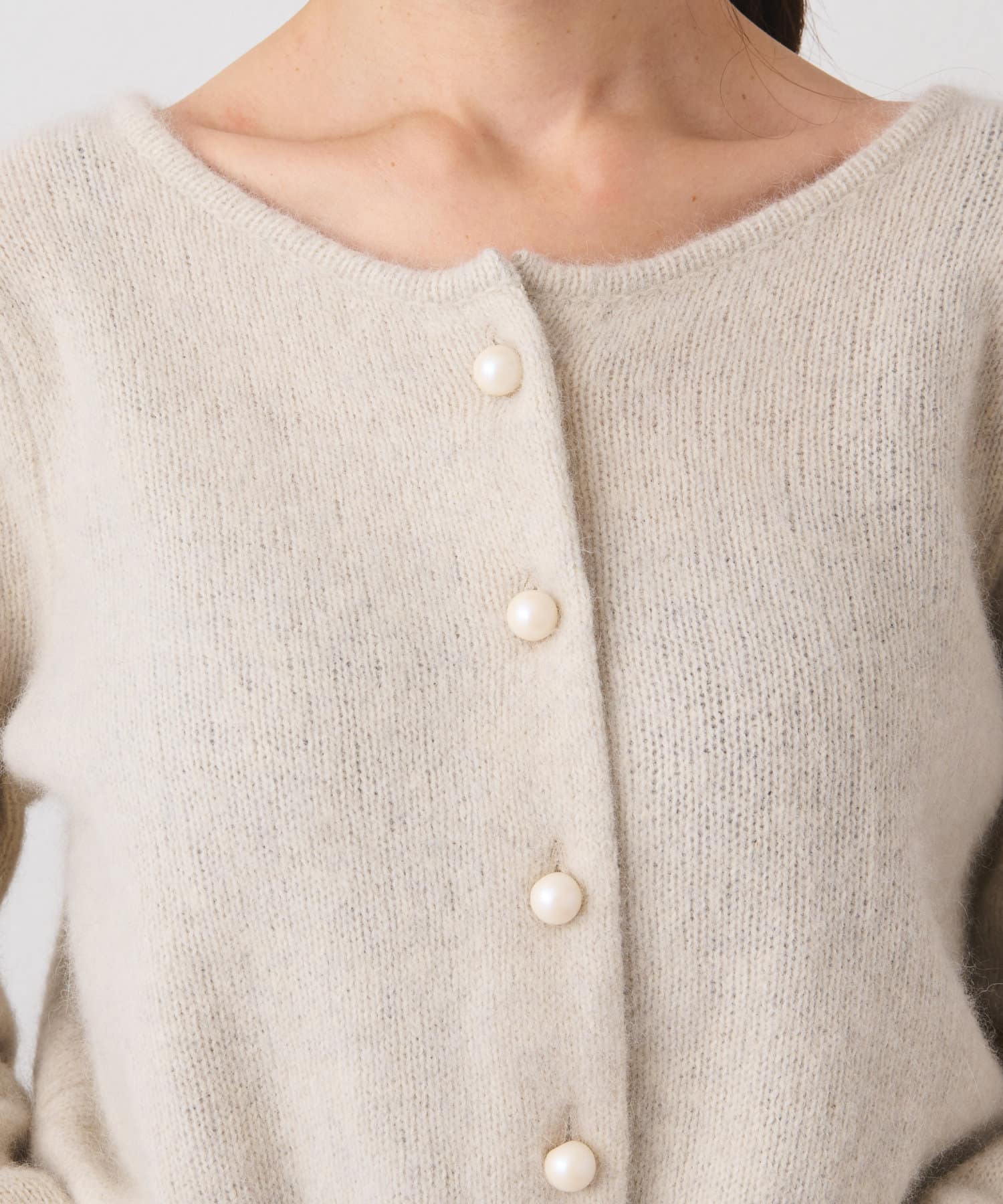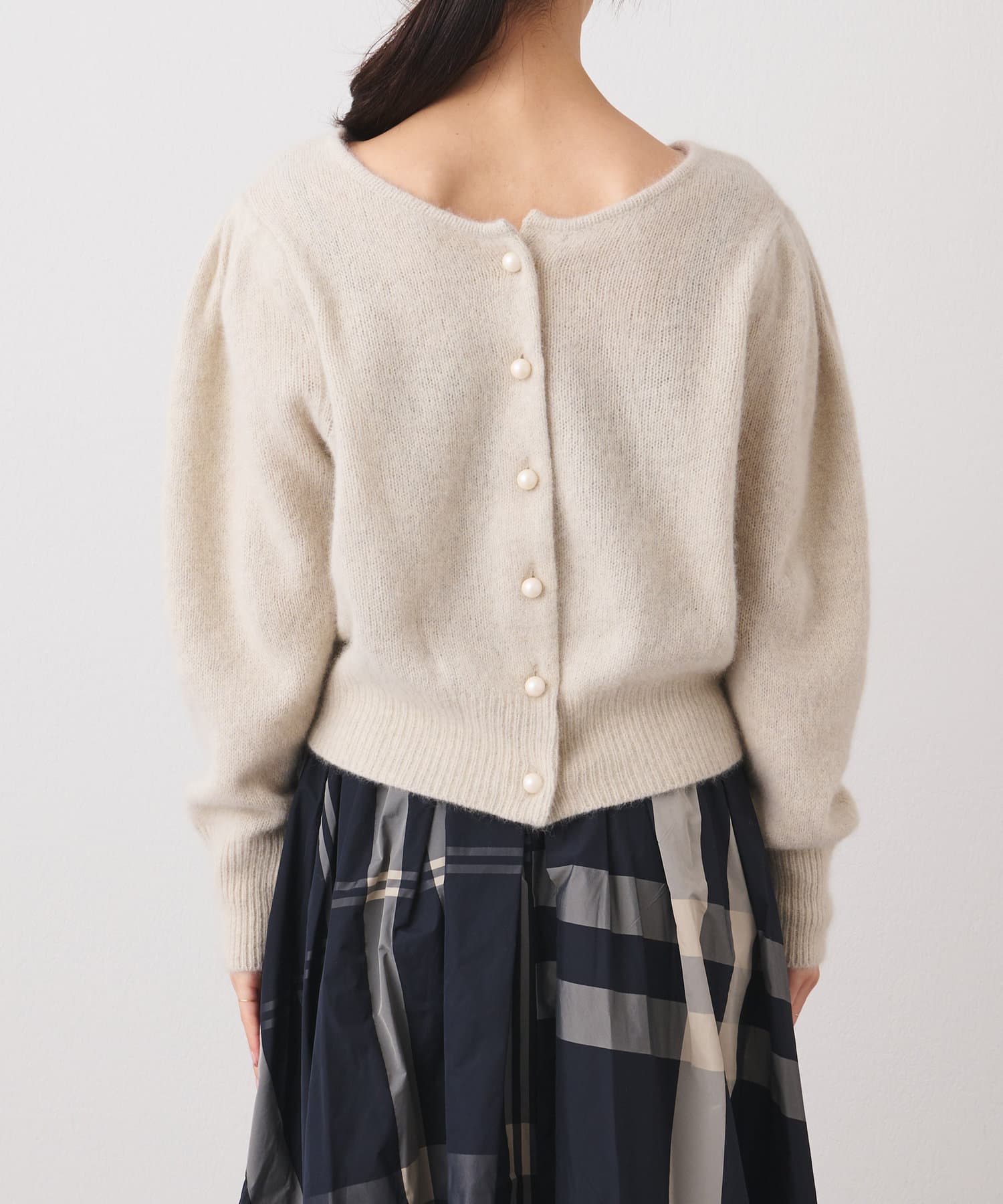 【トレンドのパールボタン】ヘアリーヤーン前後2WAYカーディガン