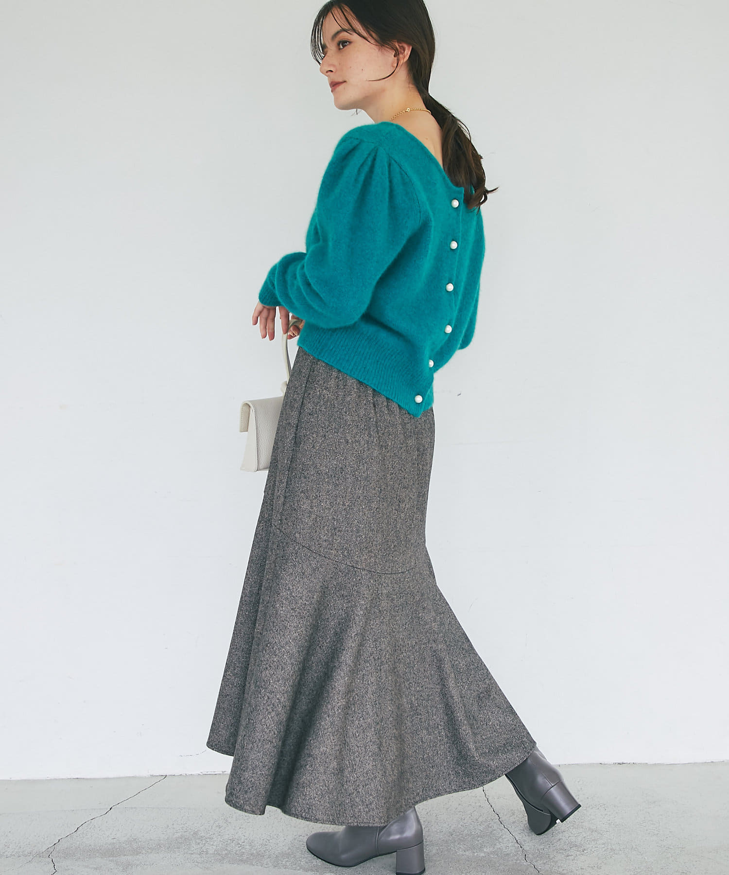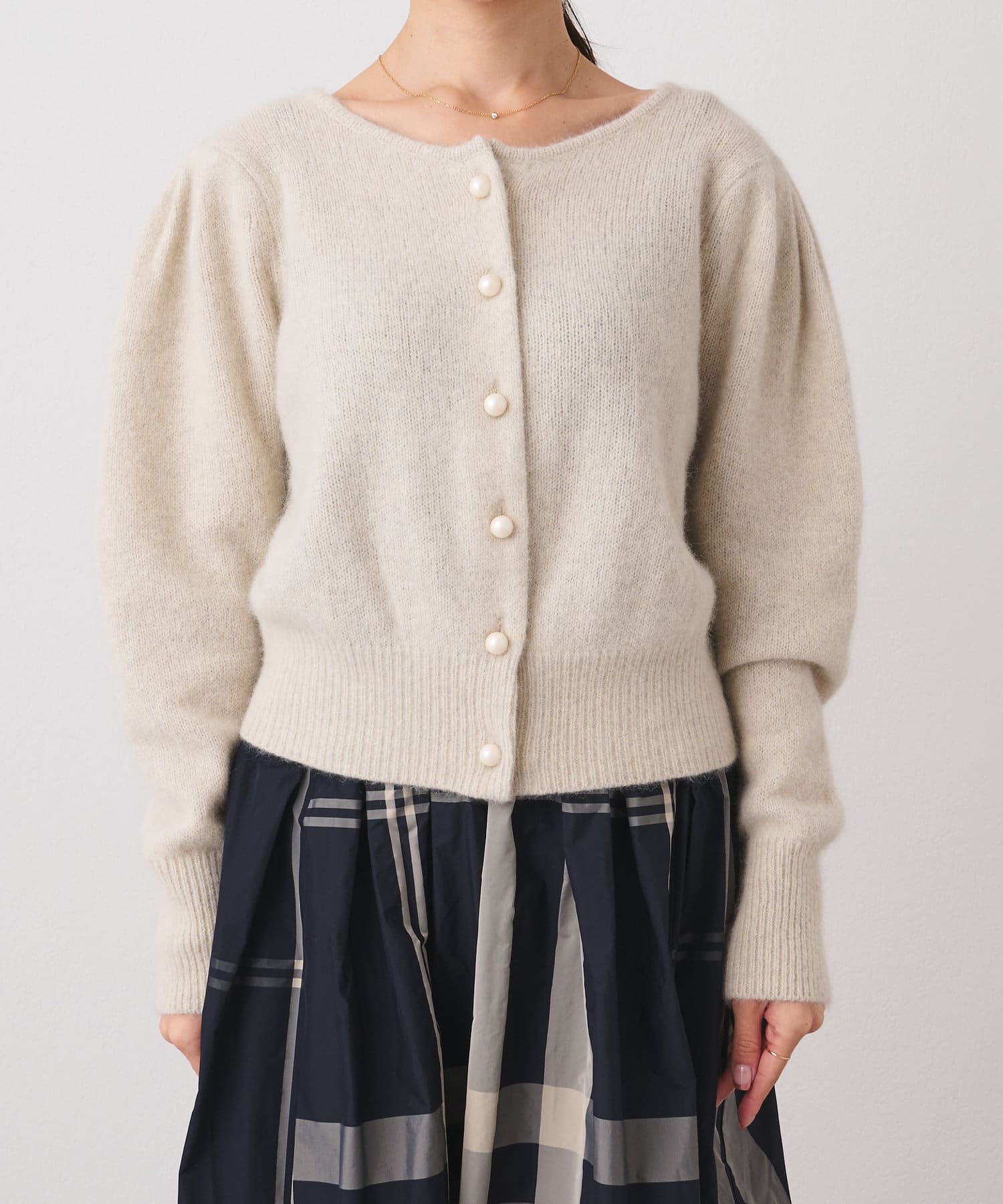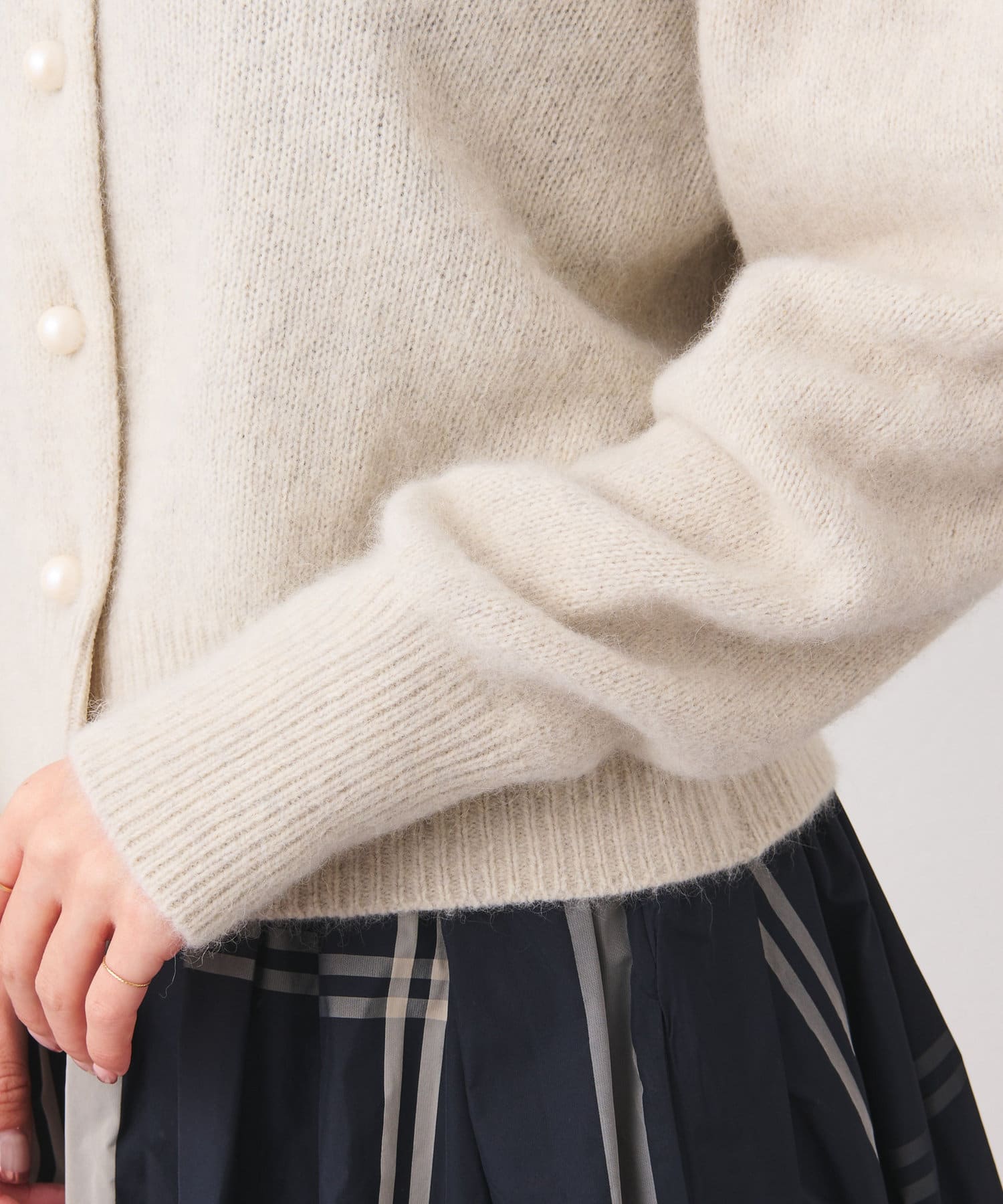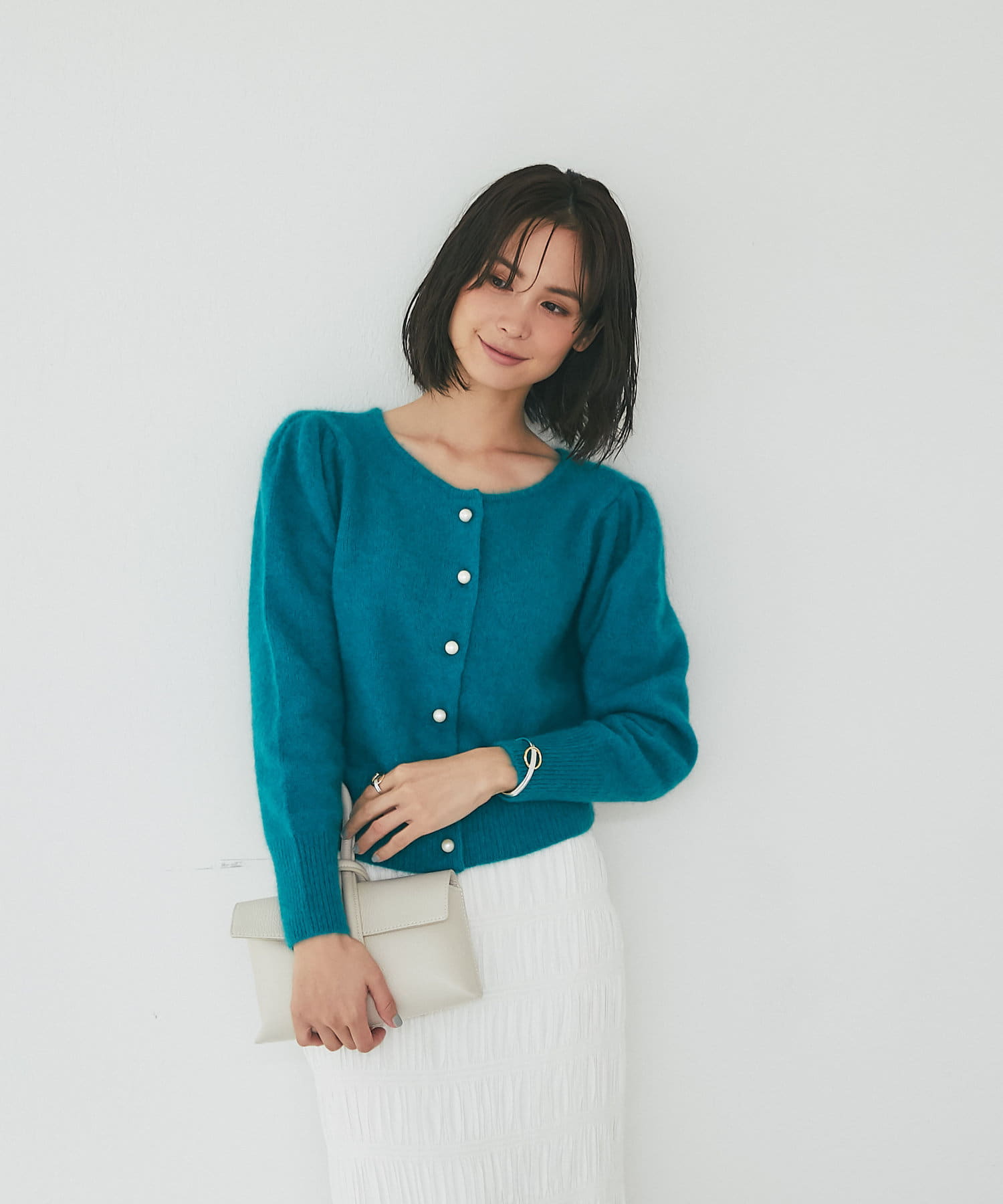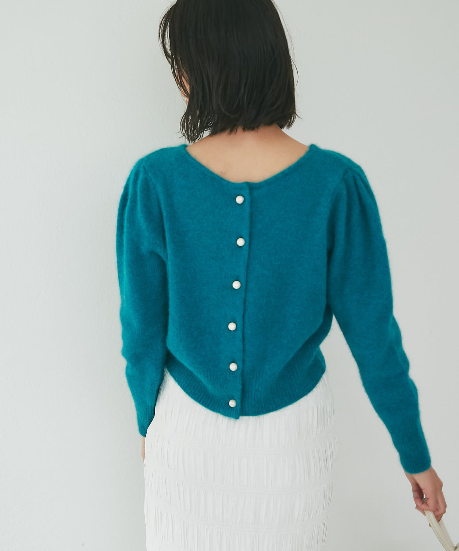 【トレンドのパールボタン】ヘアリーヤーン前後2WAYカーディガン