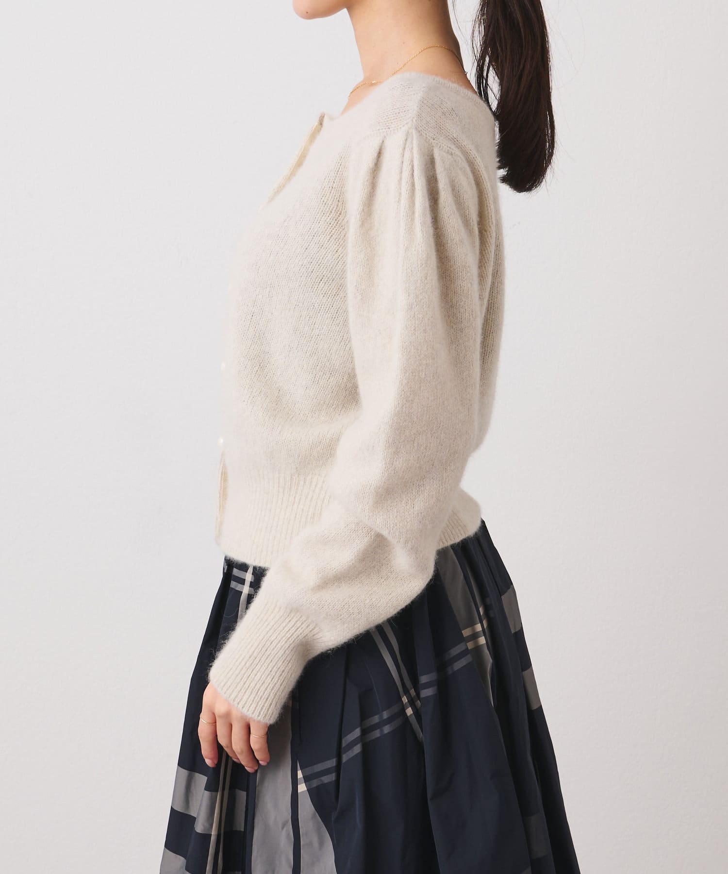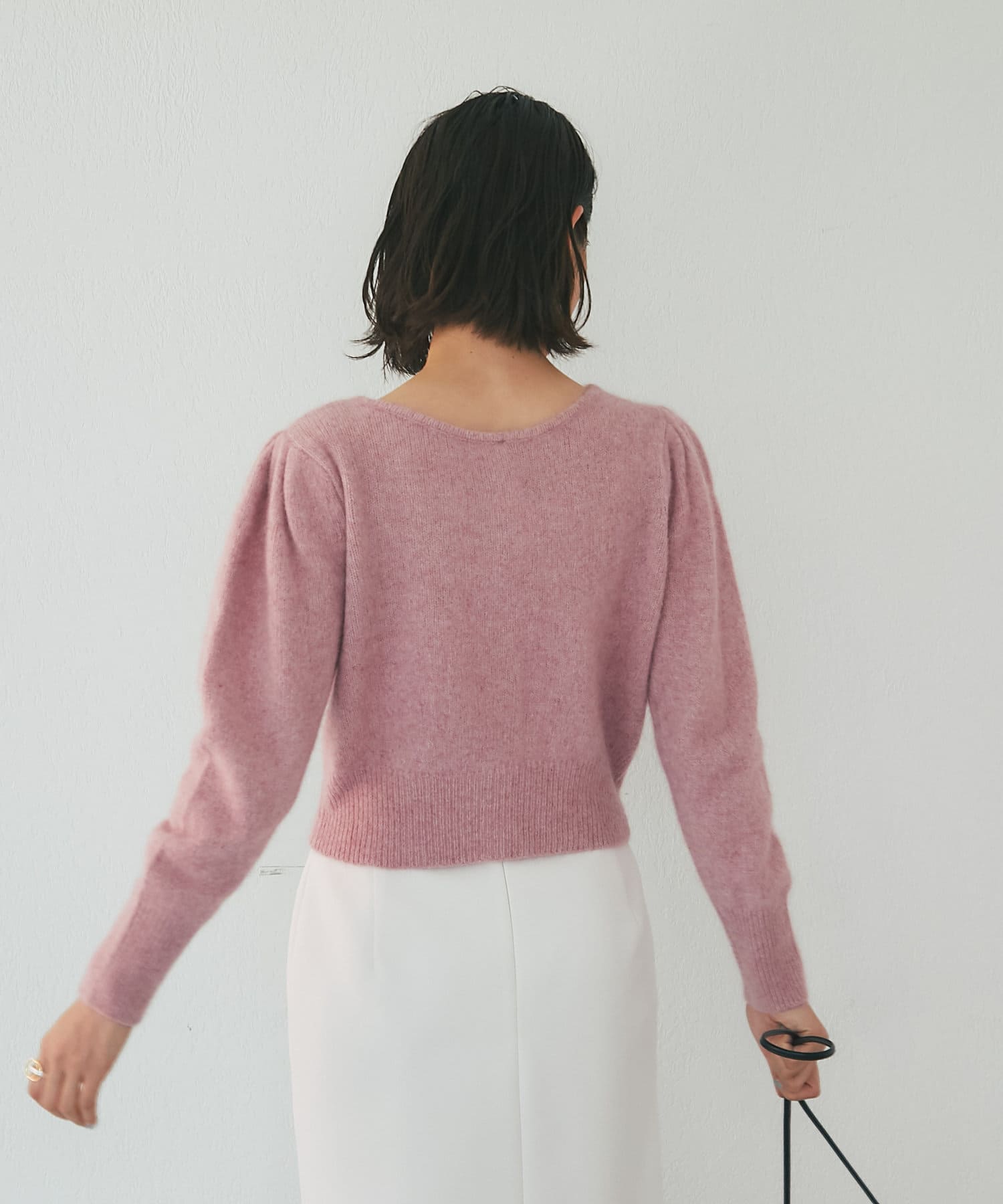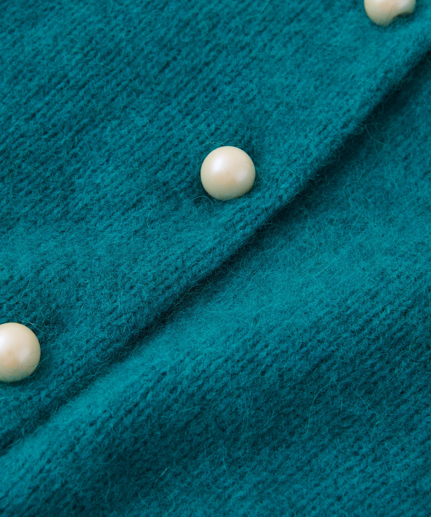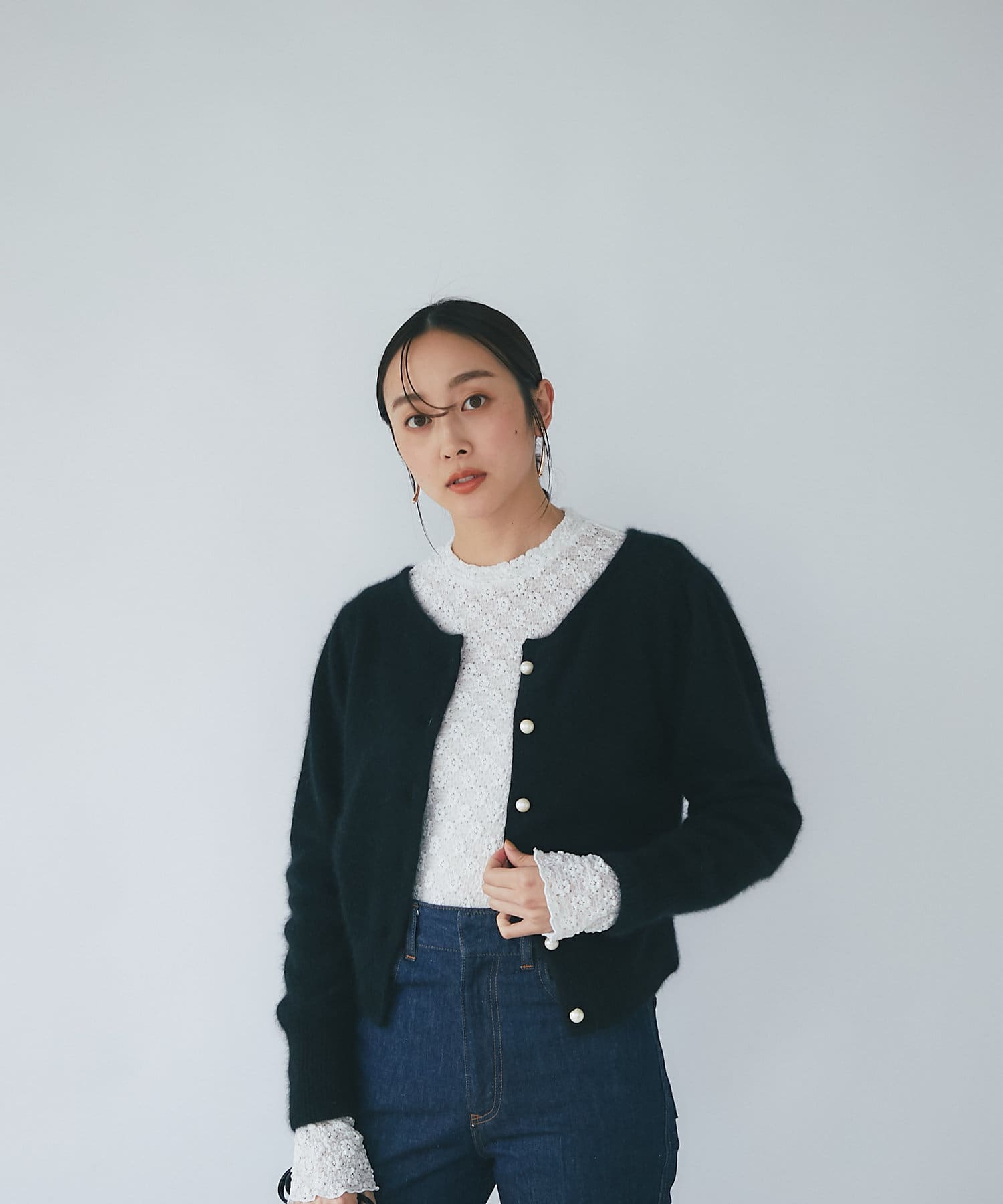 【トレンドのパールボタン】ヘアリーヤーン前後2WAYカーディガン