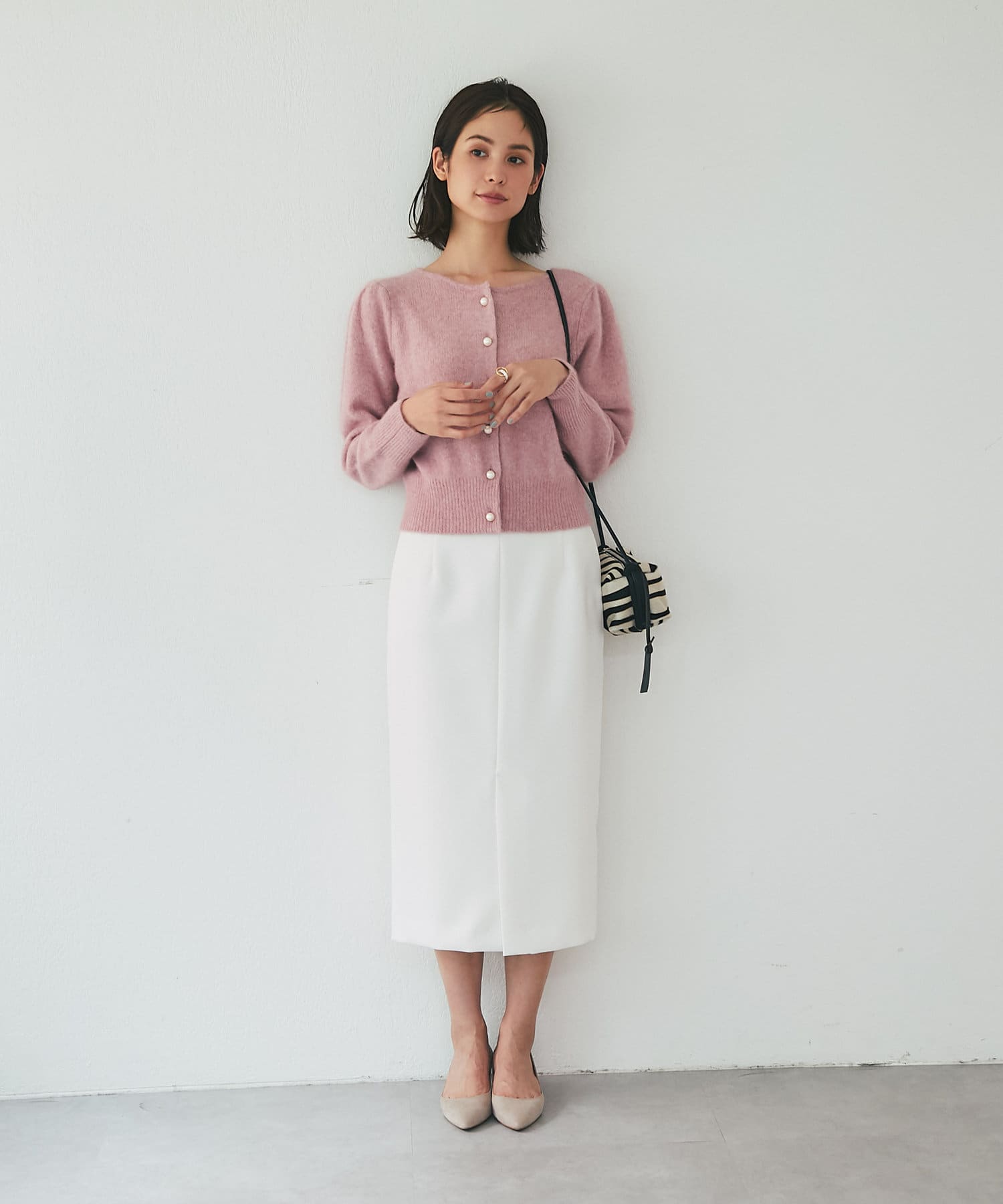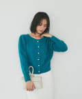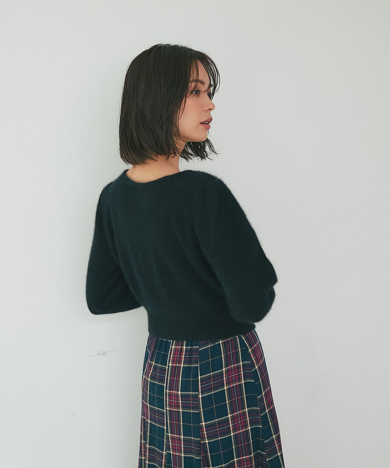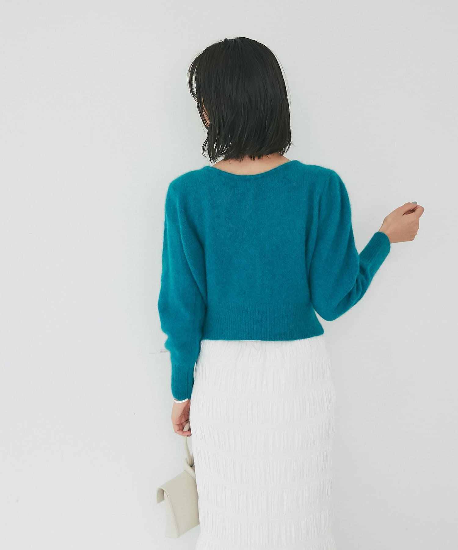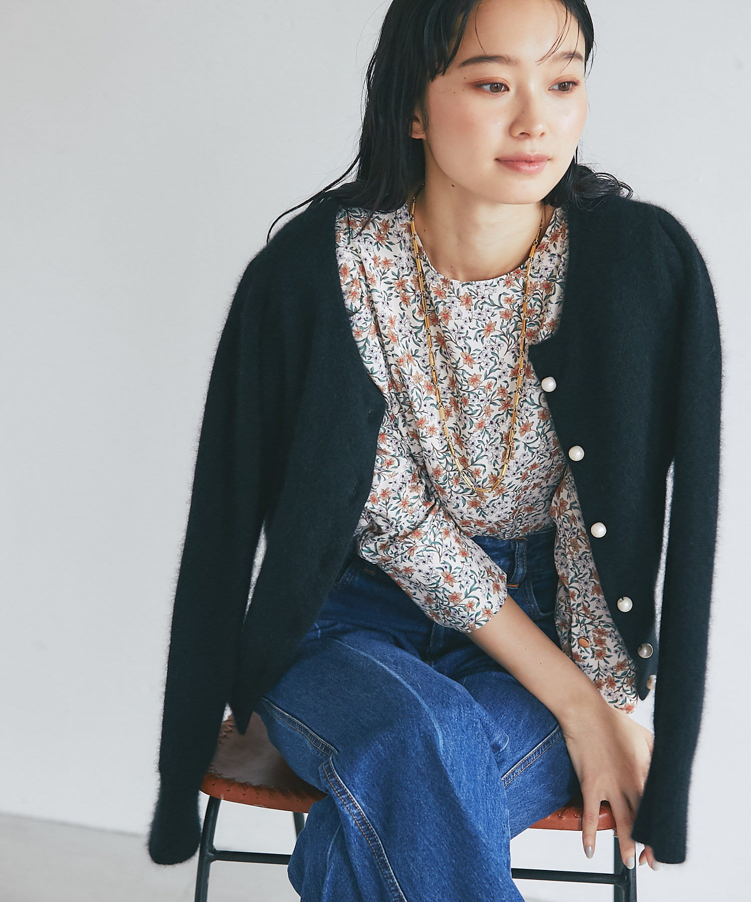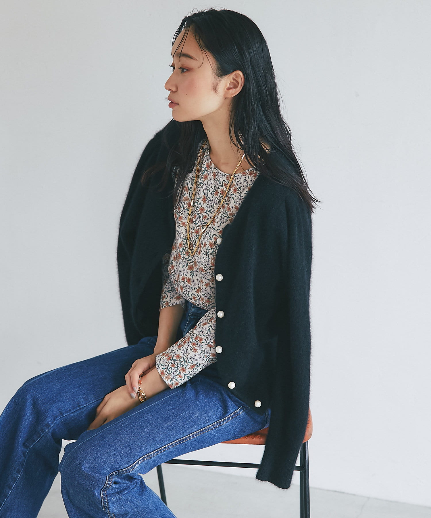 【トレンドのパールボタン】ヘアリーヤーン前後2WAYカーディガン