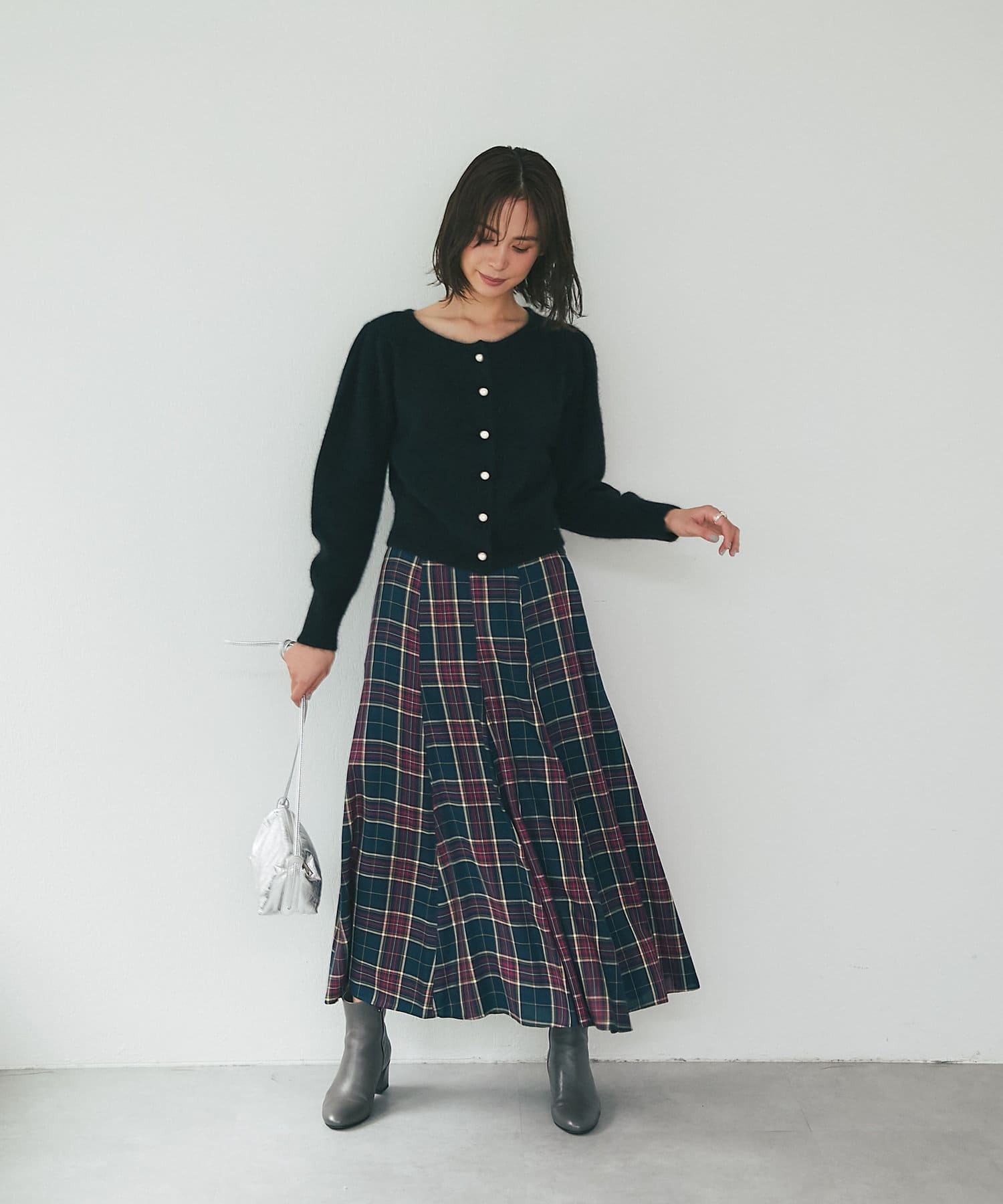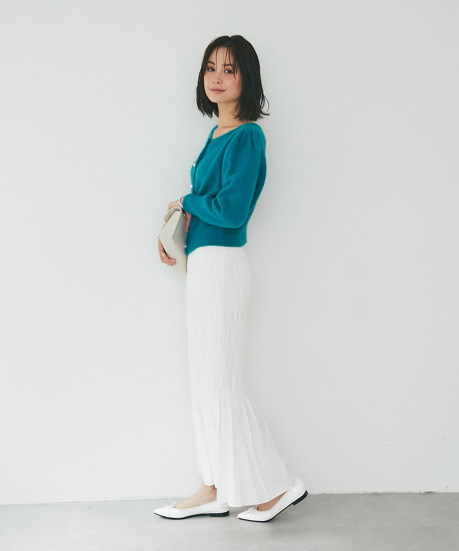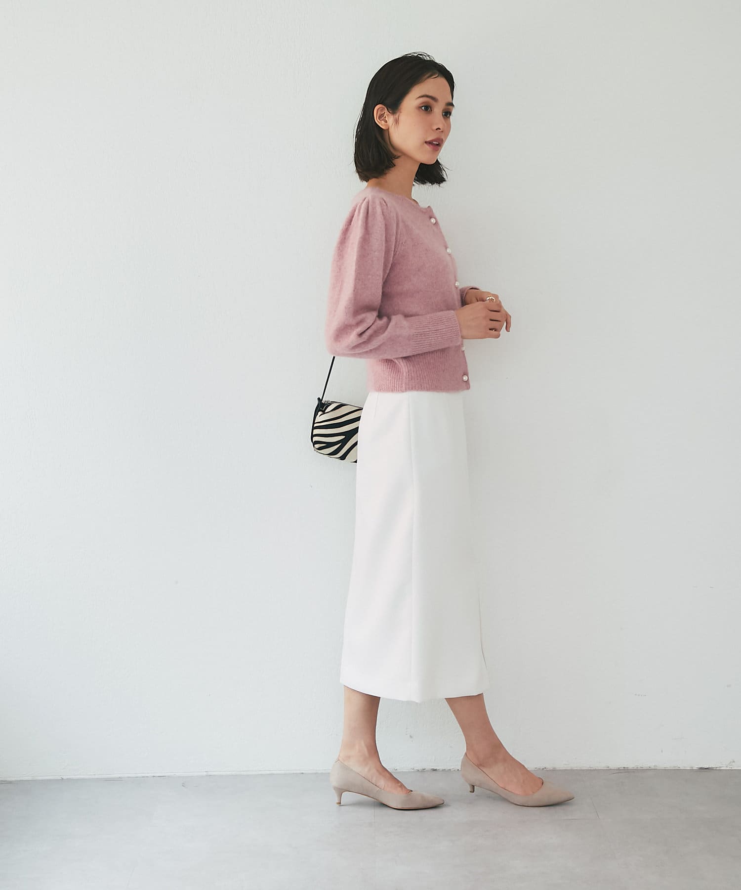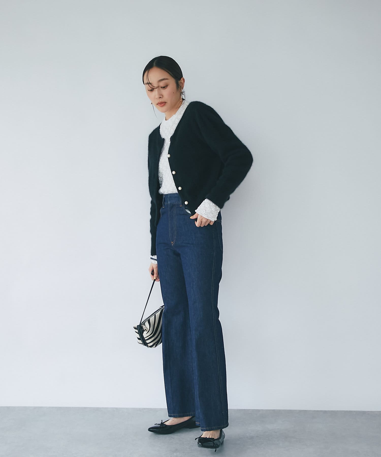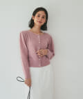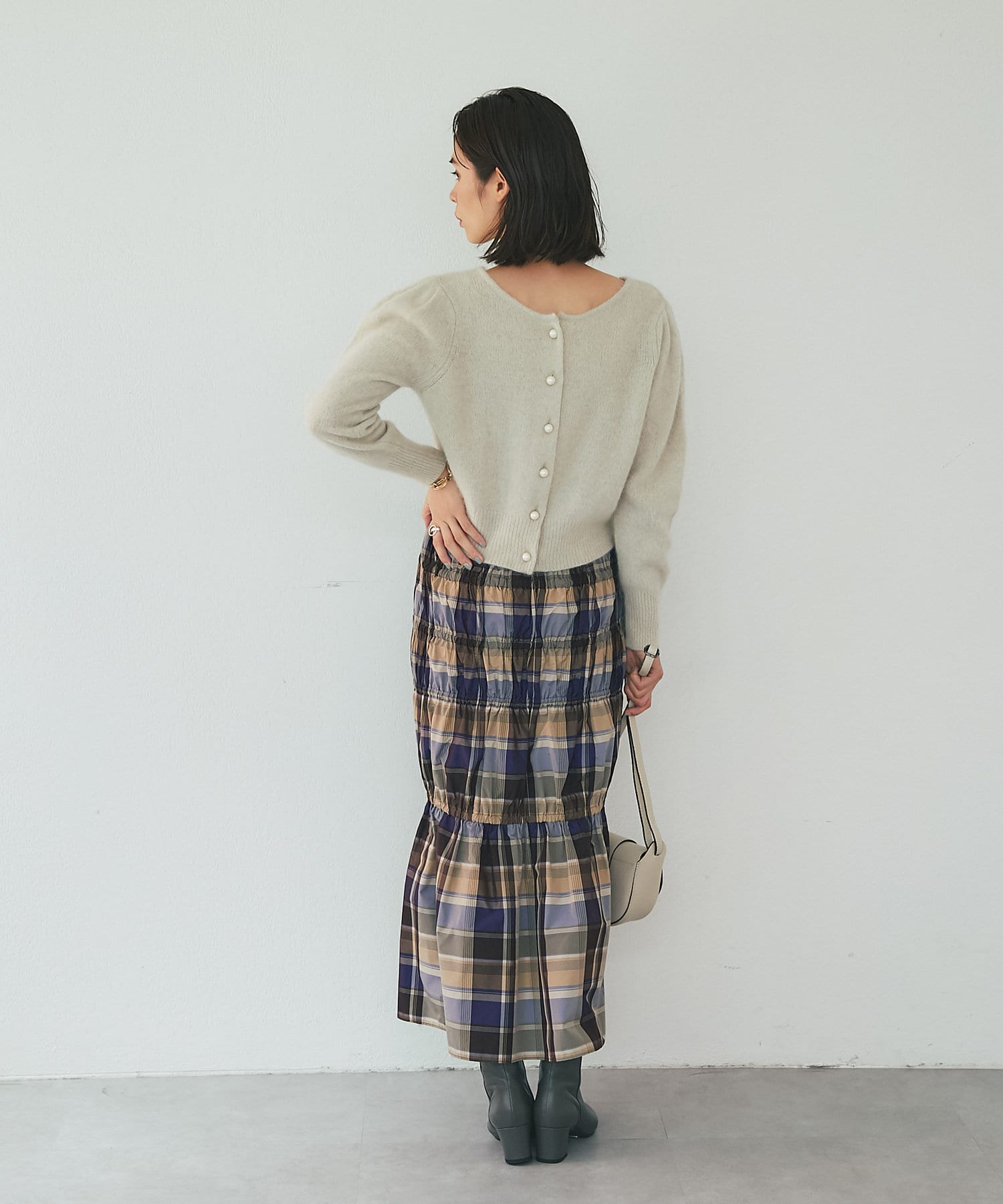 【トレンドのパールボタン】ヘアリーヤーン前後2WAYカーディガン
